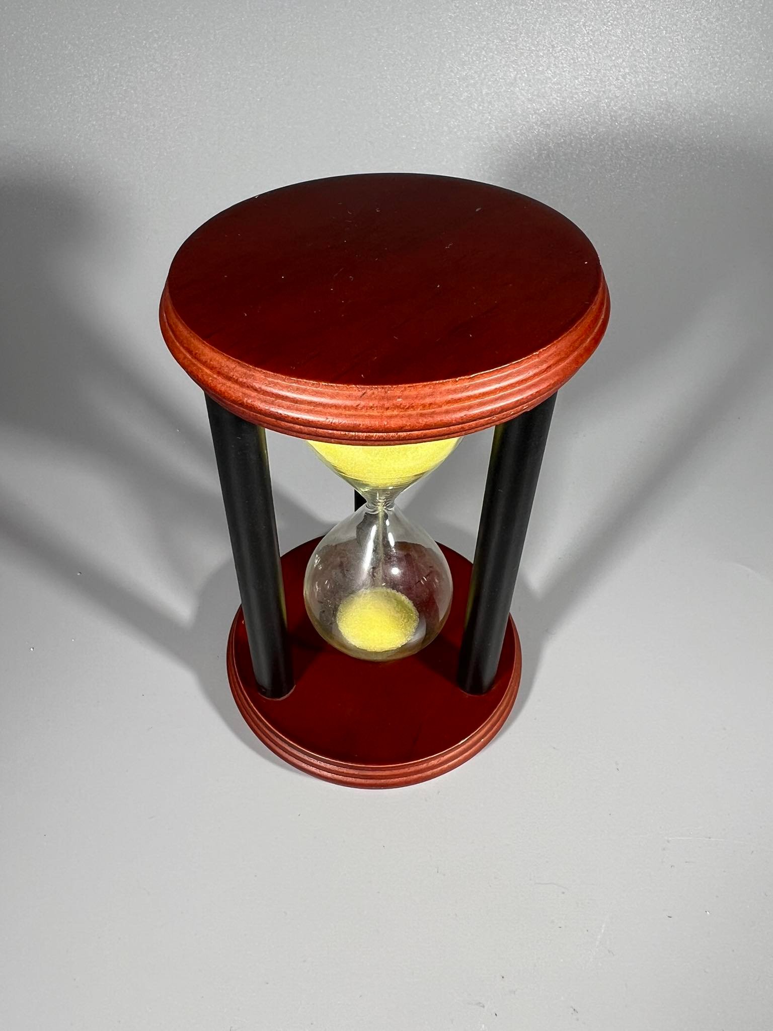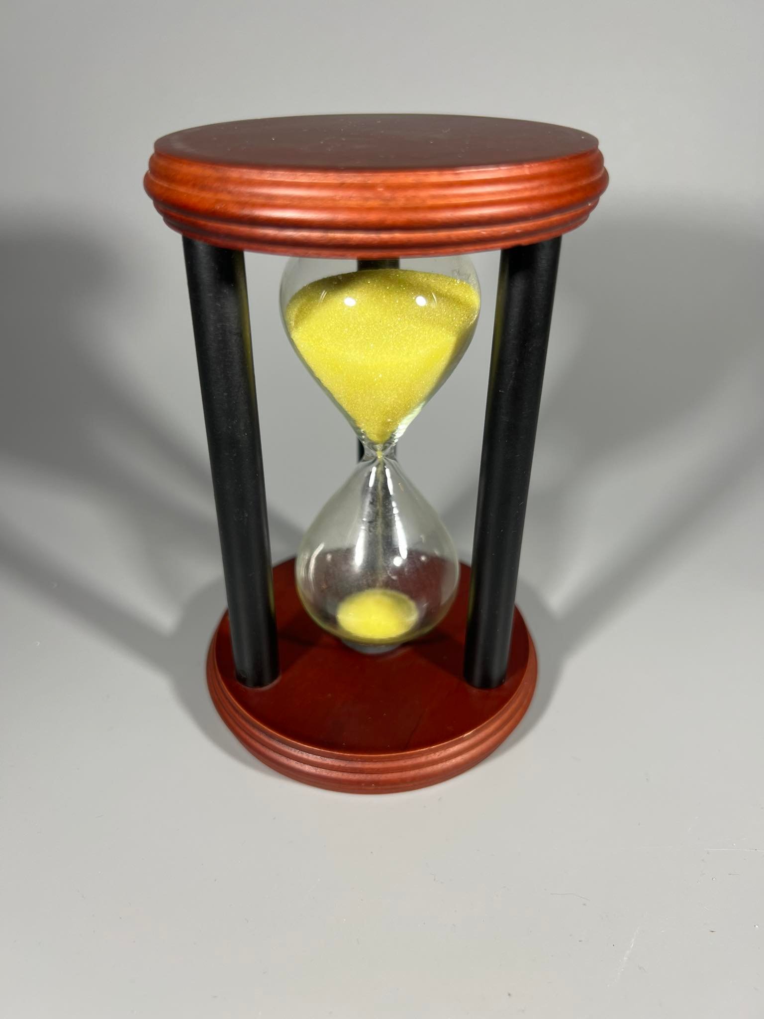 Smėlio laikrodis medinis. Aukštis 12, skersmuo 8 cm. Kaina 28