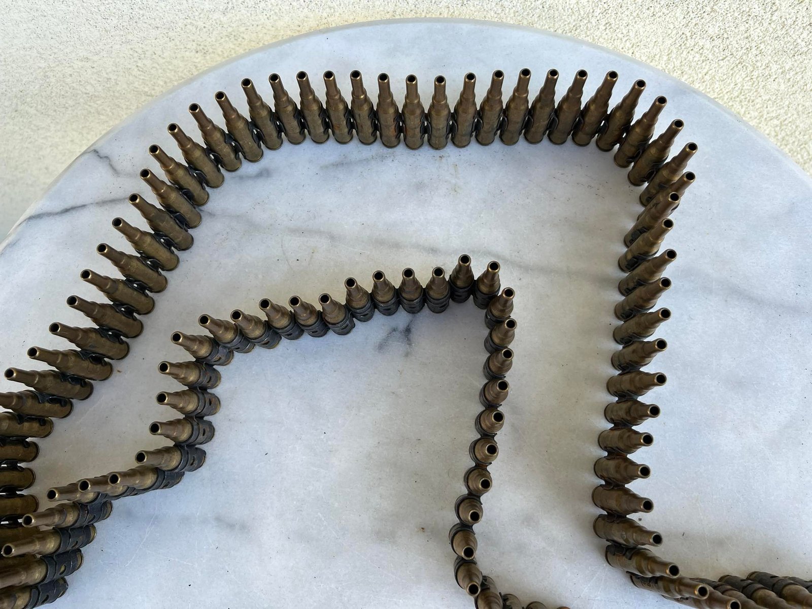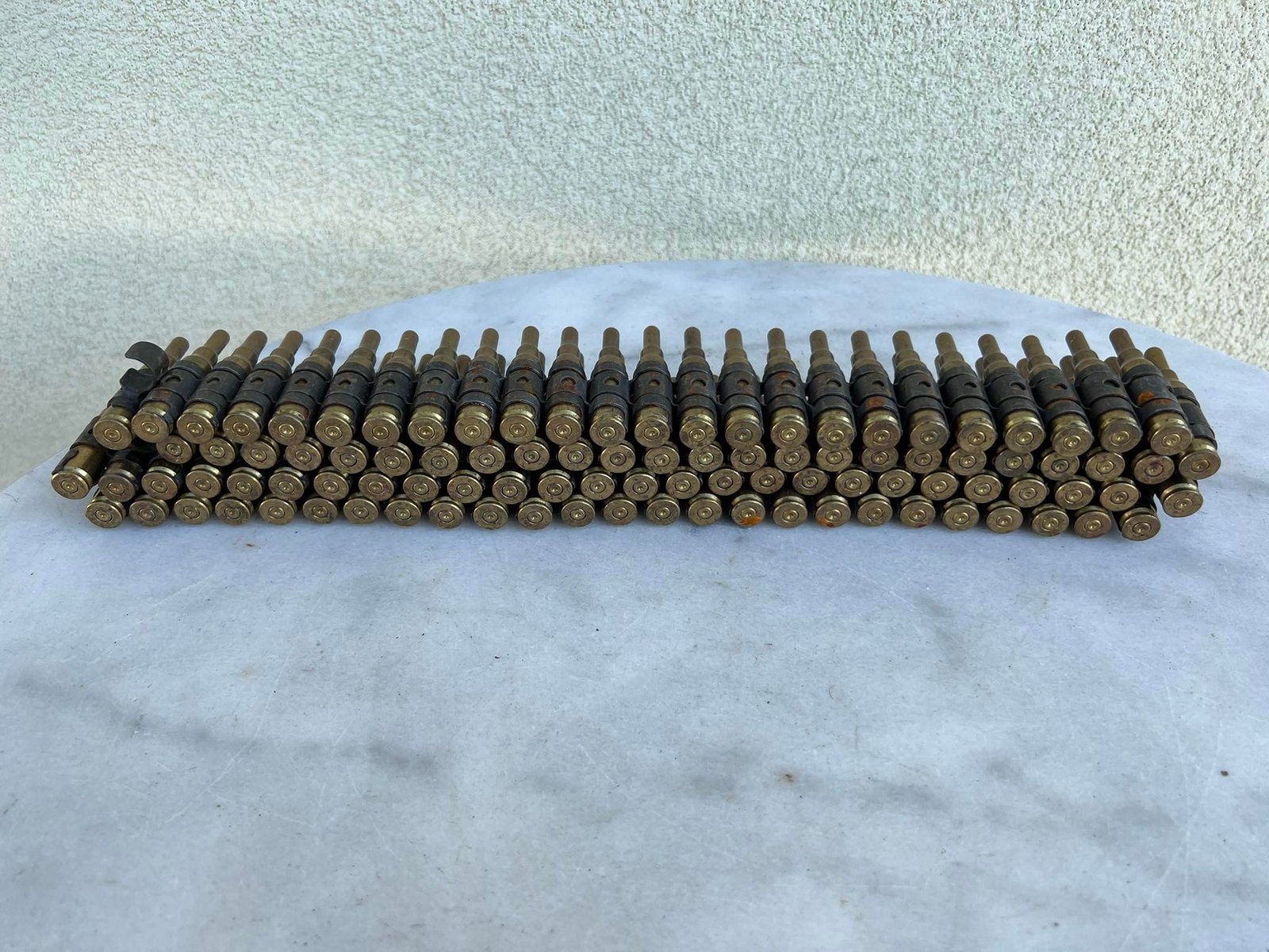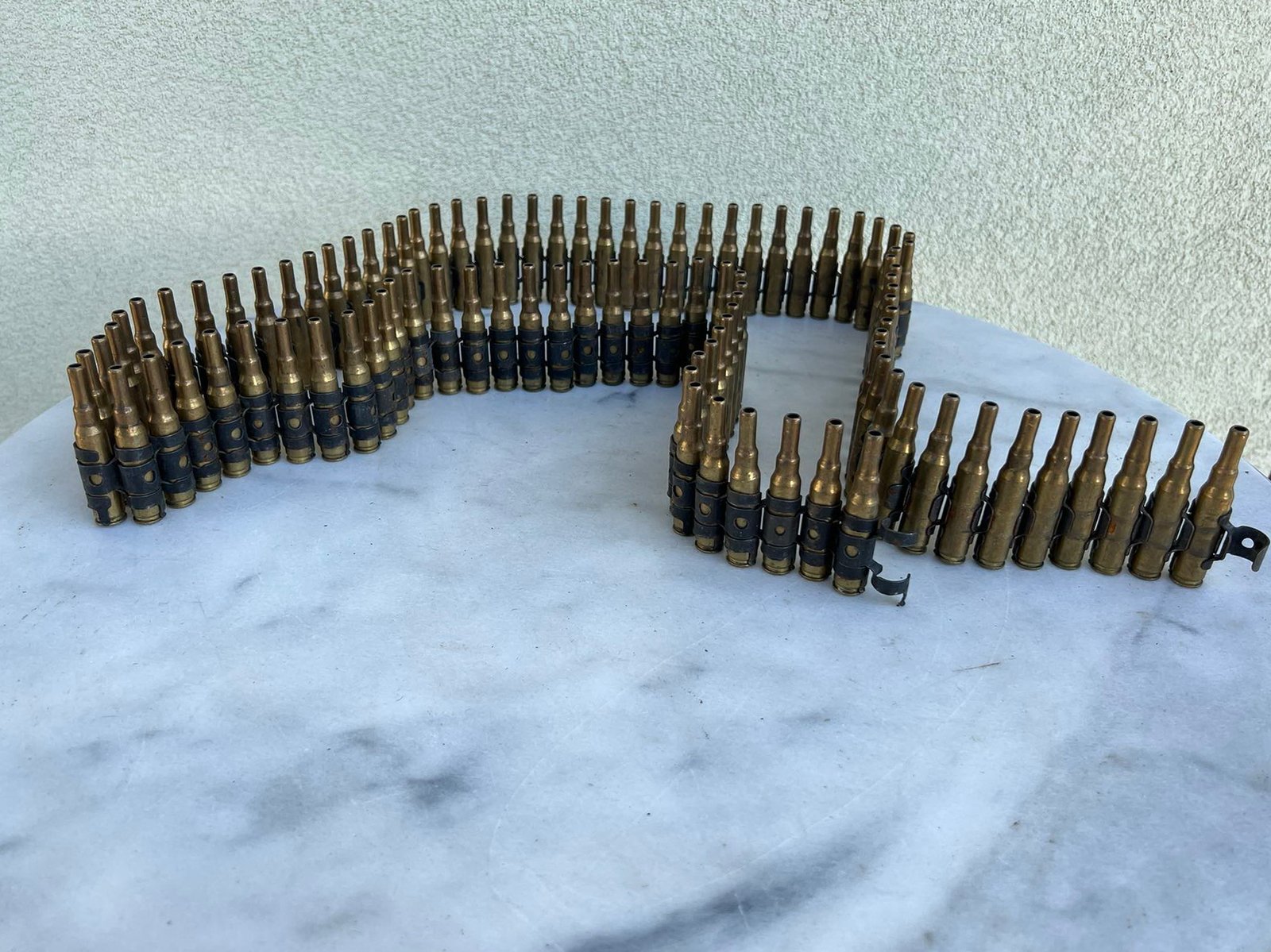 Šovinių juosta antikvarinė, naudota, kolekcinė, šoviniai tušti. Ilgis 151 cm. Kaina 108
