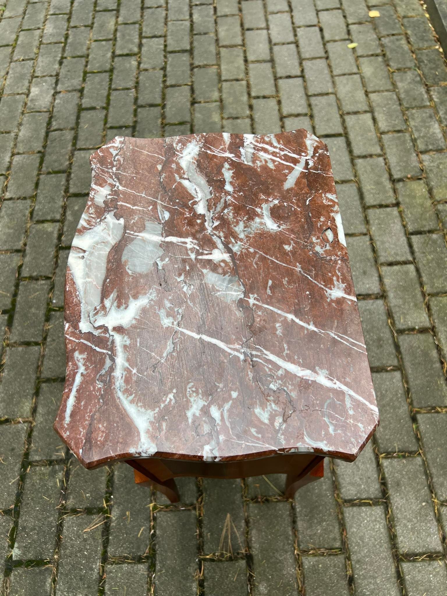 Spintelė – komoda nedidelė akmeniniu marmuriniu stalviršiu bei 2 stalčiais, puošta bronza, vintažinė. Kaina 187