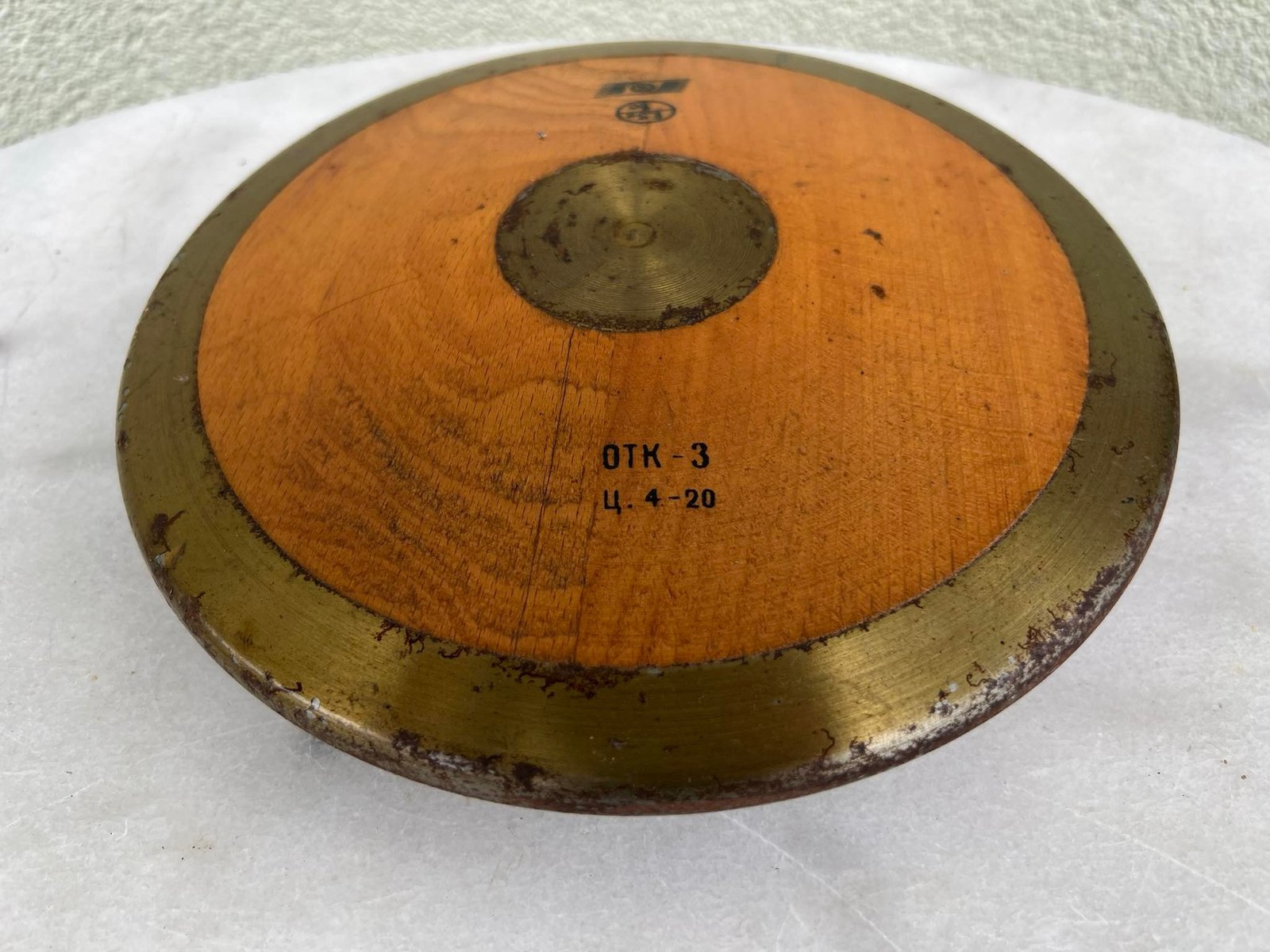 Sportinis metimo diskas, vibtažinis, sovietinis. tarybinių laikų. Skersmuo 20 cm. Svoris 1,5 kg. Kaina 38
