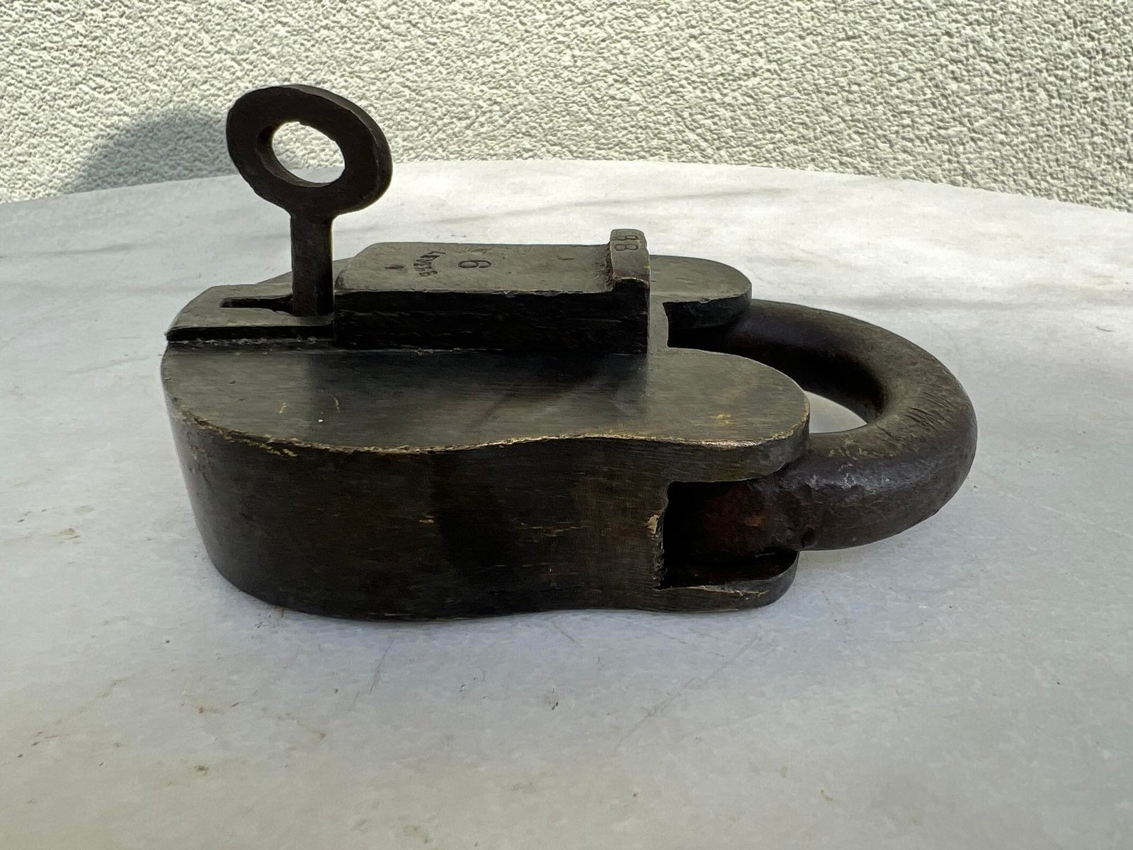 Spyna antikvarinė, stambi, autentiška. Anglija. Svoris 1 kg. Veikianti. Aukštis 12, plotis 7,5, storis su uždengimu 4,5 cm. Kaina 117