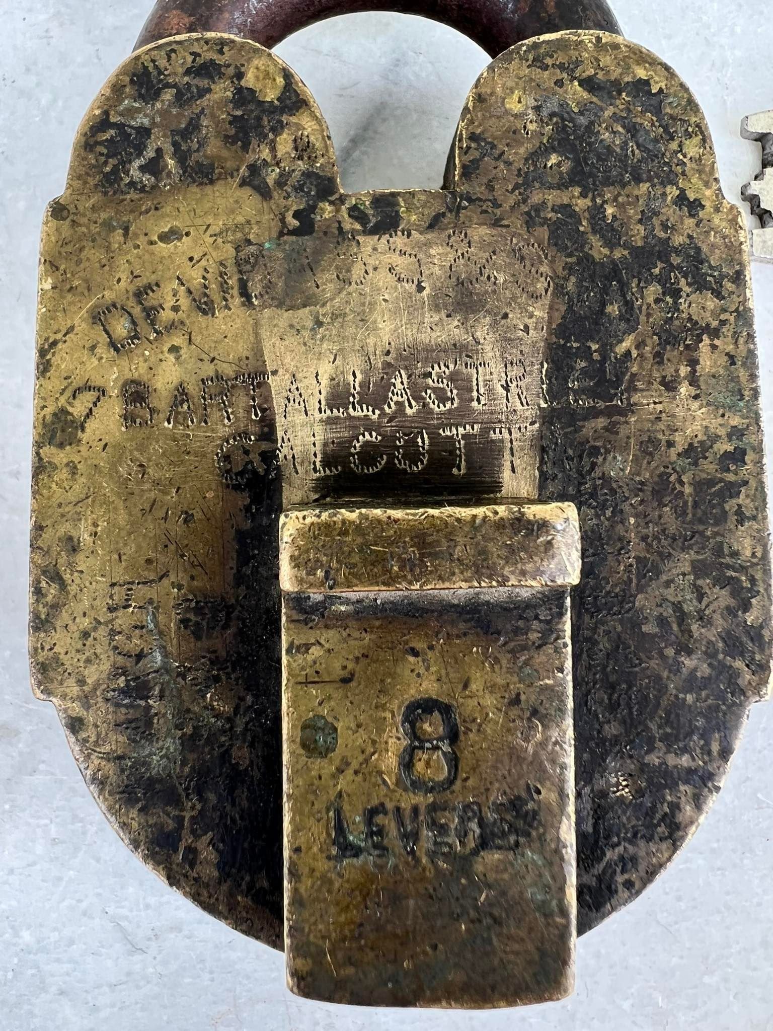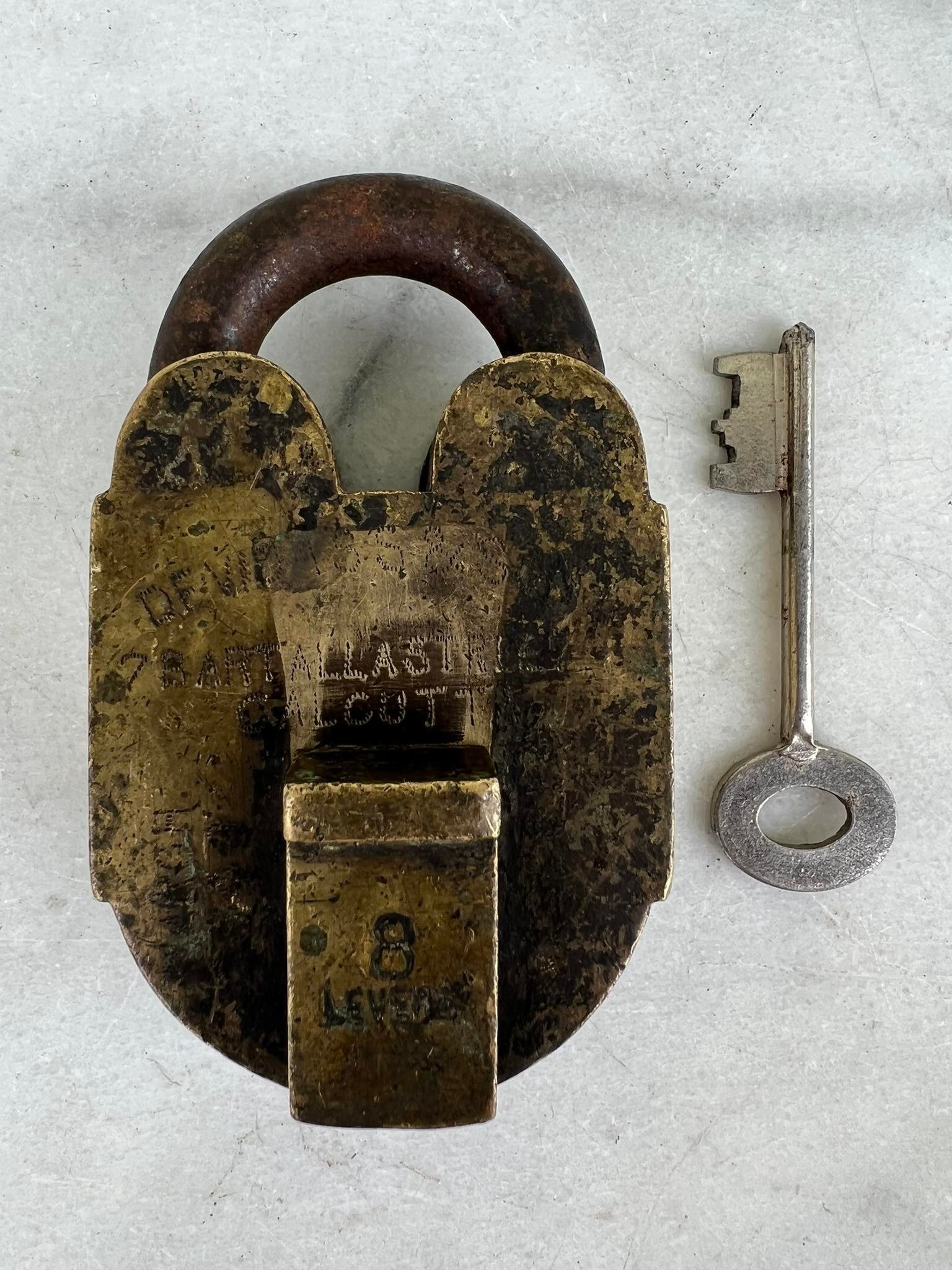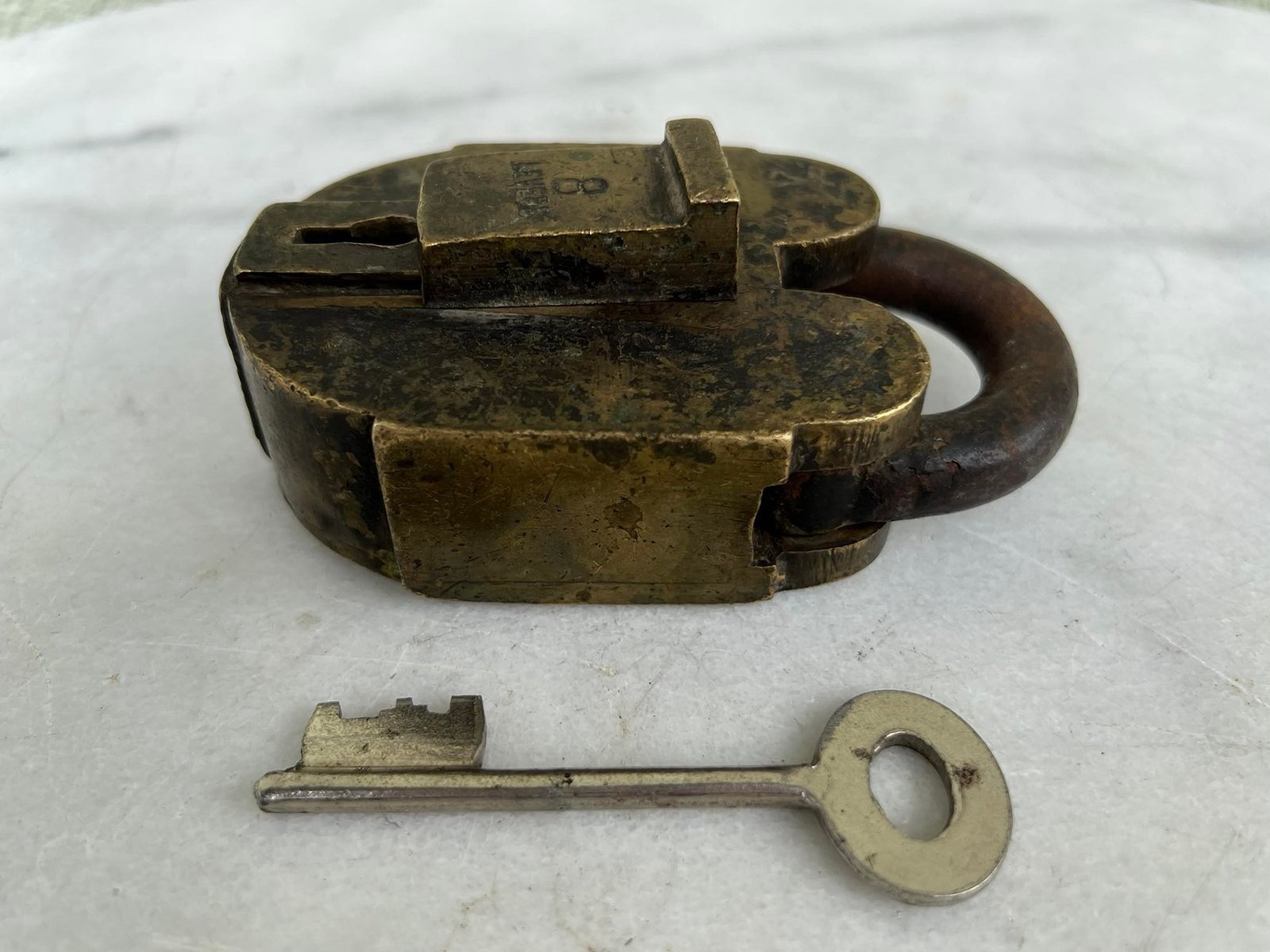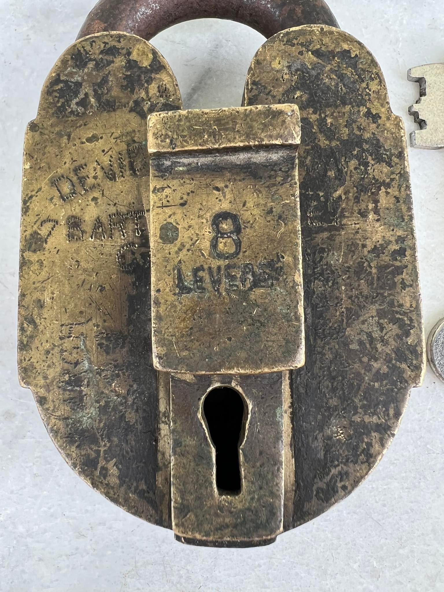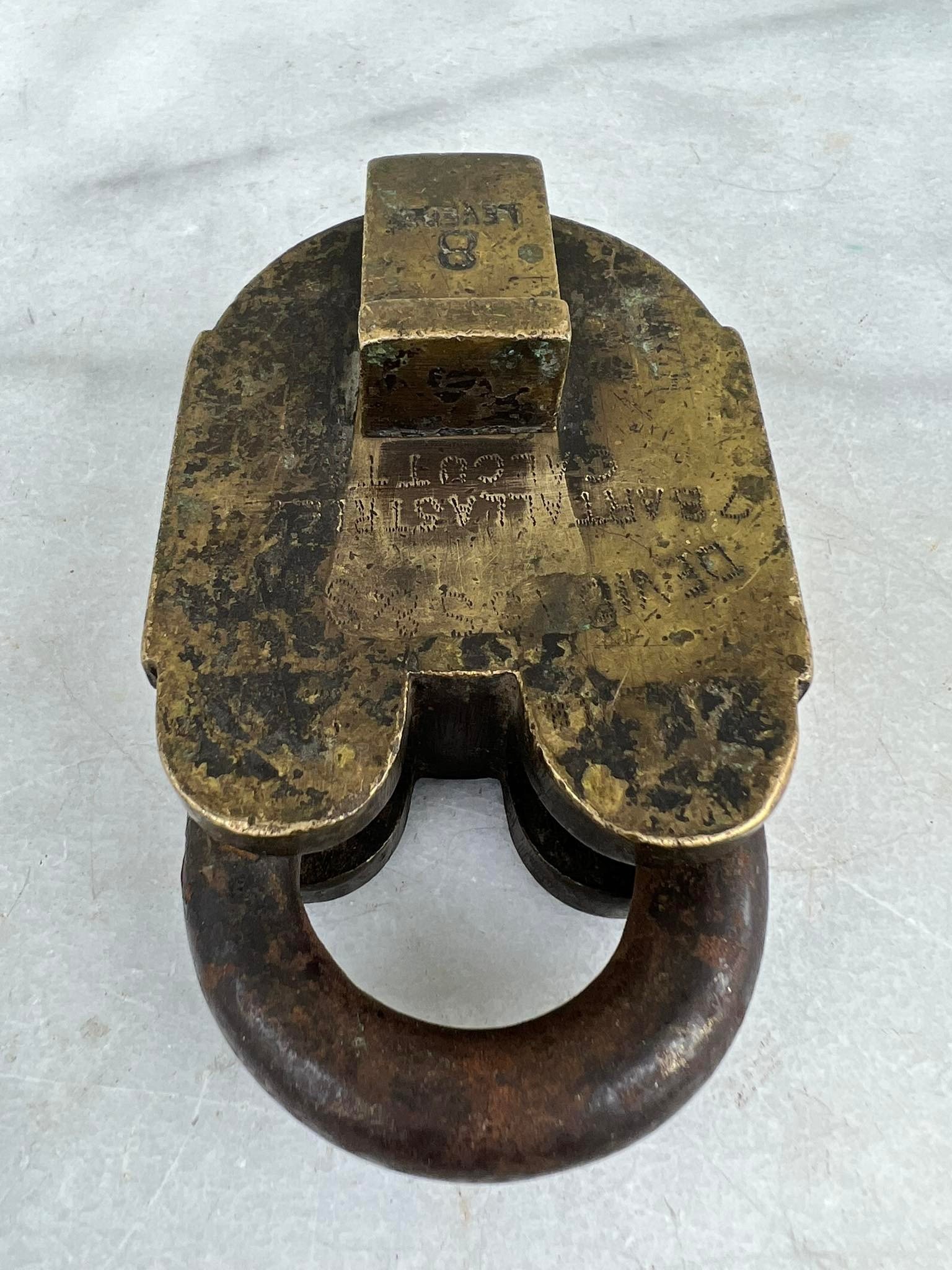 Spyna antikvarinė, stambi, autentiška. Anglija. Svoris 700 g. Veikianti. Aukštis 11, plotis 6,5, storis su uždengimu 4,5 cm. Atkeliavusi iš buvusios Anglijos kolonijos. Kaina 107