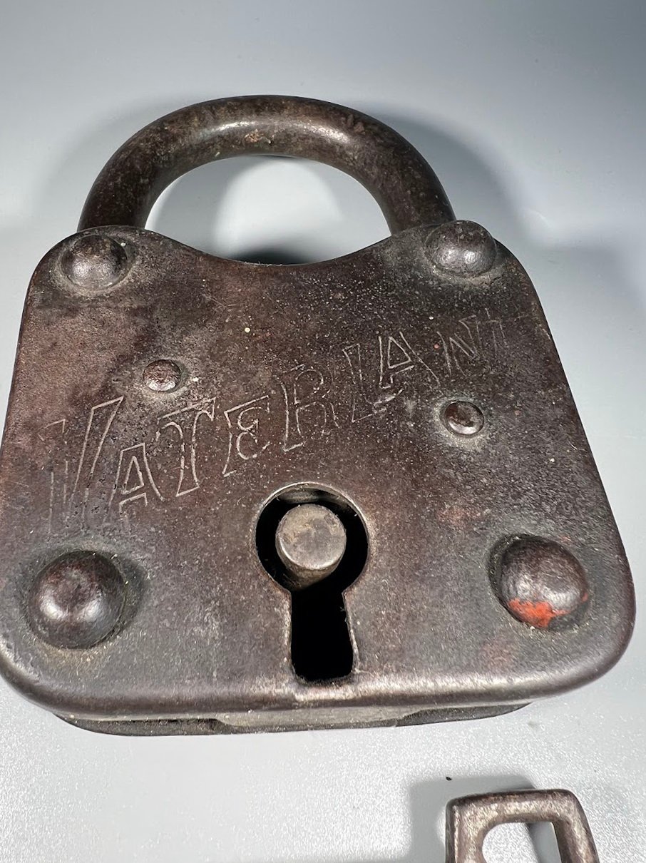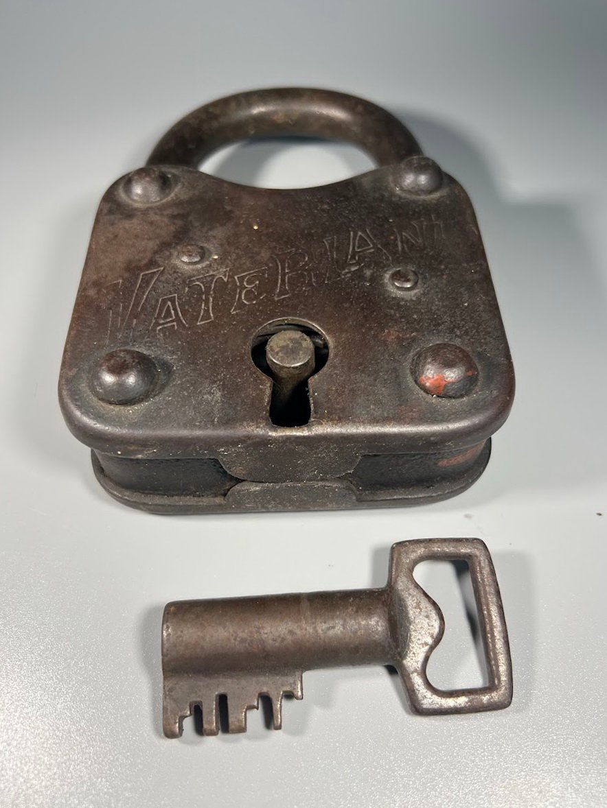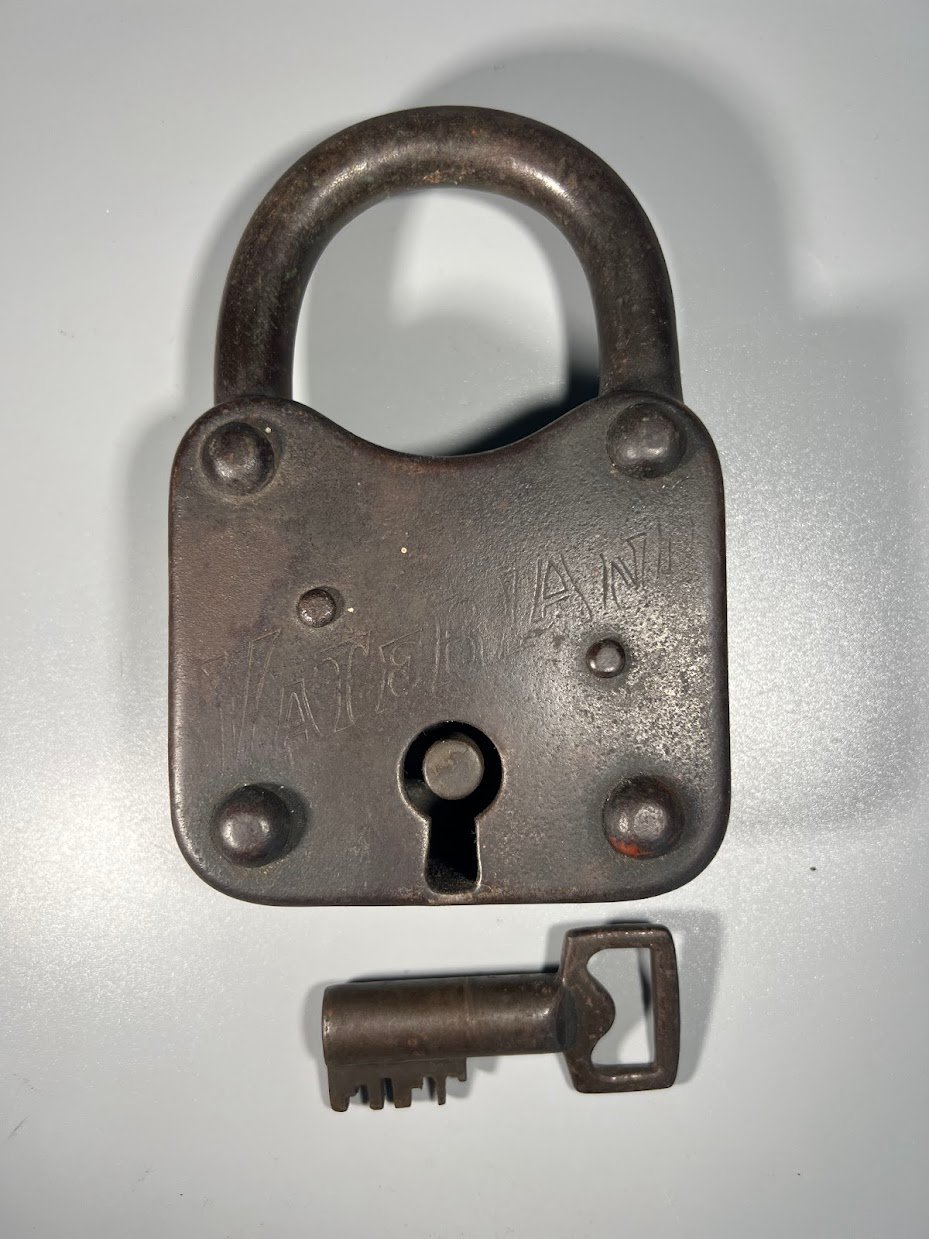 Parduodama autentiška, masyvi ir itin reta vokiška spyna VATERLAND. Tai ne tik saugumo priemonė, bet ir įspūdingas istorinis eksponatas, pasižymintis aukščiausios kokybės vokiška inžinerija. Vaterland prekės ženklas tuo laikotarpiu simbolizavo vokišką kokybę ir nacionalinį pasididžiavimą. Šios „skandinaviško“ arba „kalėjimo tipo“ spynos buvo gaminamos eksportui į viso pasaulio rinkas ir garsėjo savo patvarumu. Dėl savo dydžio ir svorio tai yra puikus akcentas bet kuriai antikvarinių daiktų kolekcijai ar pramoninio stiliaus (industrial) interjerui.