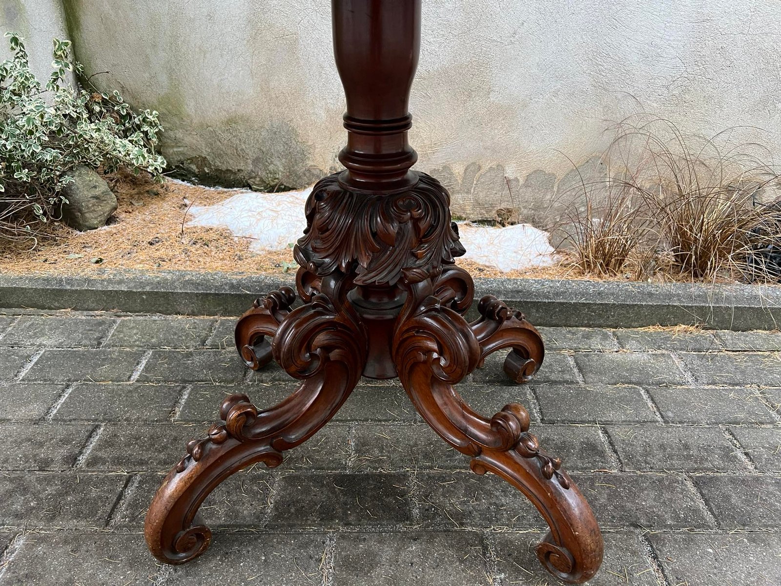Stalas antikvarinis ovalus, nedidelis valgomojo dailiai drožinėta koja. Aukštis 77 cm. Kaina 368