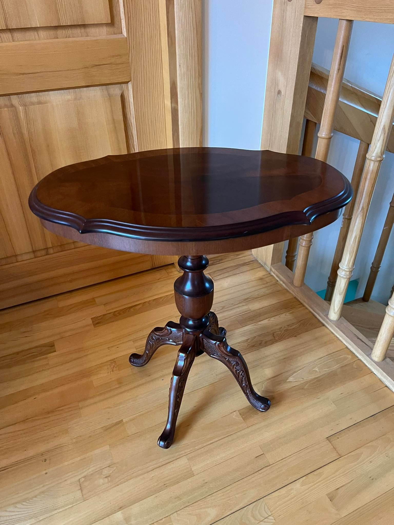 Stalas, kavos staliukas, stovelis ovalus, tvirtas, medinis. Kaina 78