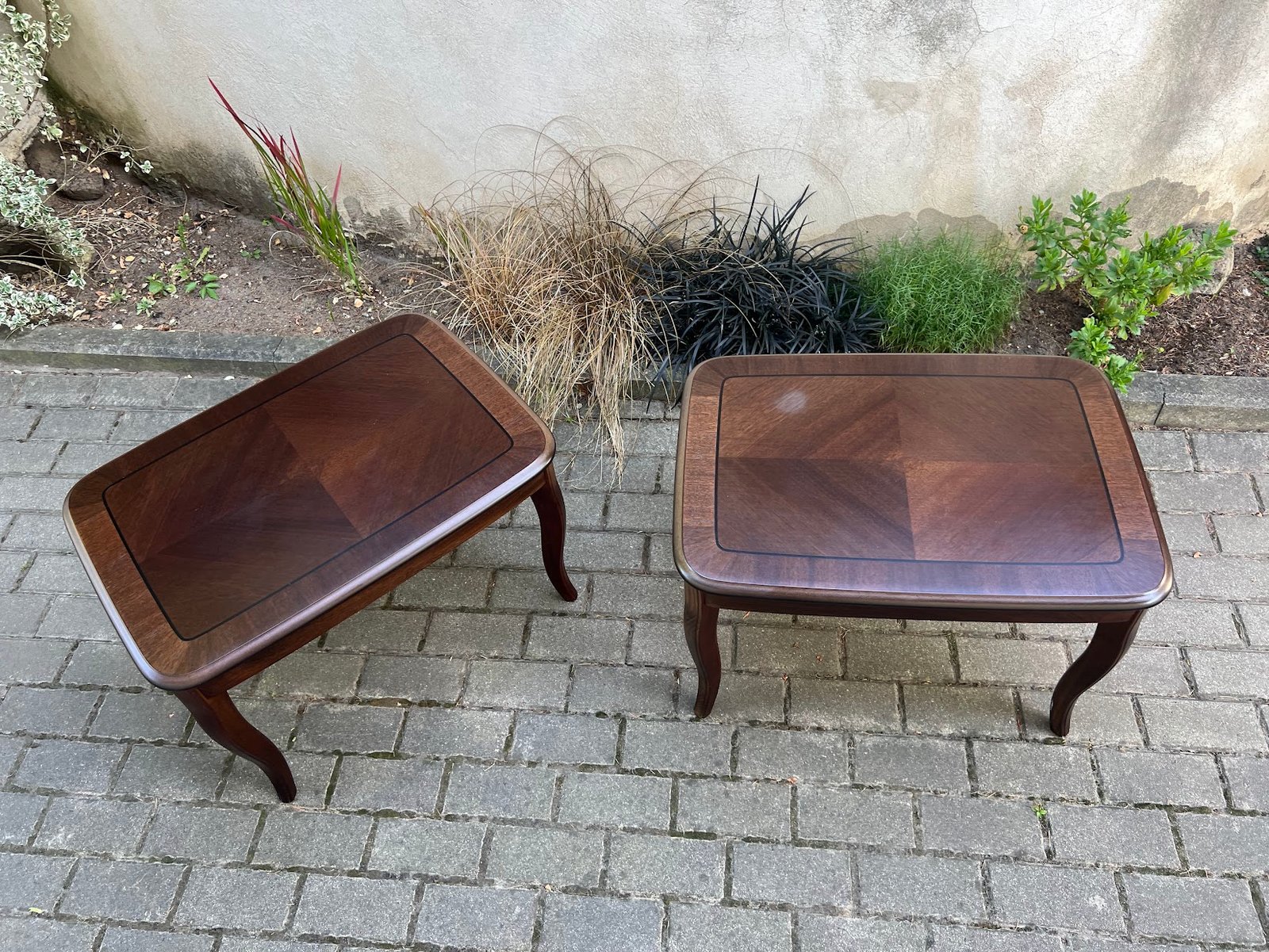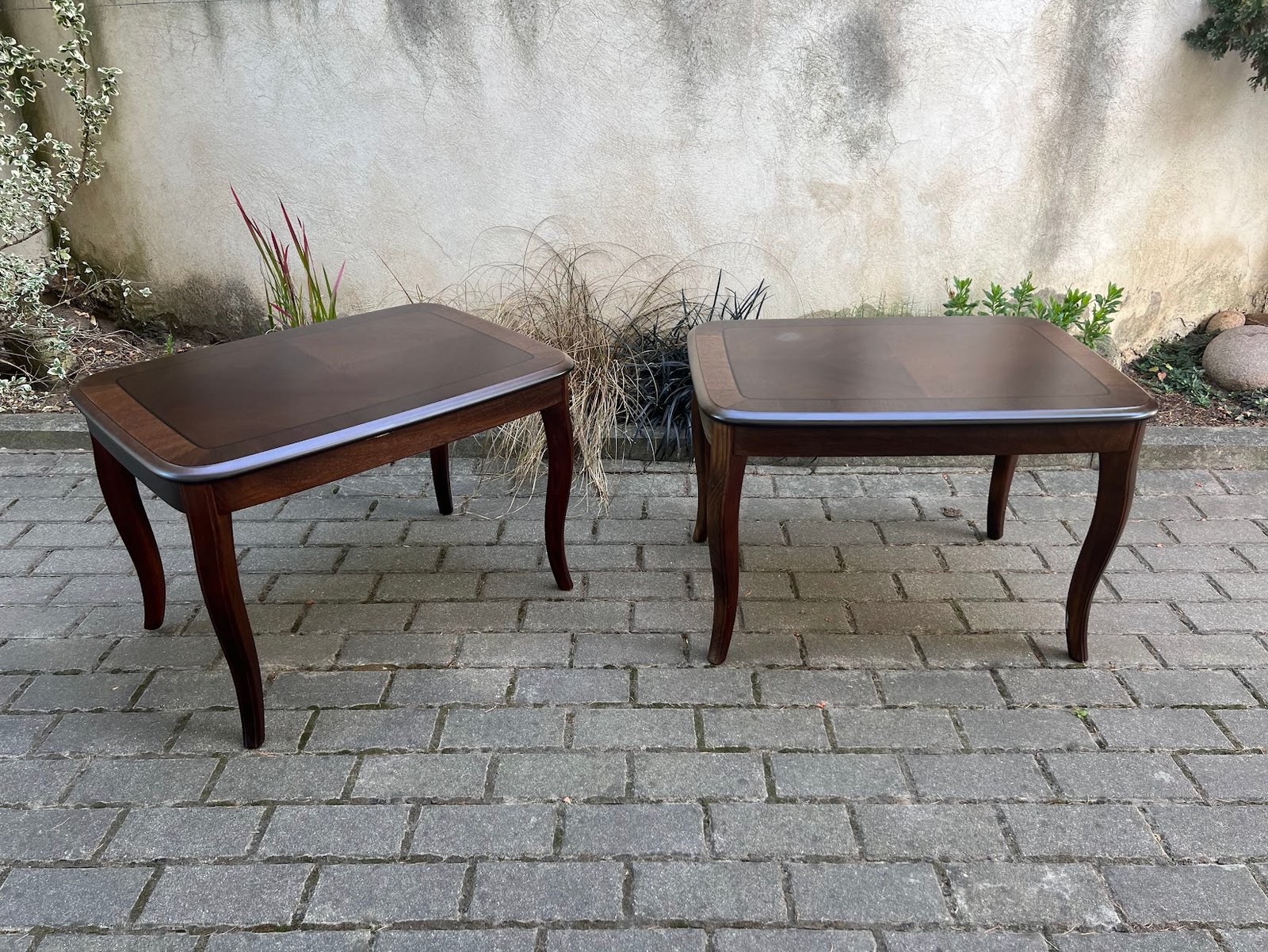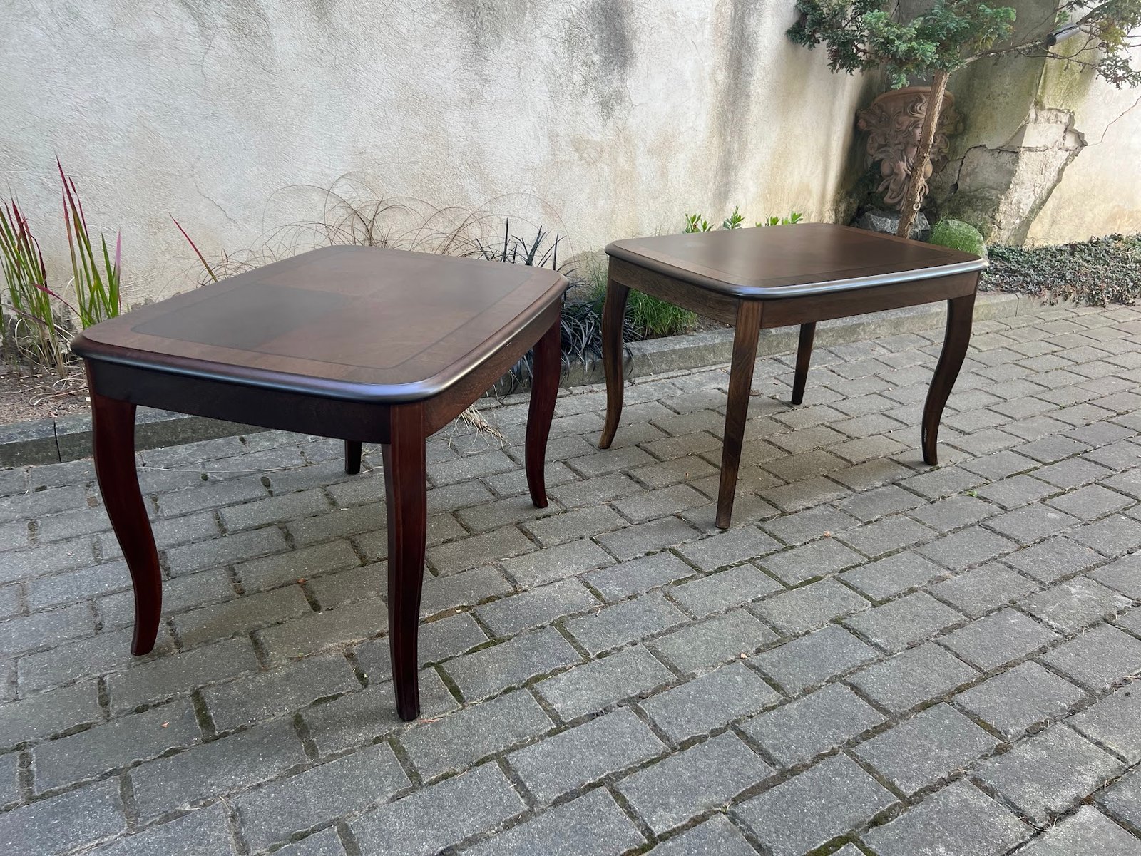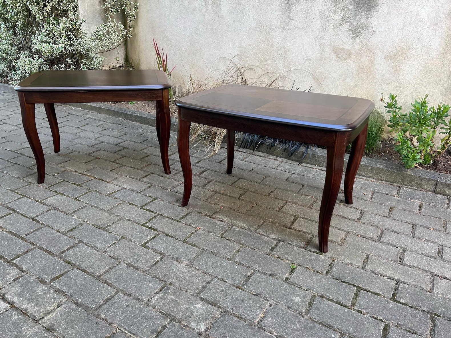 Stalas, kavos staliukas, žemas stovelis keturkampis raudonmedžio spalvos, tvirtas, medinis. 2 vnt. Kaina po 48