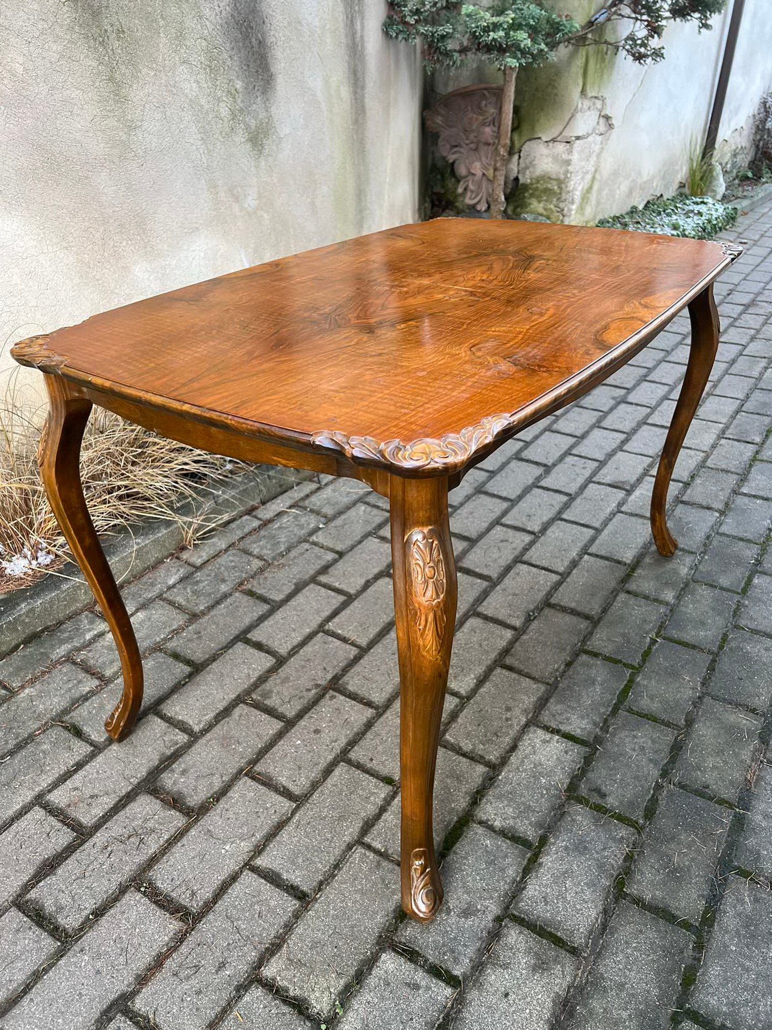 Stalas keturkampis kavos drožinėtais kraštais, antikvarinis, tvirtas. Kaina 138