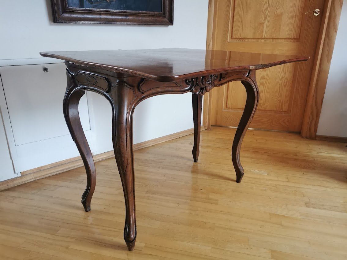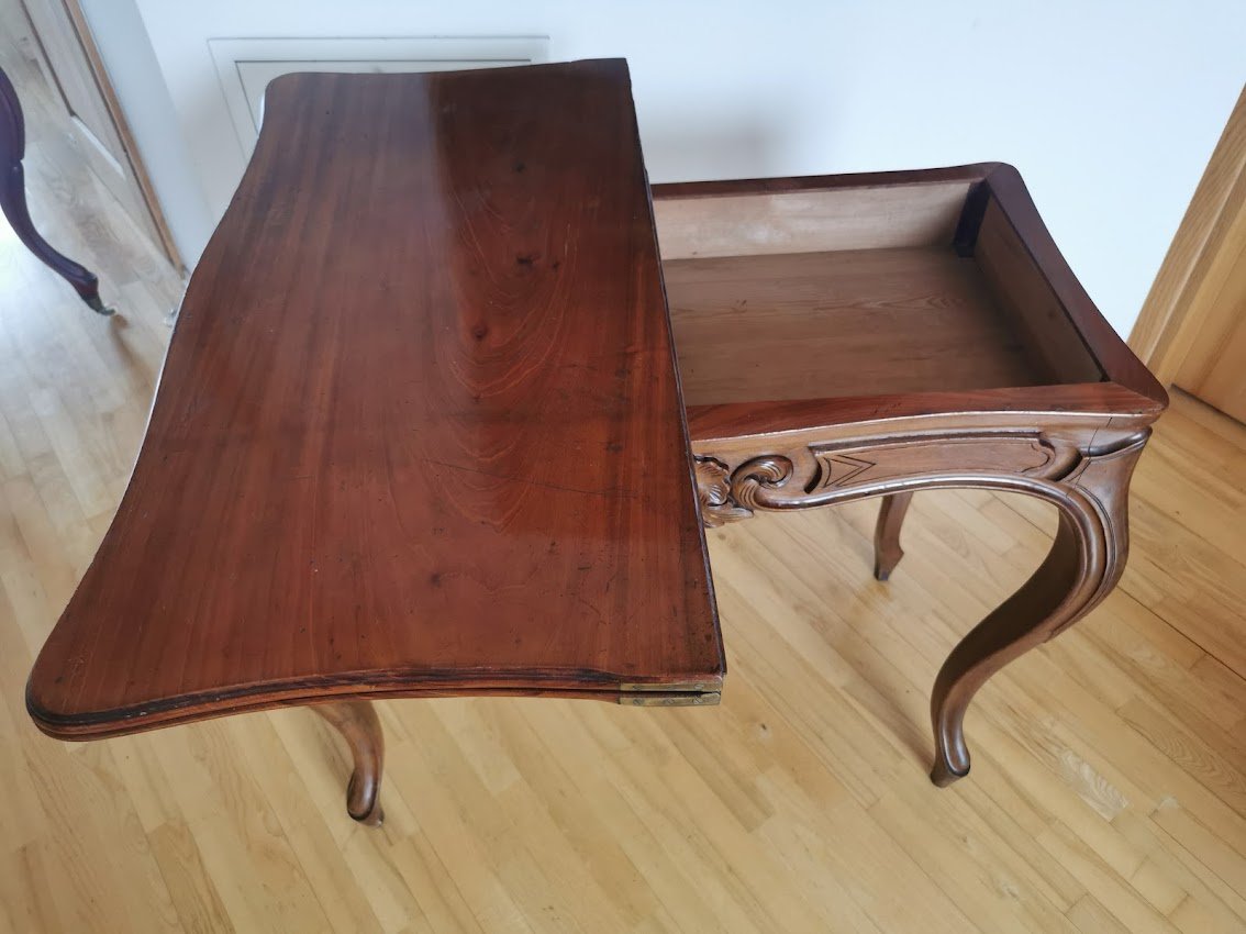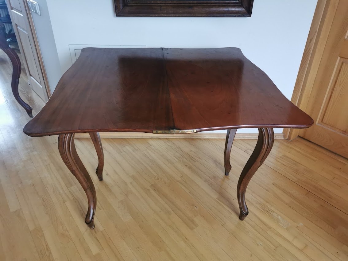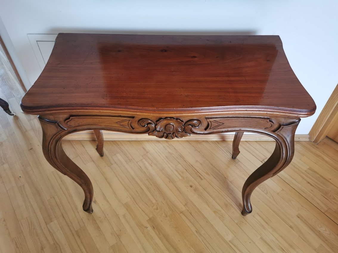 Stalas konsolė, žaidimų, lošimų staliukas išskleidžiamas, antikvarinis. Lomber (pr.. l’hombre, iš isp. k.). Tvirtas. Kaina 387