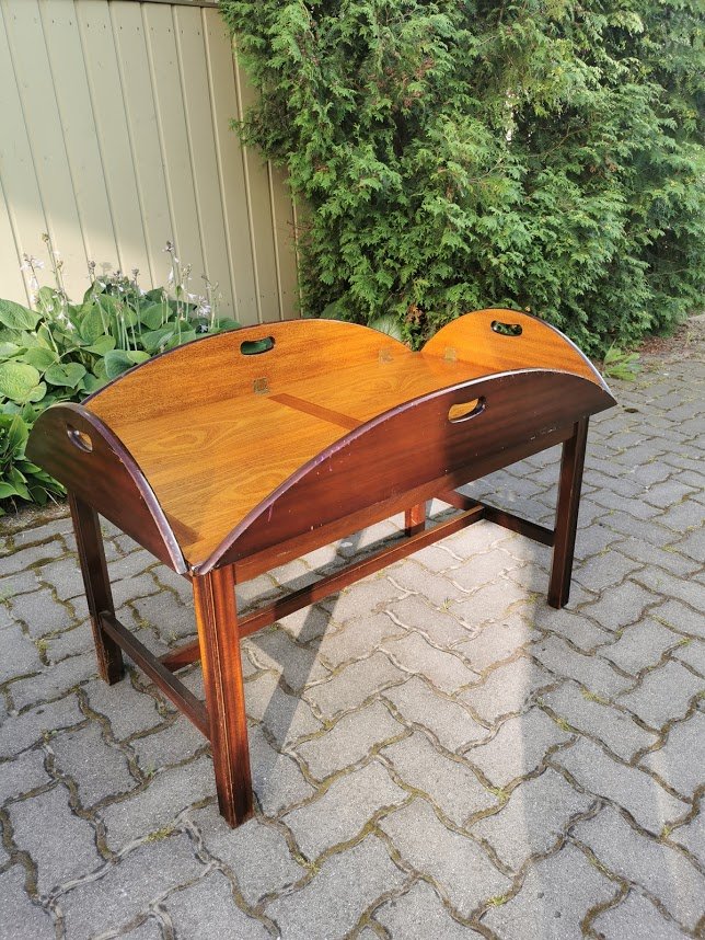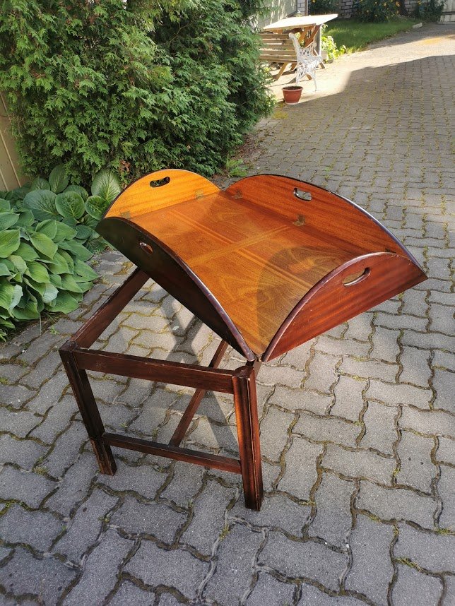 Stalas – padėklas nuimamu stalviršiu, kavos staliukas. Kaina 107