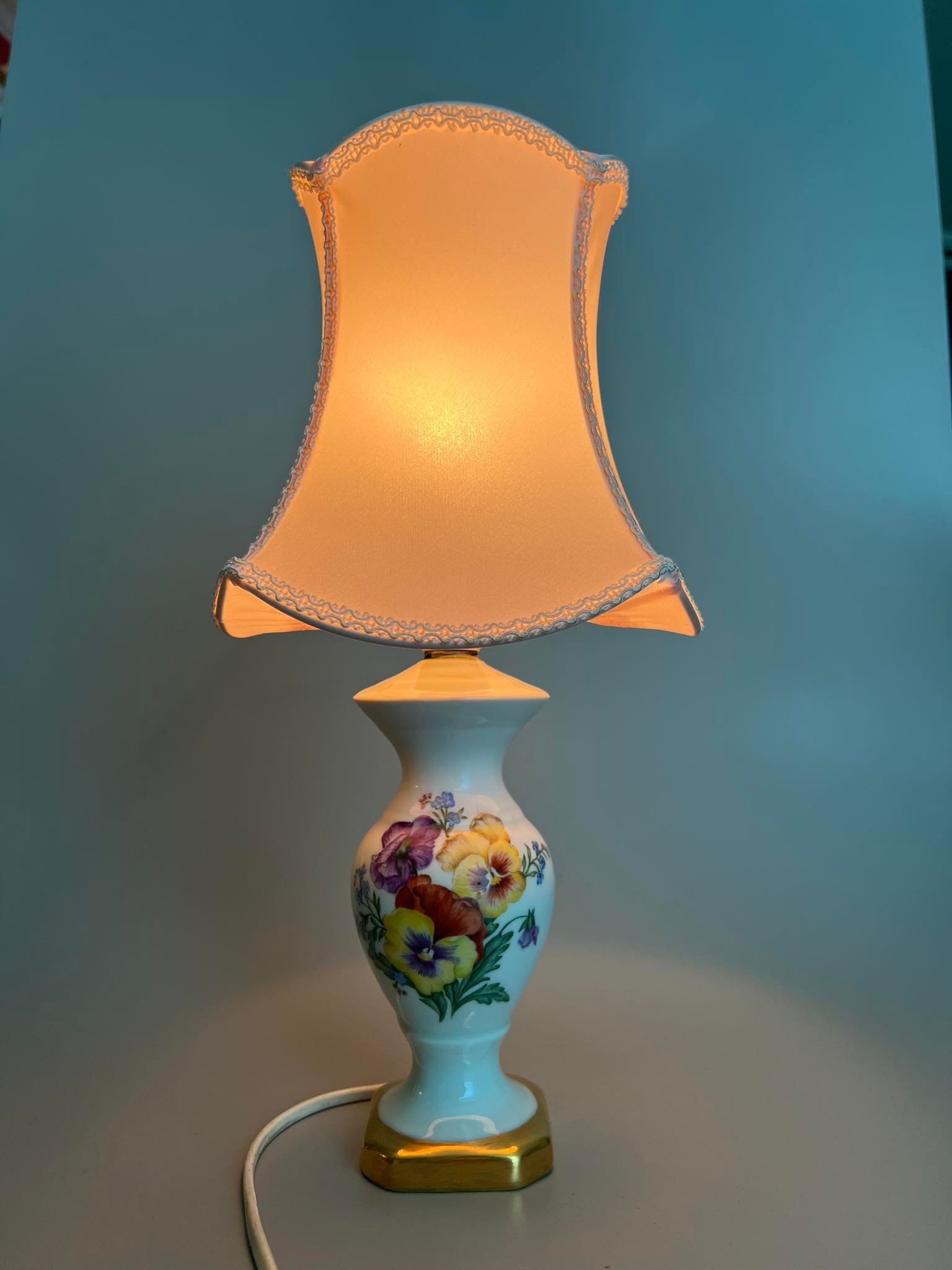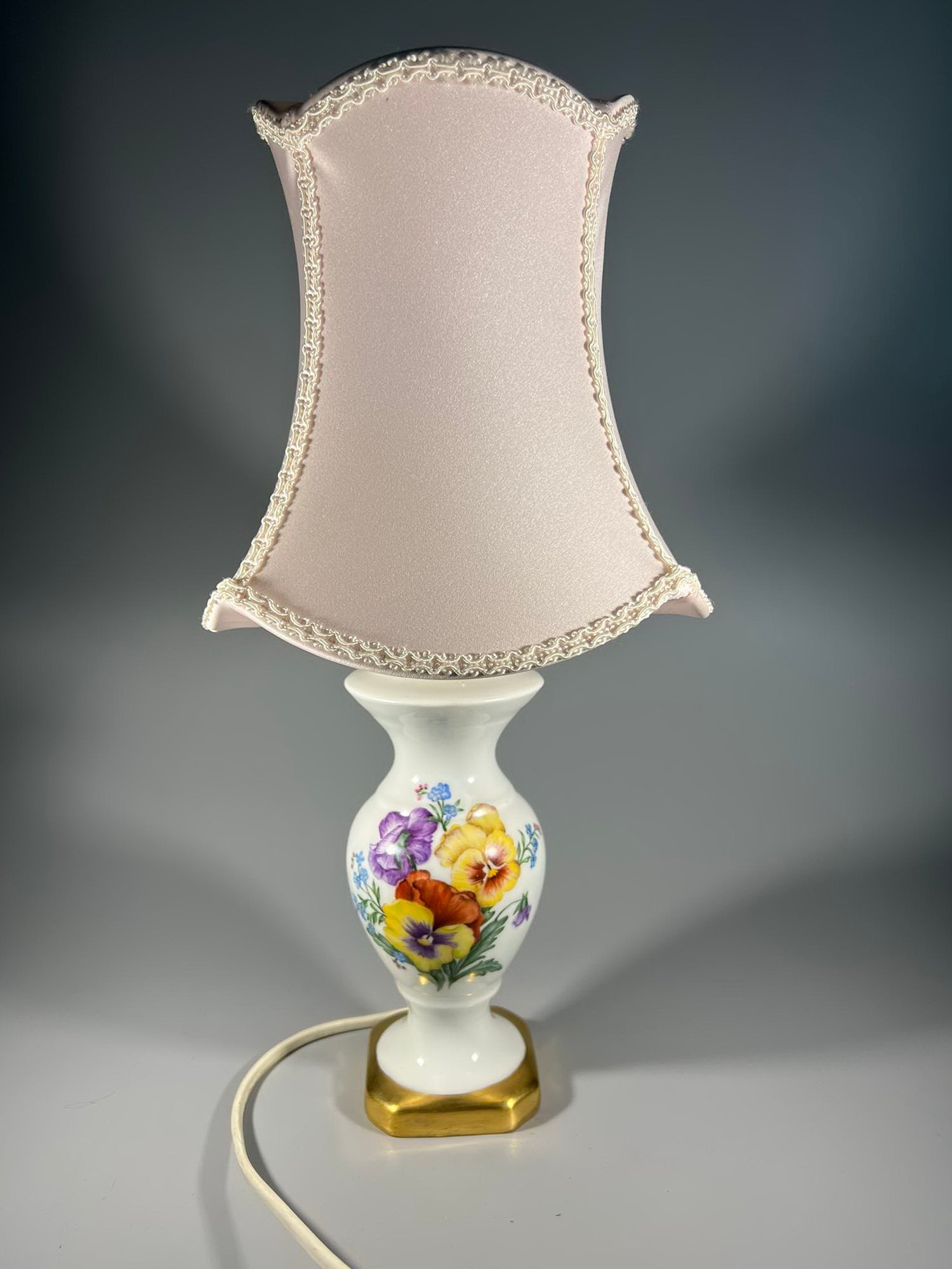 Stalinė – naktinė lemputė, šviestuvas porcelianinis, tapytas, vintažinis. LIMOGES. Veikianti, Aukštis 34 cm. Kaina 58