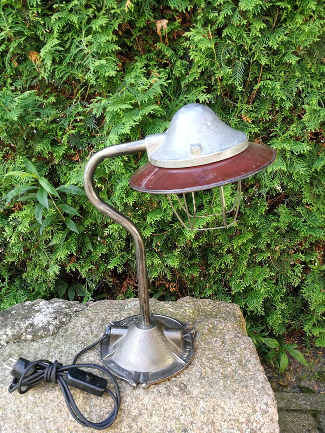 Šviestuvas, lempa industrinio stiliaus, stalinė. Aukštis 56, gaubto skersmuo 28 cm. Visos detalės originalios, puikiai veikia. Kaina 122