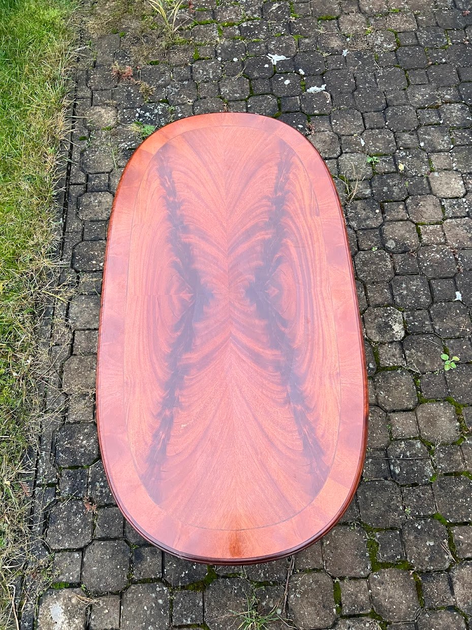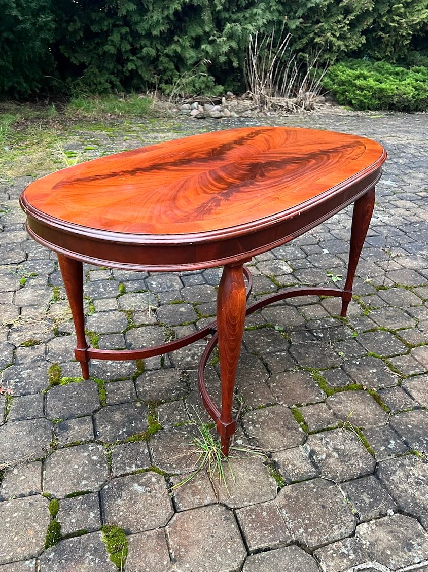 Staliukas kavos, stalas ovalus, raudonmedžio faneruotės, angliško stiliaus. Kaina 96