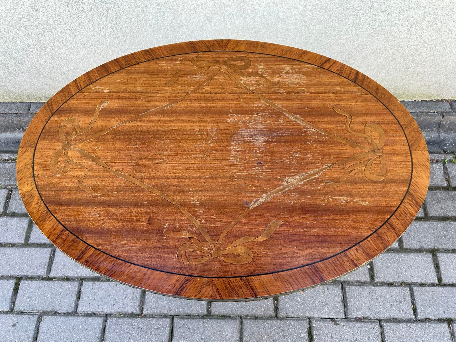 Staliukas, stovelis ovalus. ampyro stiliaus. Aukštis 60, dydis: 49 x 69 cm. Kaina 87