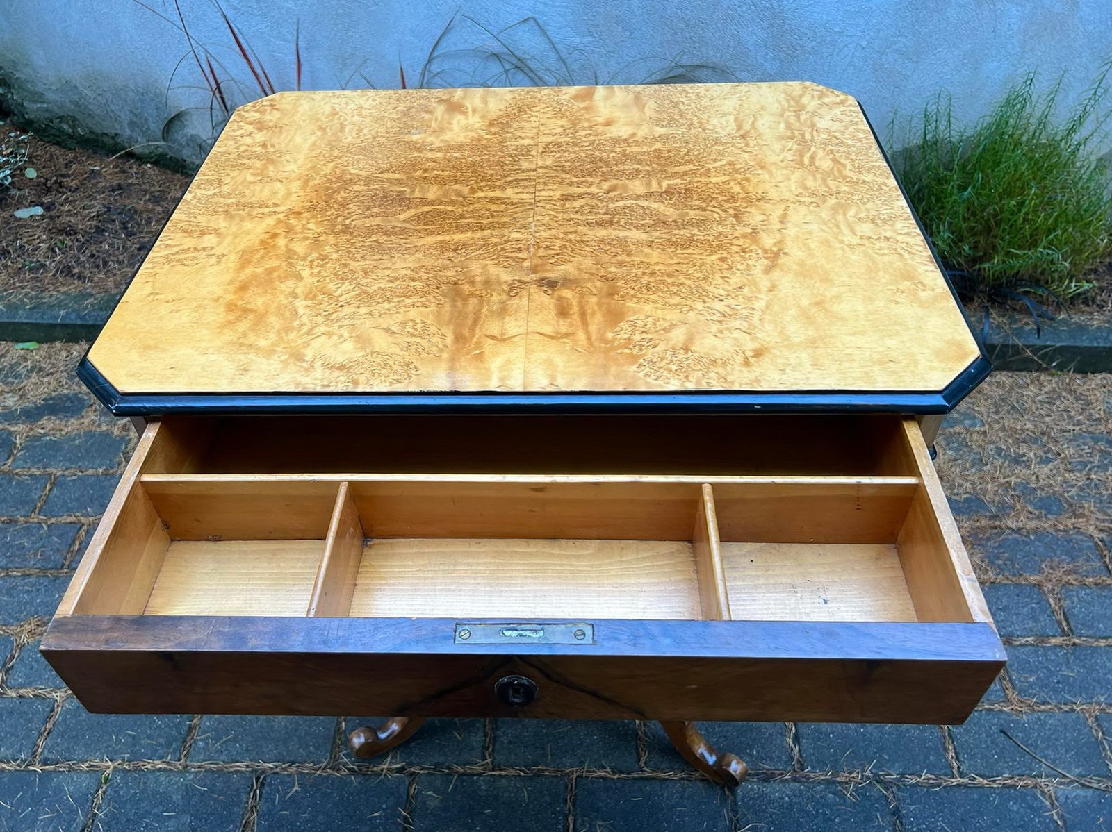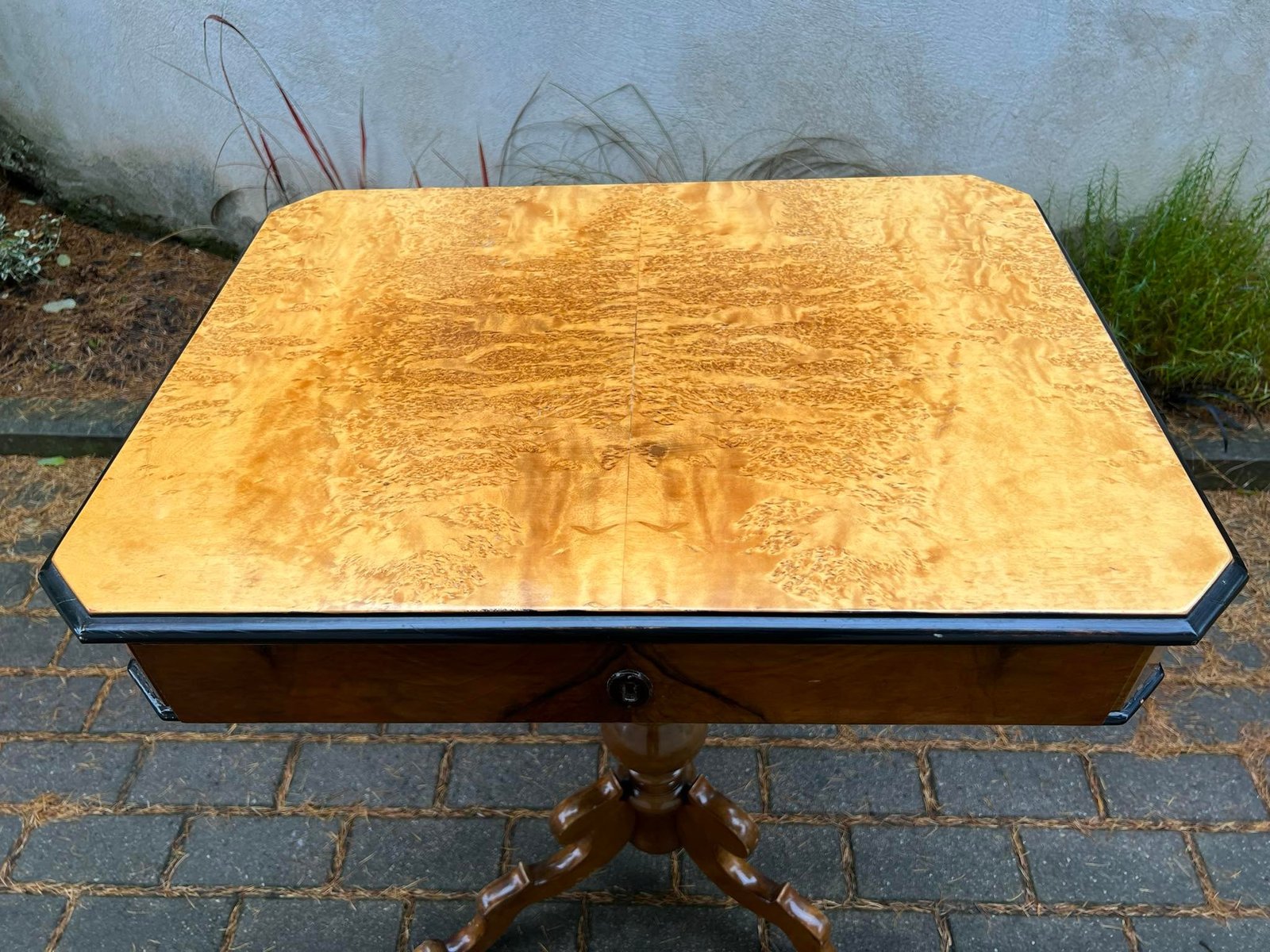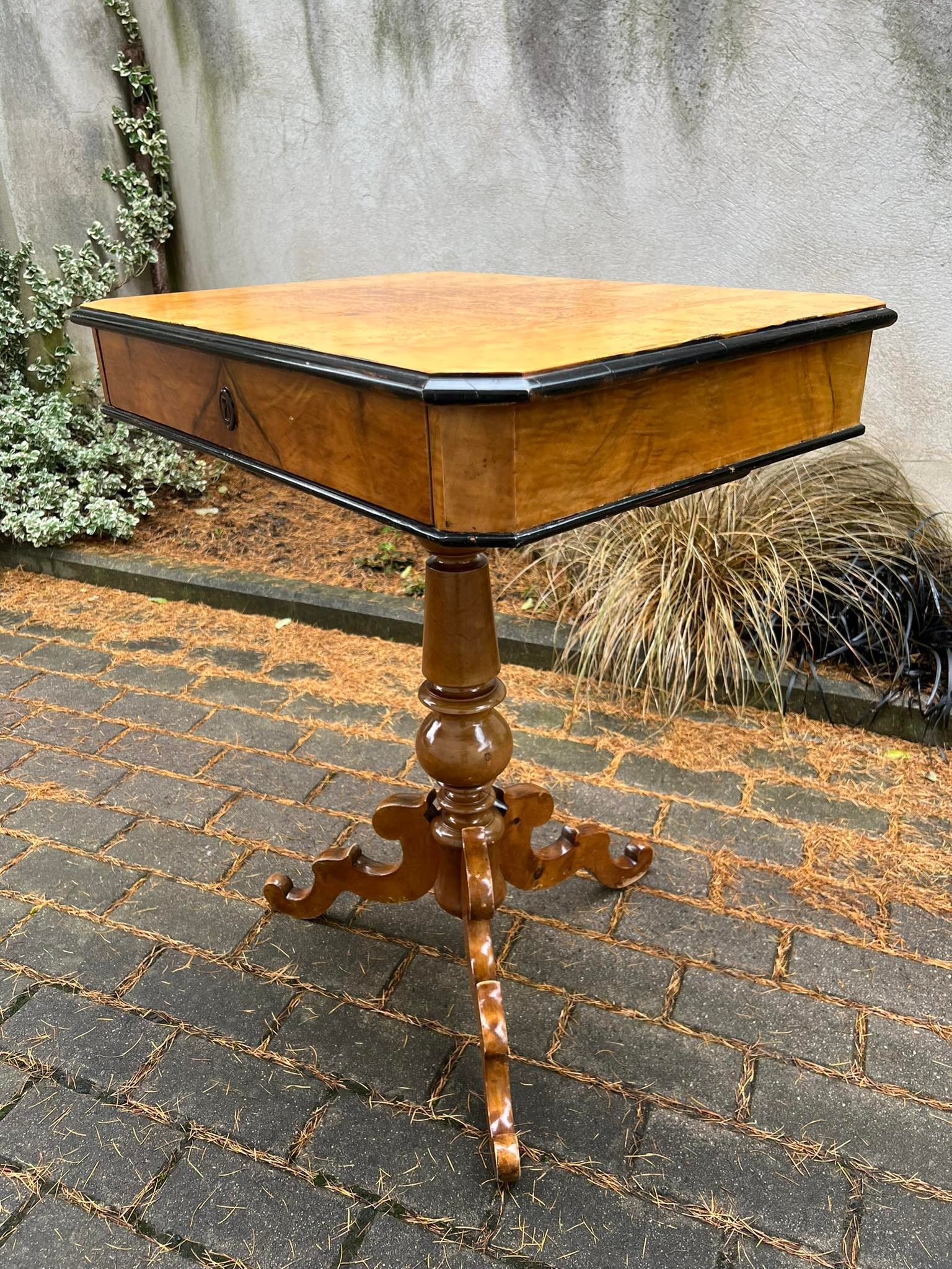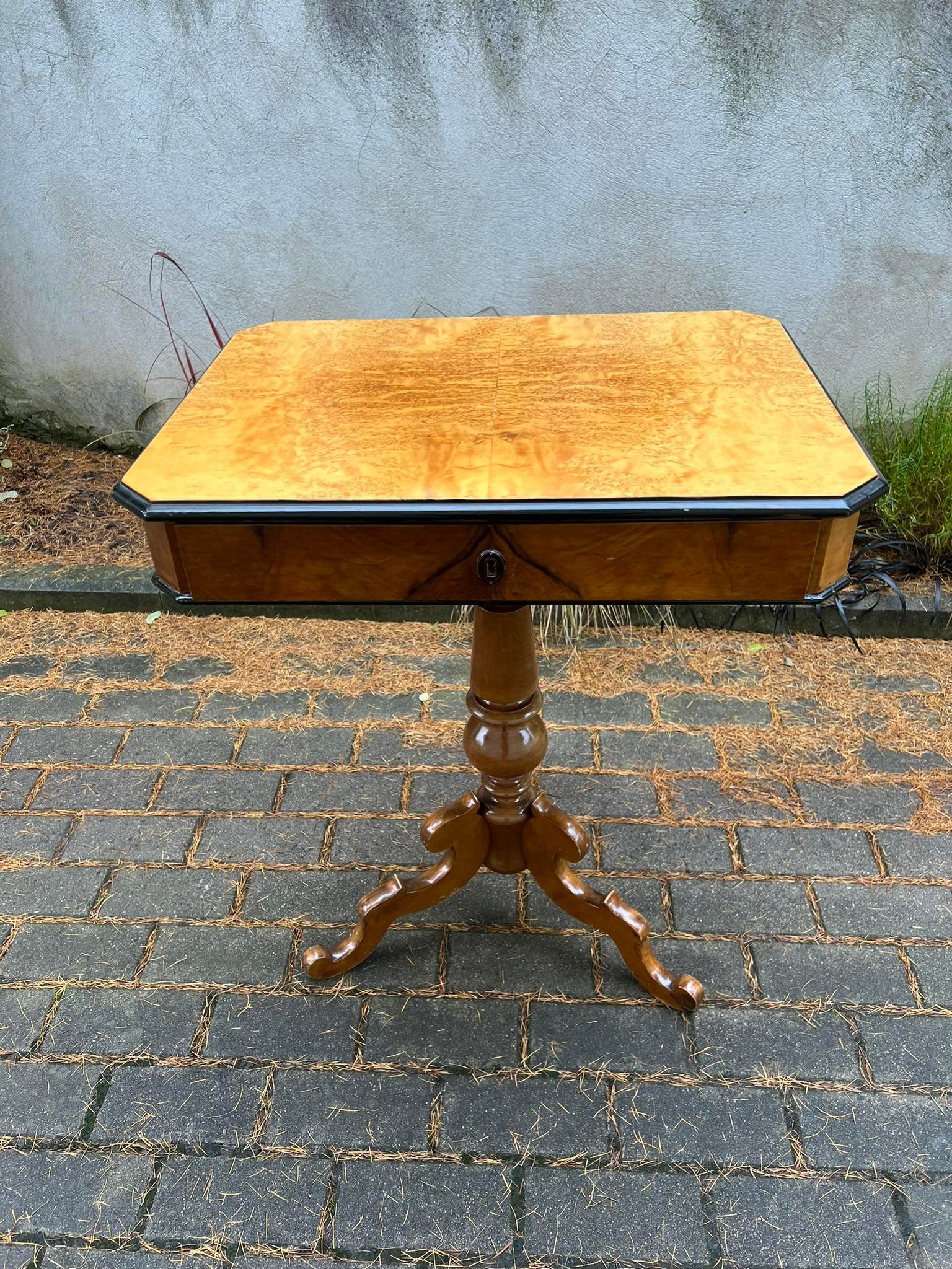 Stalas, stovelis ant vienos kojos su stalčiumi, ypatingu stalviršiu, tvirtas, antikvarinis Aukštis 77, stalviršis: 45 x 61 cm. Kaina 158