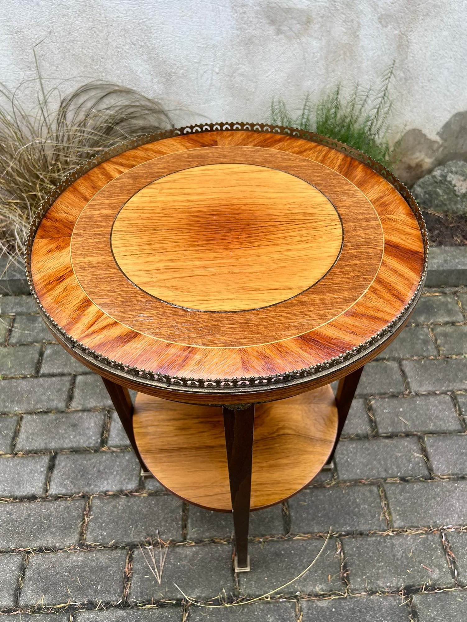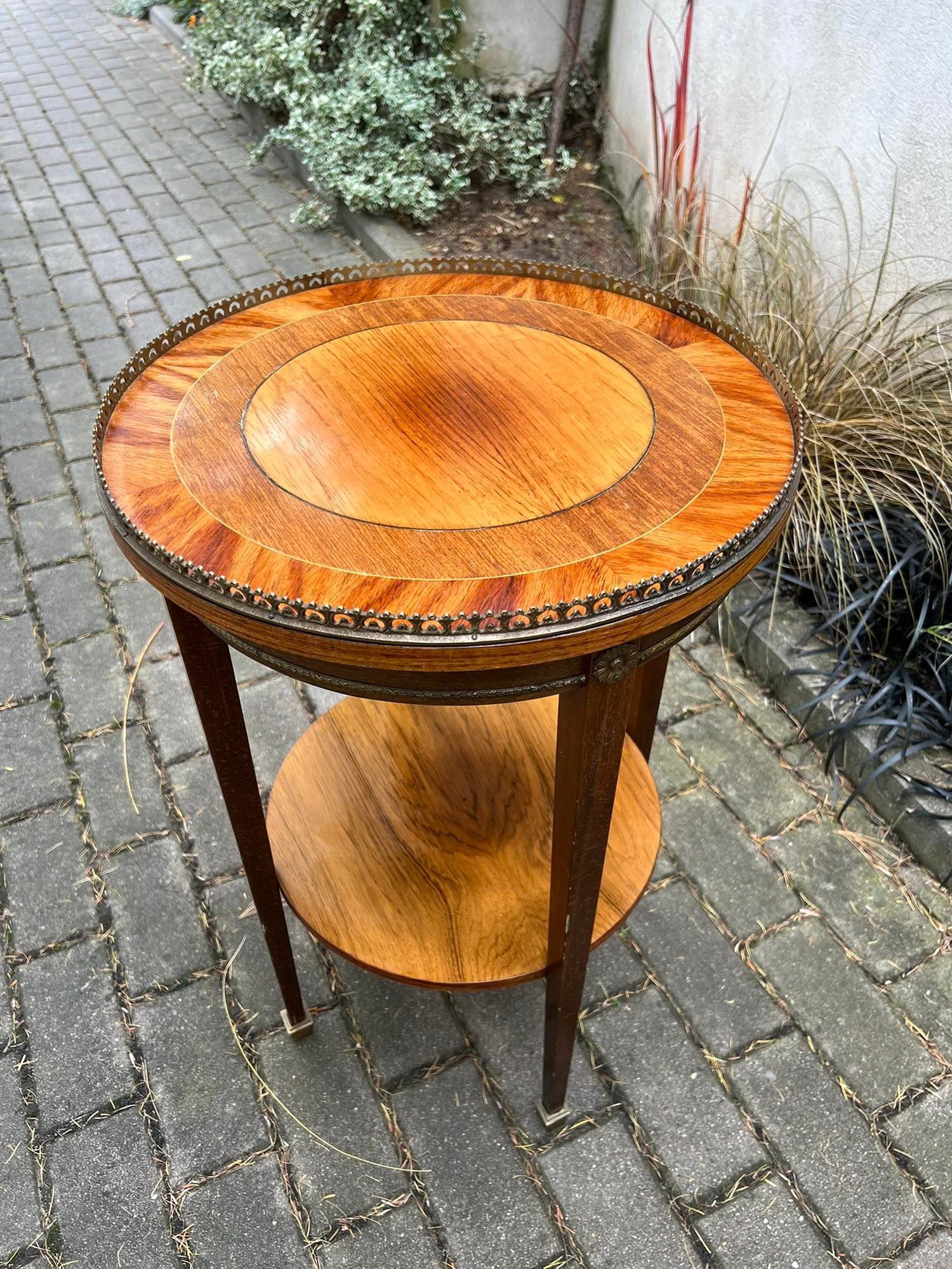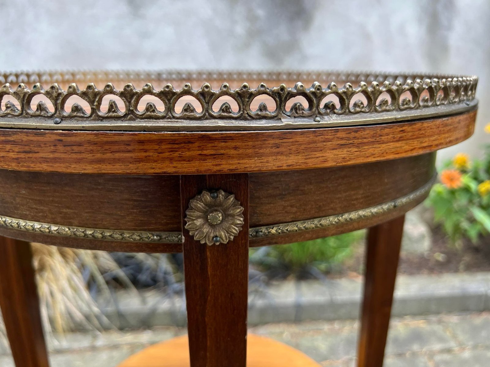 Staliukas, stovelis apvalus, puoštas bronza, tvirtas, antikvarinio stiliaus. Kaina 178