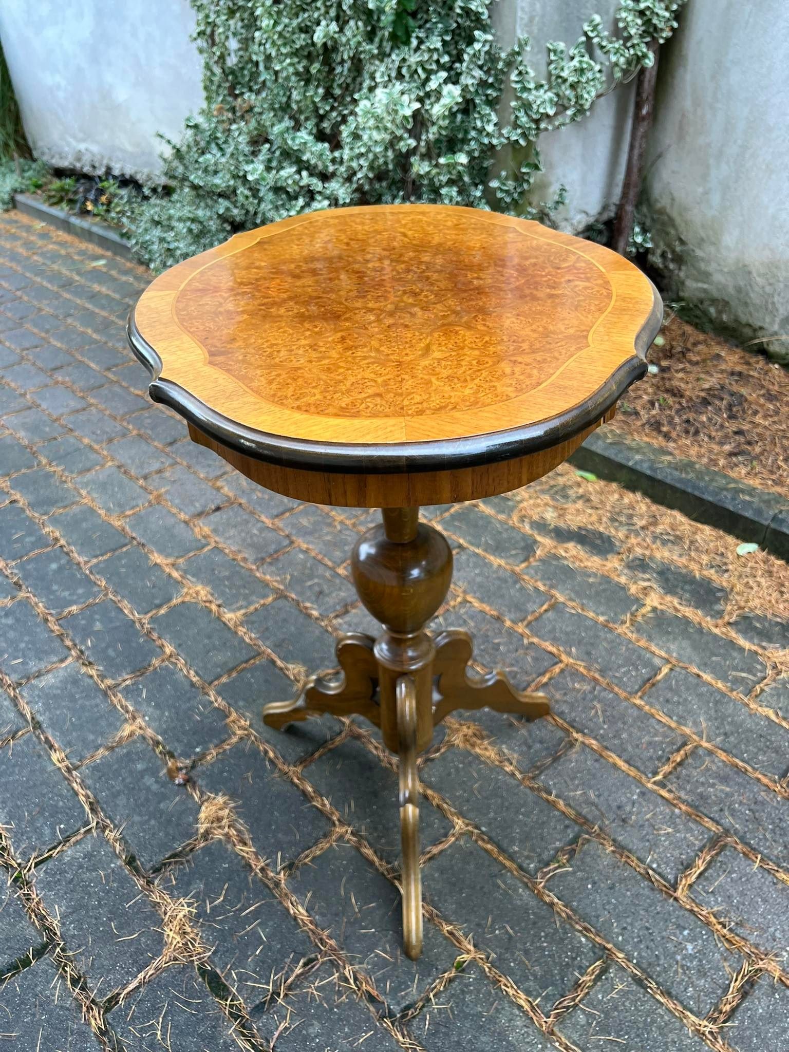 Staliukas stovelis ovalus, antikvarinis, tvirtas, nedidelis kavos staliukas. Kaina 78