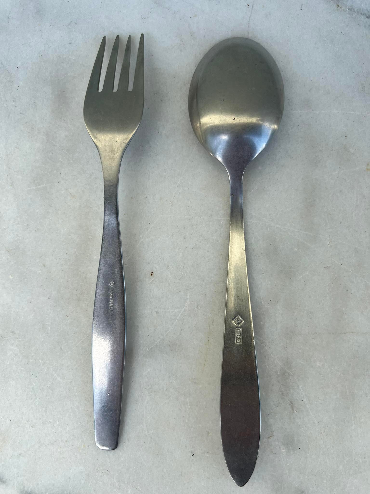 Stalo įrankiai tarybinių laikų, sovietiniai, propagandiniai. 2 vnt. Šaukšto ilgis 20 cm. Kaina po 6