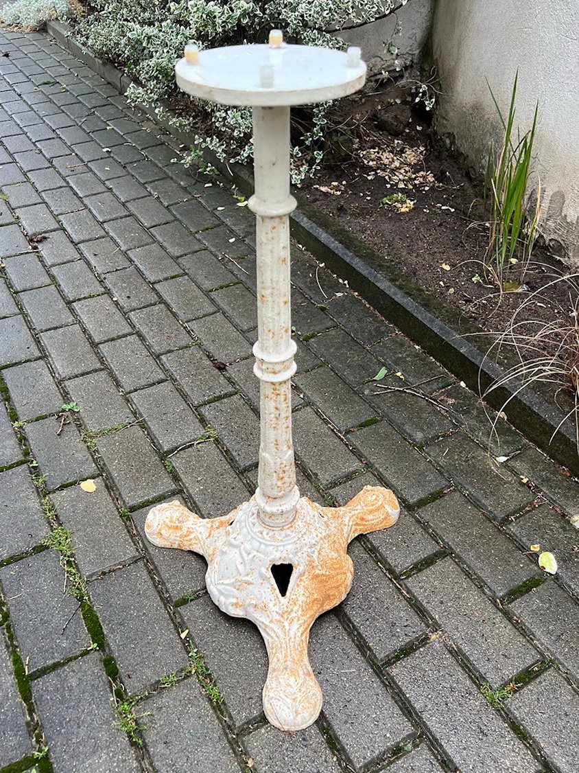Stalo, staliuko koja špižinė, ketaus, masyvi, vokiška. Aukštis 70 cm. Pagrindo skersmuo 40 cm. Kaina 118