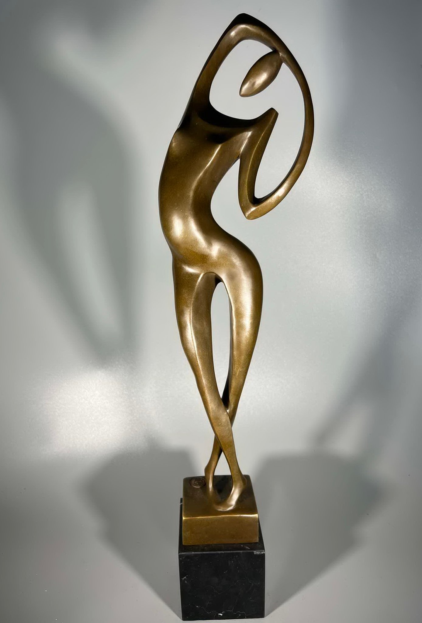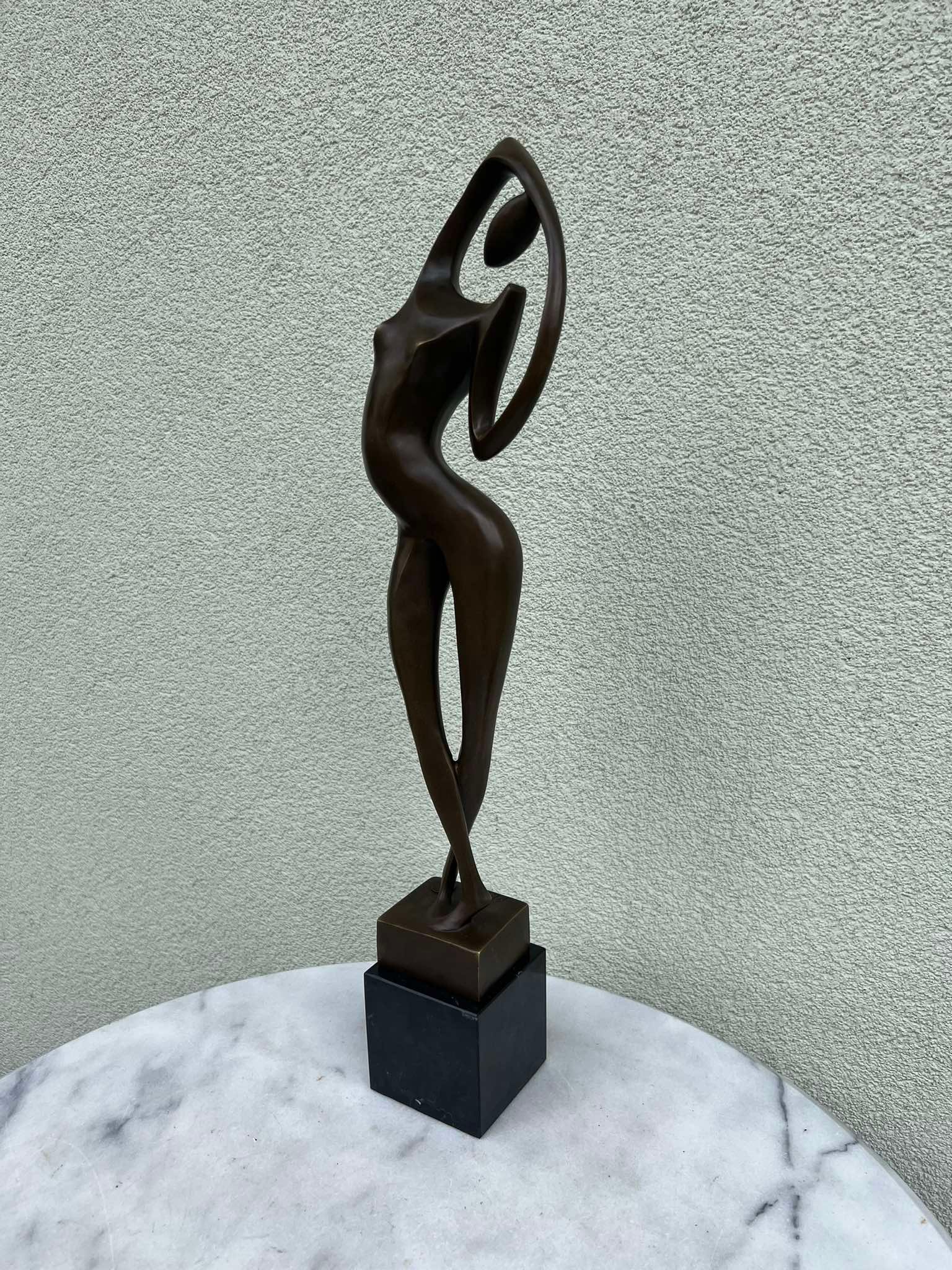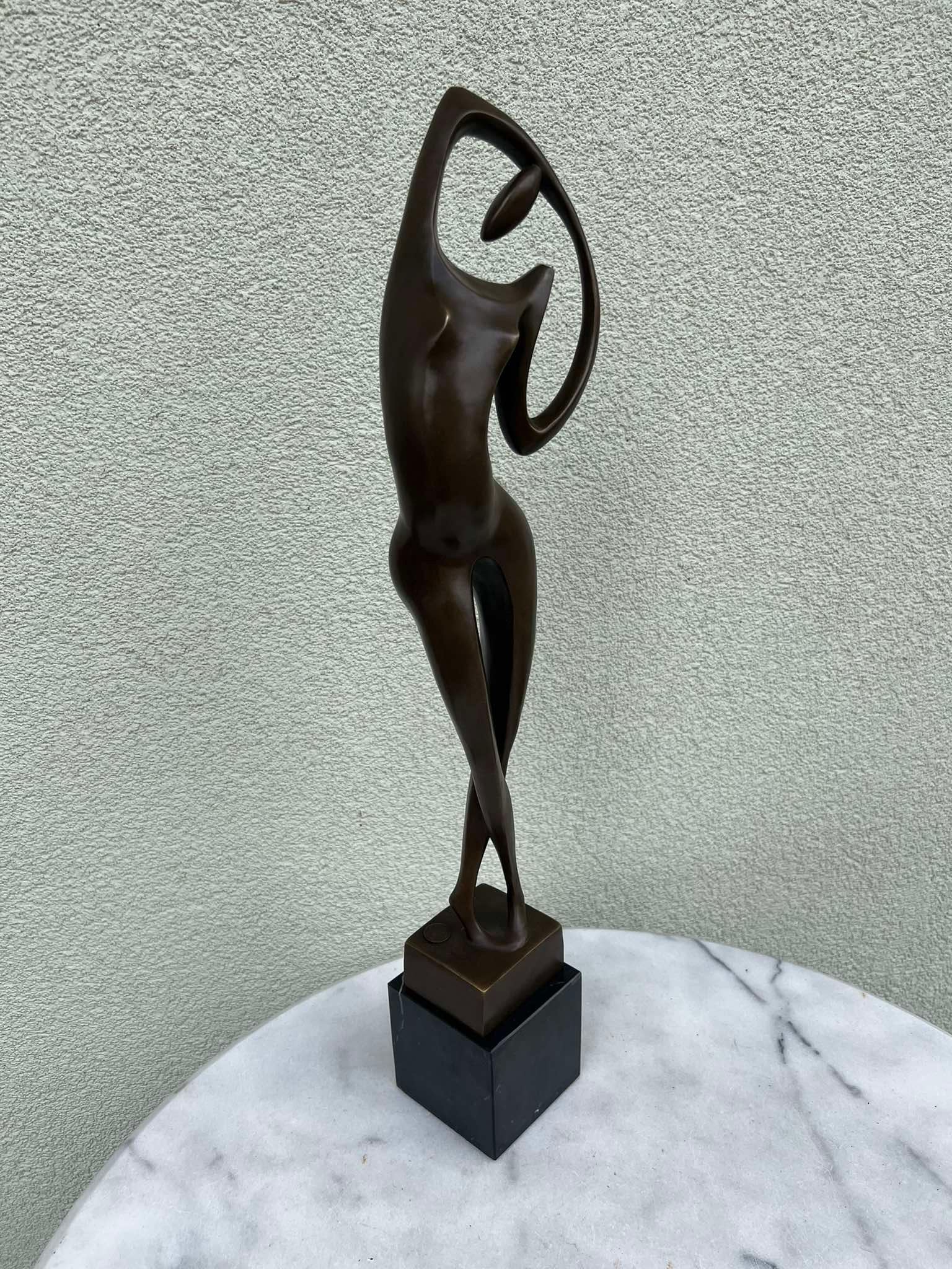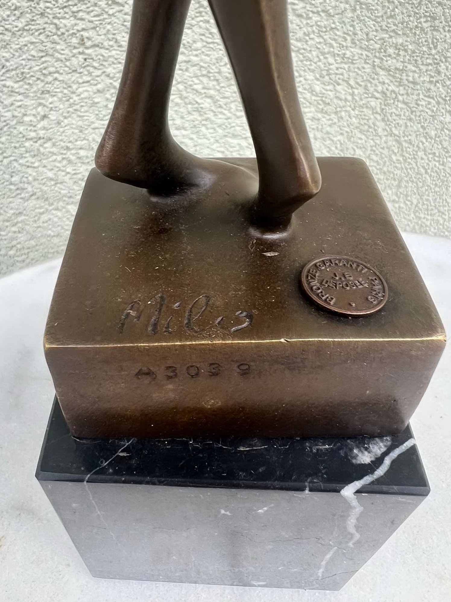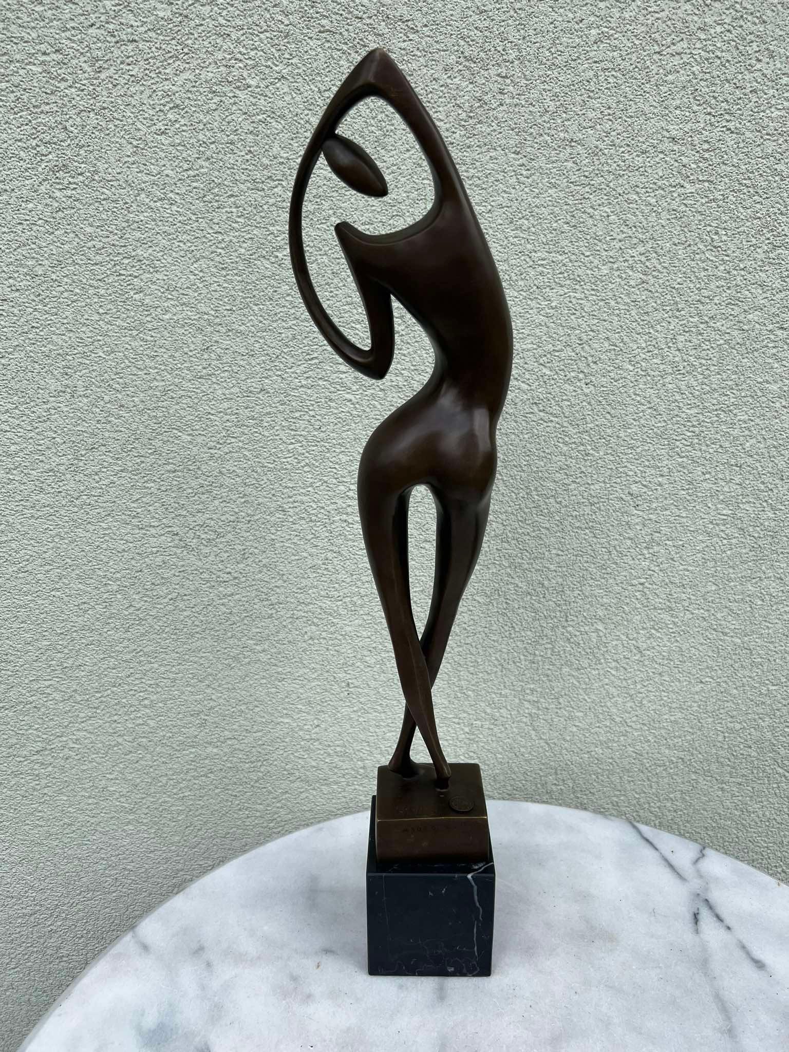 Statula bronzinė Modern art stiliaus Moteris, autorius Max Milo 1938-1976 m., austrų pokario ir šiuolaikinio laikotarpio skulptorius. Svoris 3,6 kg. Aukštis 54, marmurinis postamentas 8 x 8 x 8 cm. Patinuotas bronzinis, marmuro cokolis. Žyma ant pagrindo: „A 3039”, apvalus liejyklos ženklas: „BRONZE GARANTI PARIS / J. B / DEPOSEE”. Kaina 258