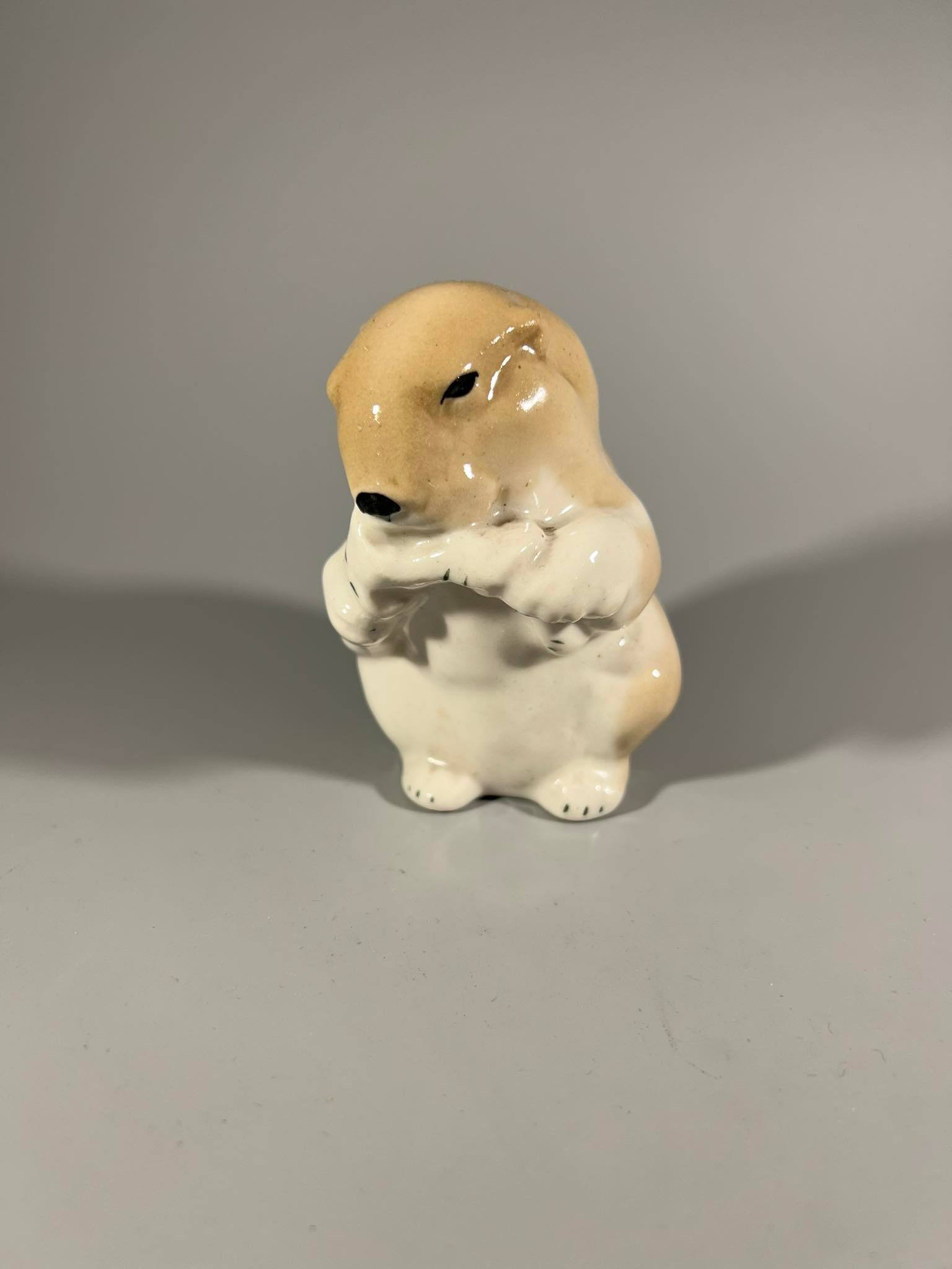 Statulėlė Bebras su šaka, porcelianinė. Gamintojas Leningrado artelė Progresas (Артель Прогресс). Aukštis 10 cm. Kaina 23