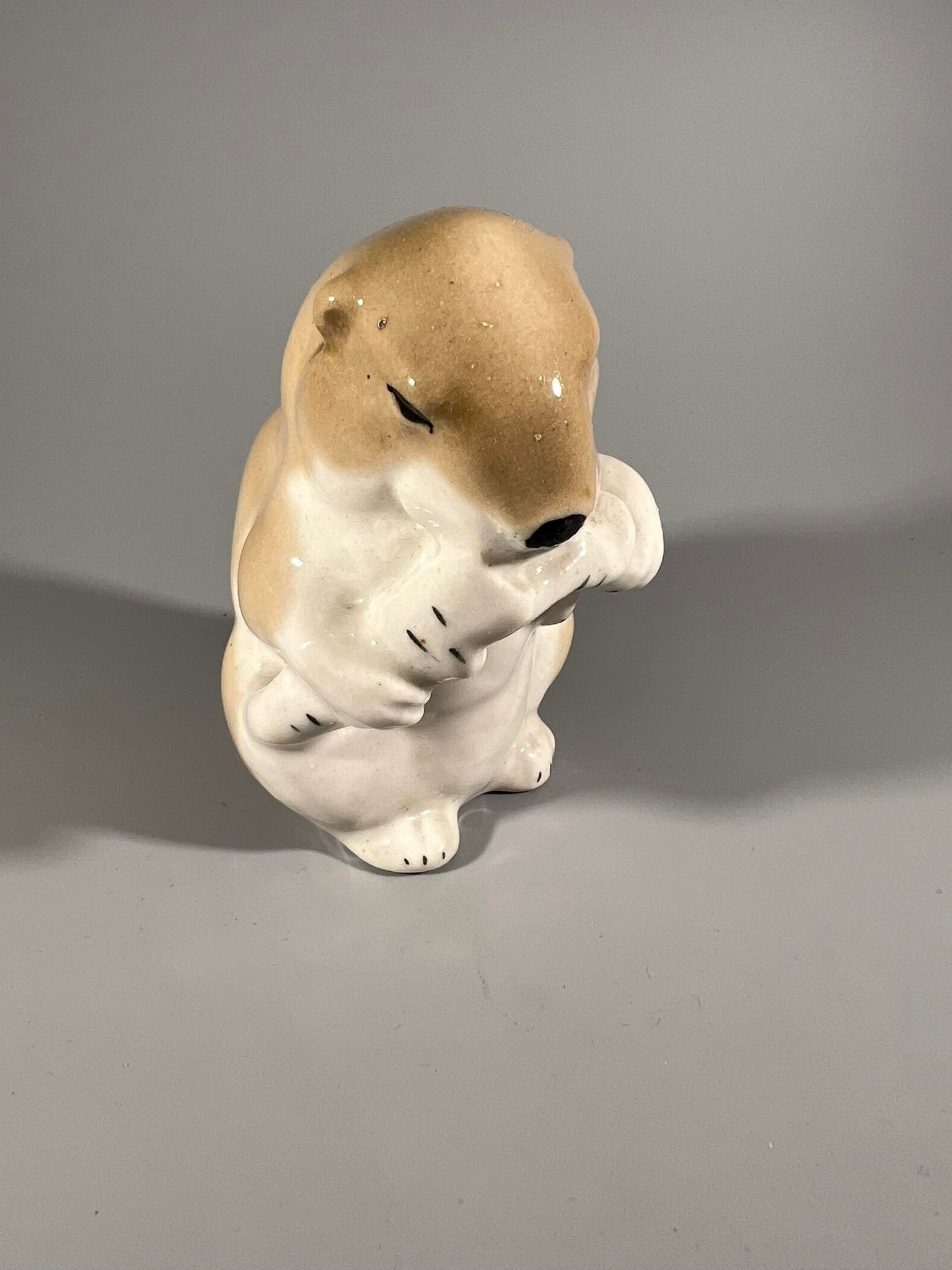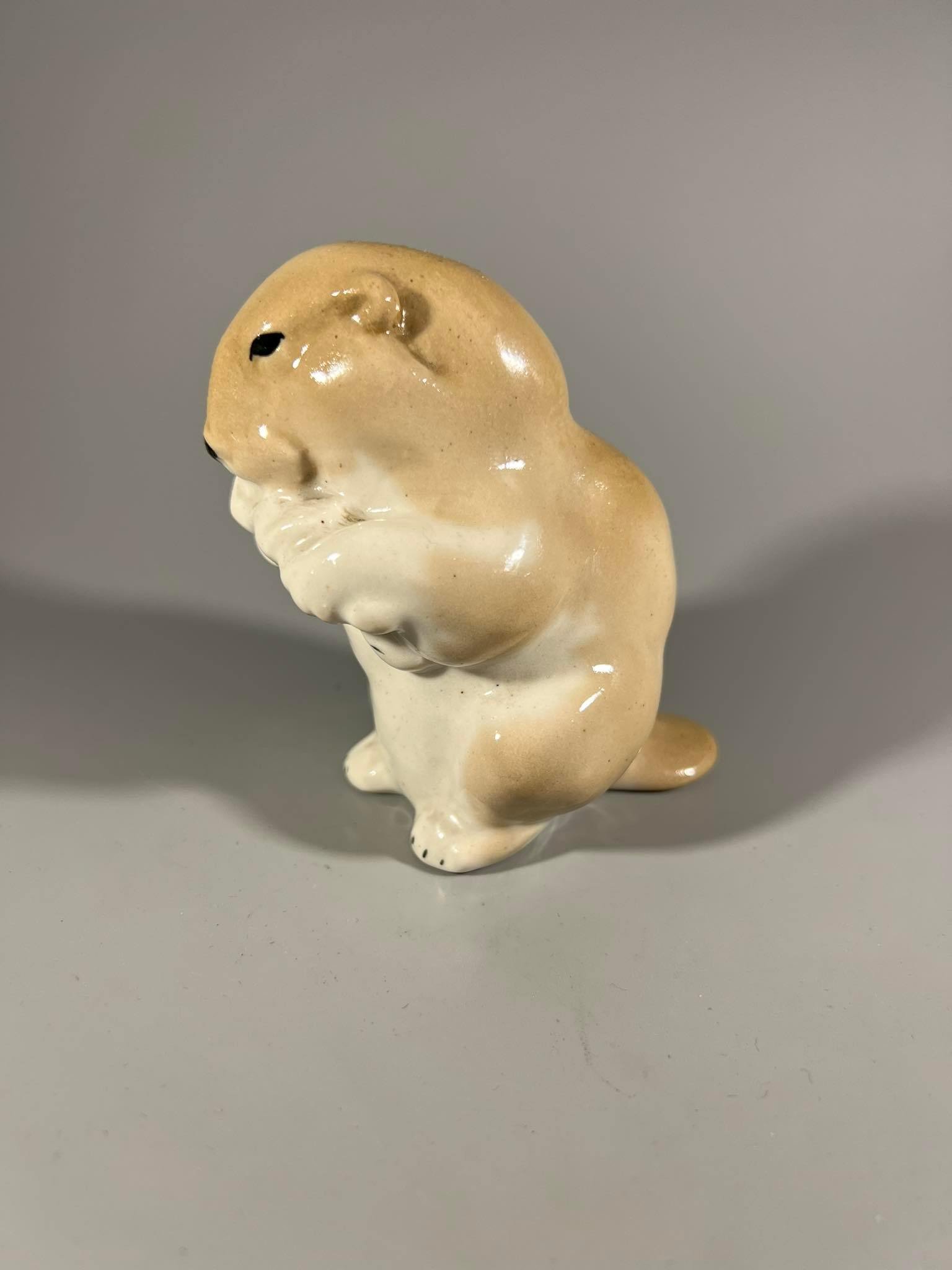 Statulėlė Bebras su šaka, porcelianinė. Gamintojas Leningrado artelė Progresas (Артель Прогресс). Kaina 23