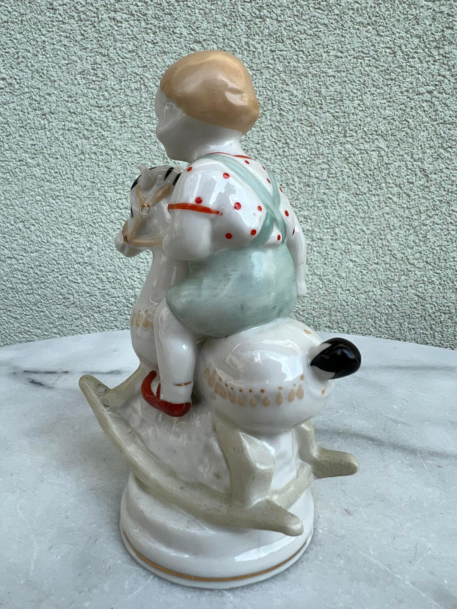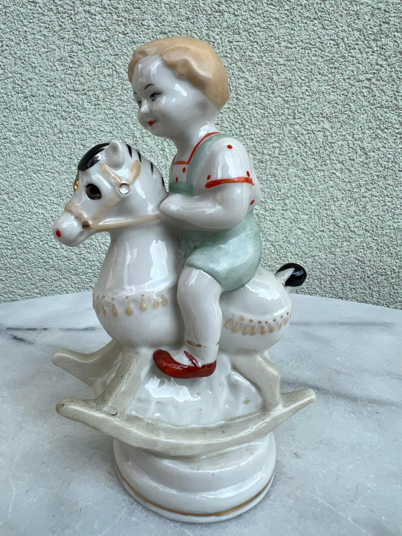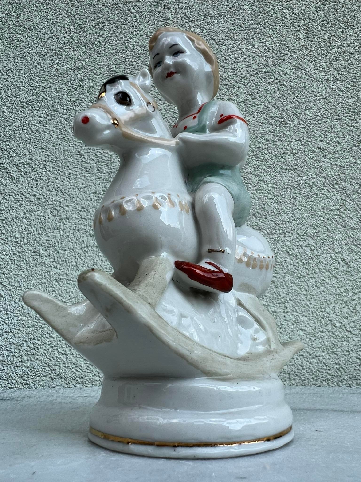 Statulėlė Berniukas ant arkliuko porcelianinė, tarybinių laikų. Fabrikas Polonne ZHK. 1960-70 m. Kaina 87