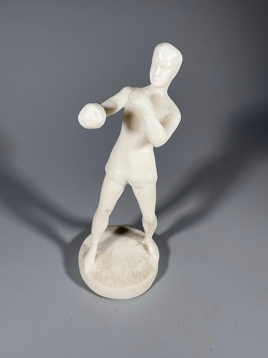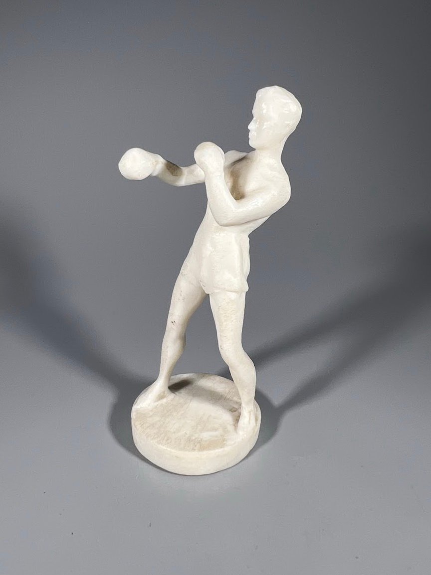 Statulėlė Boksininkas, fenoplastas, sovietinė, tarybinių laikų. ФХИ. 1950–1970 m. Aukštis 12 cm. Kaina 23