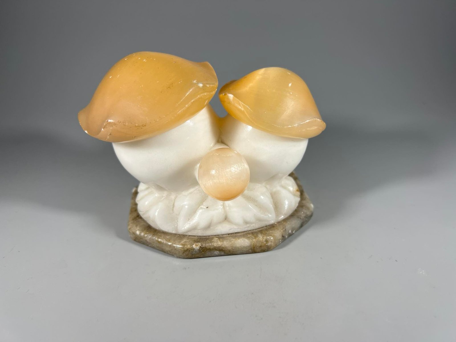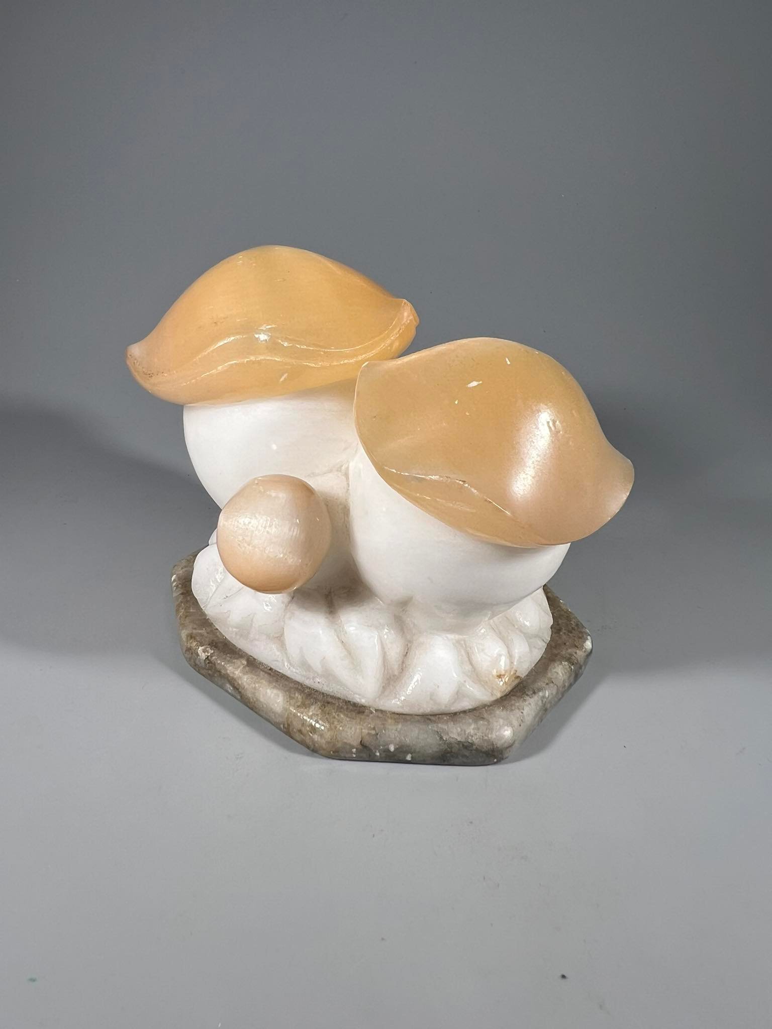 Grybai padaryti iųš marmuro, kepurėlės iš selenito, rankų darbas.