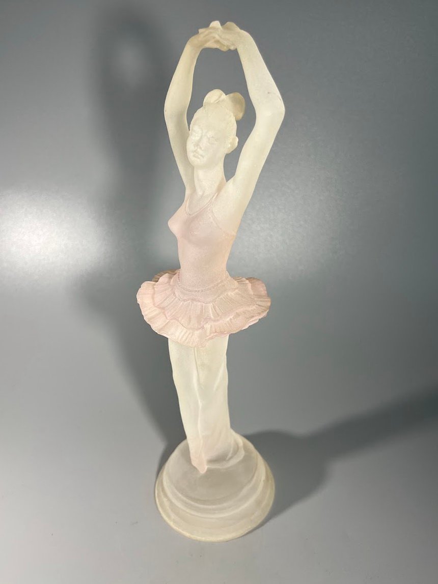 Statulėlė, figūrėlė Balerina, vaizduoja baleriną klasikinėje baleto pozoje, rankomis grakščiai ištiestomis virš galvos. Vokietija. Aukštis 30 cm. Kaina 58