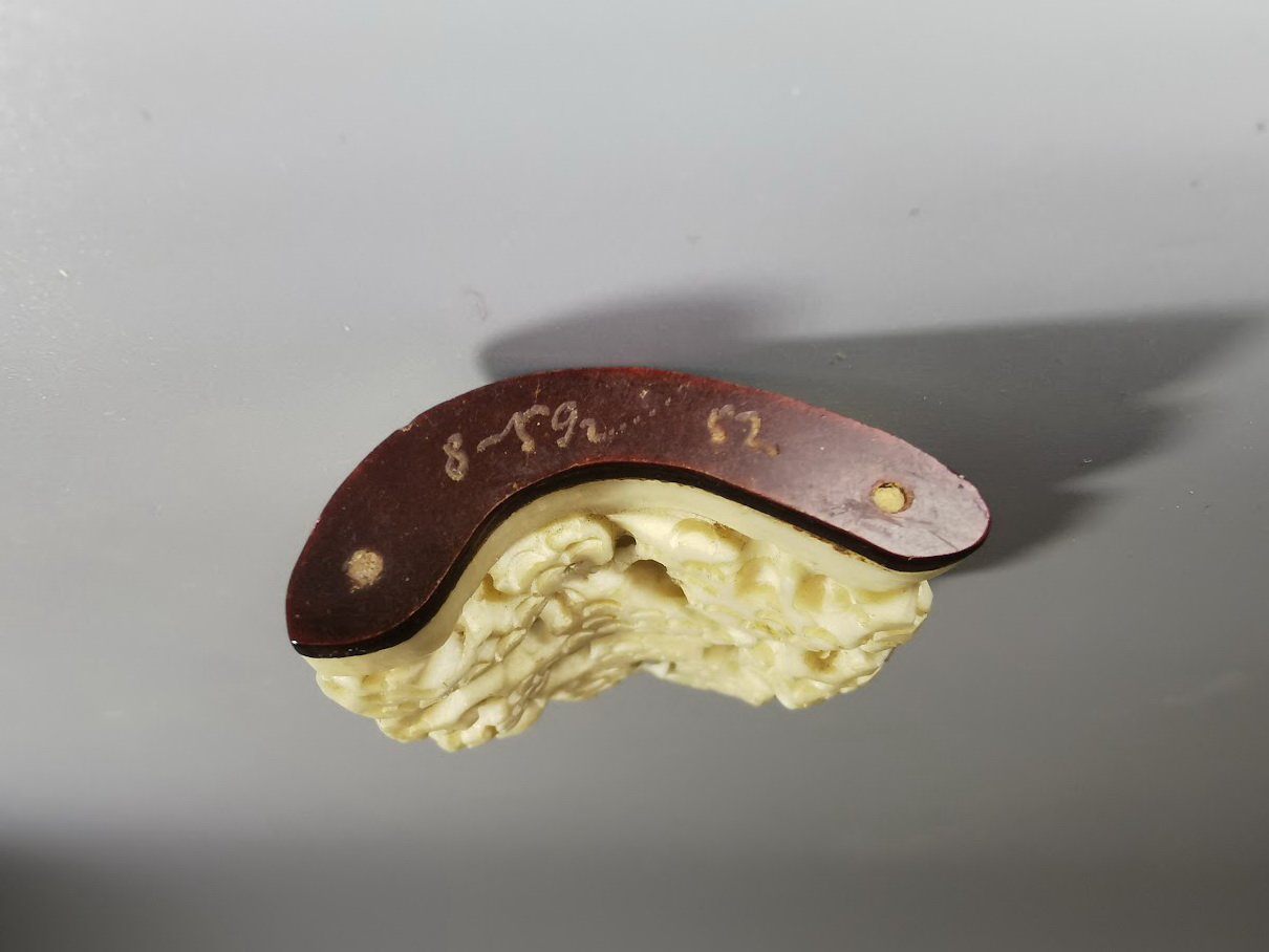 Statulėlė, figūrėlė kaulinė, antikvarinė. Ilgis 4, aukštis 4,5 cm. Kaina 32