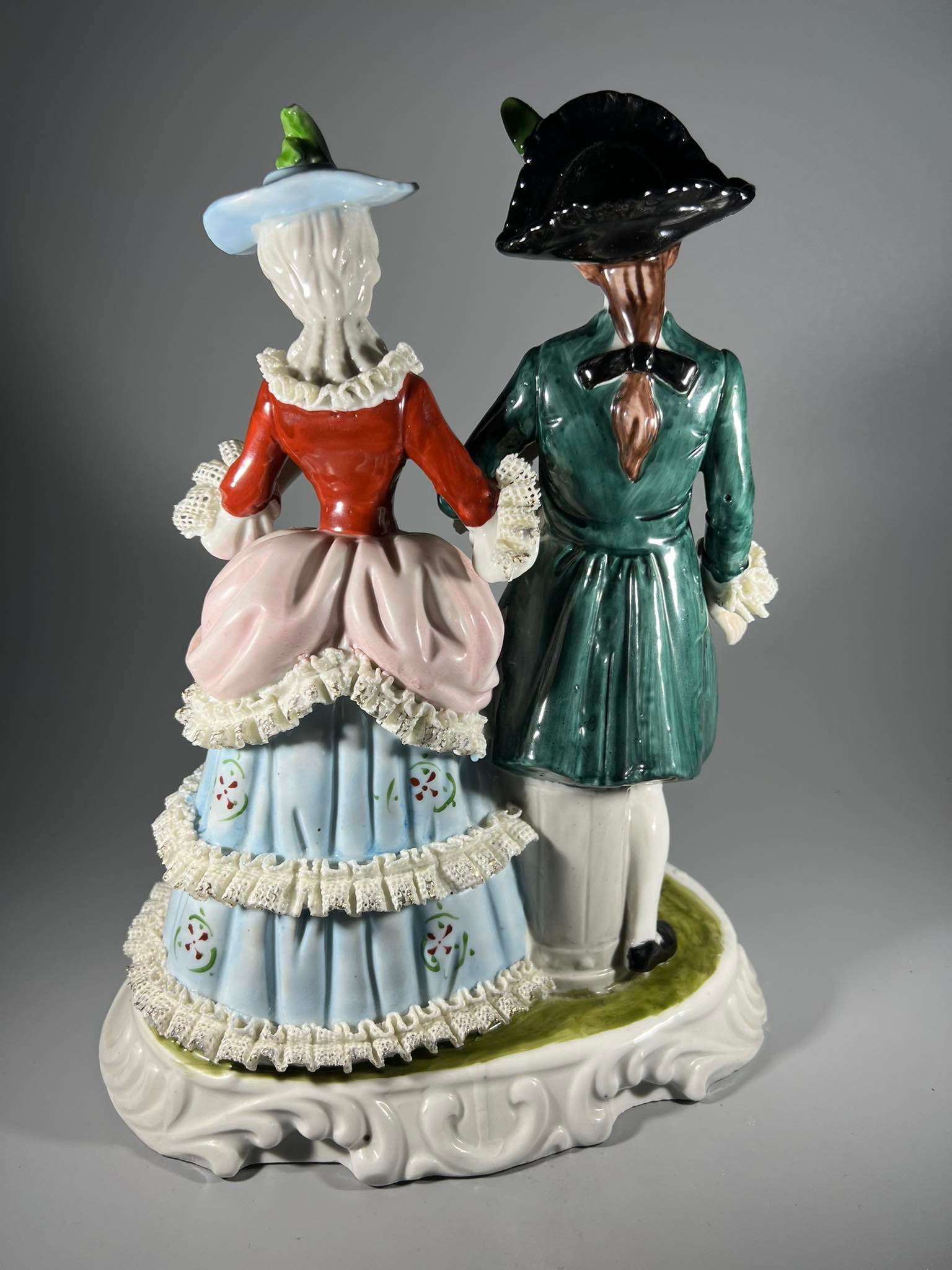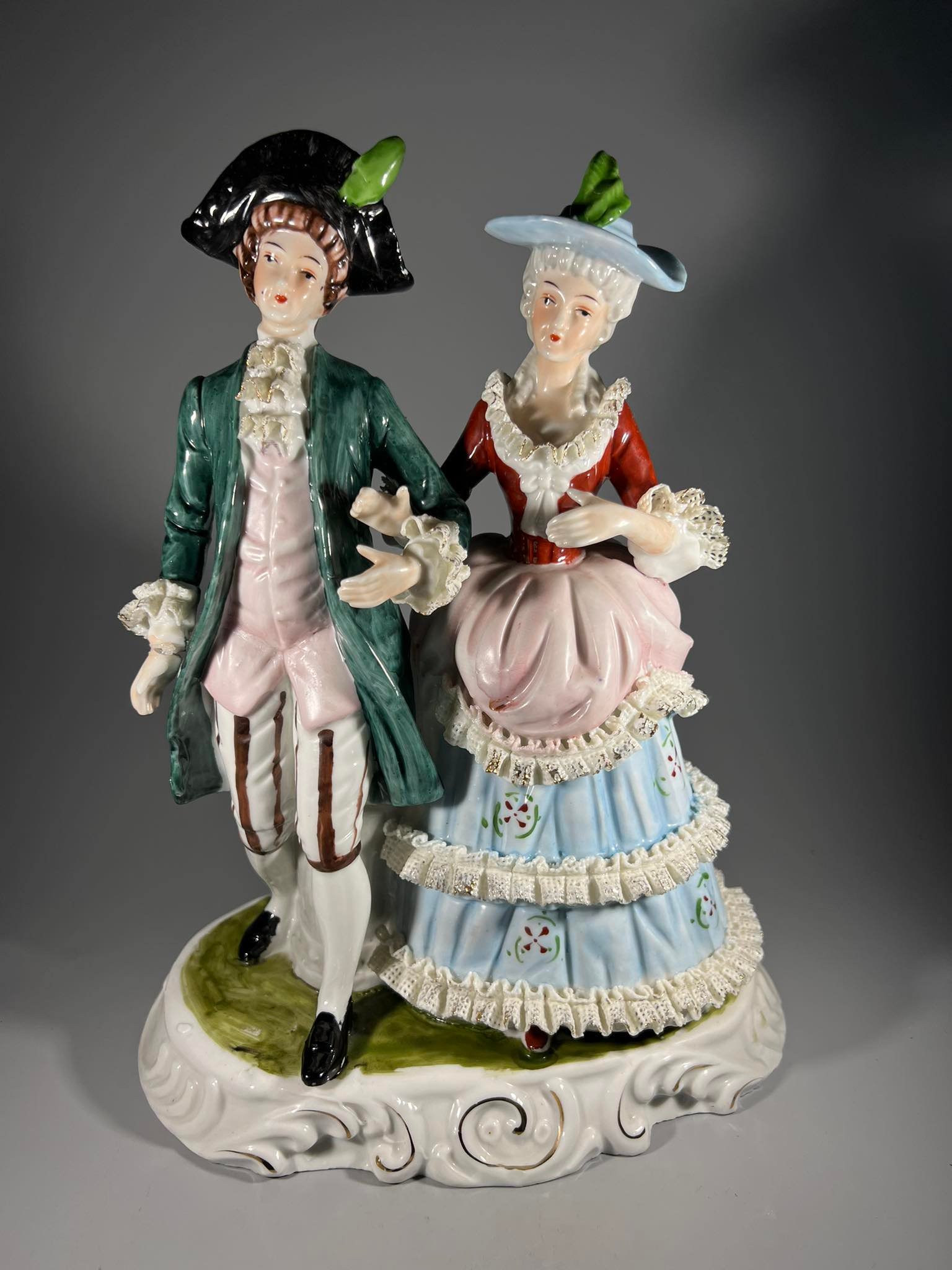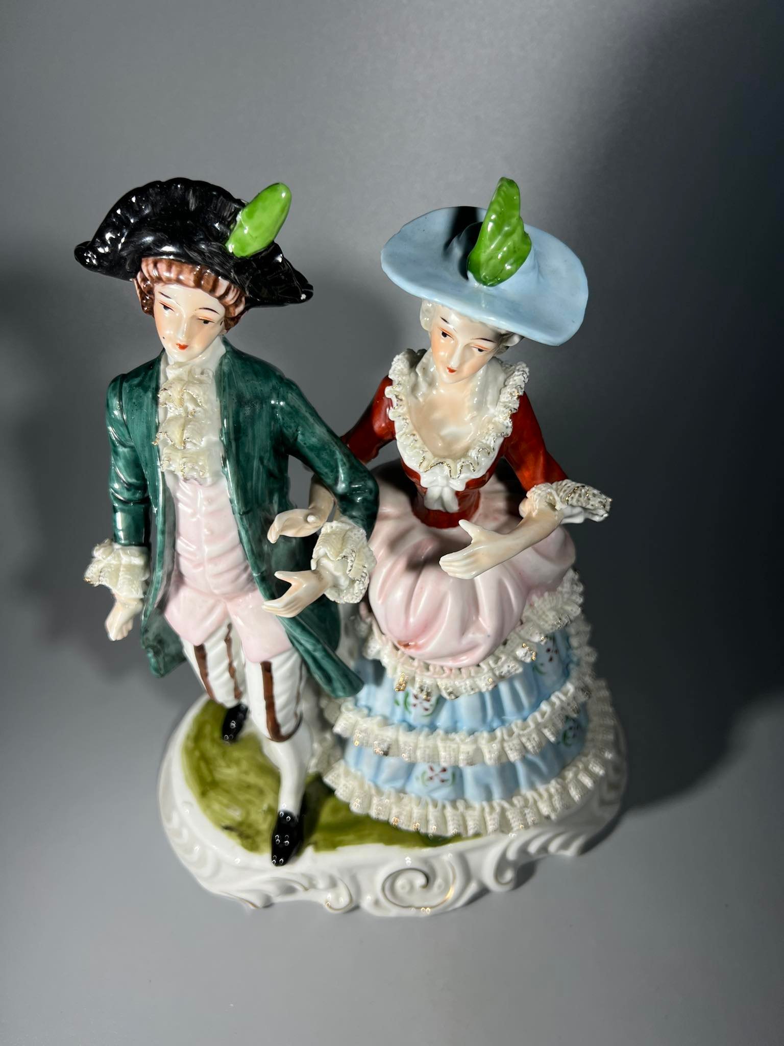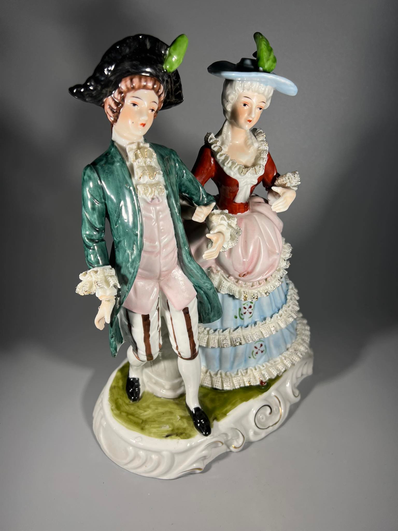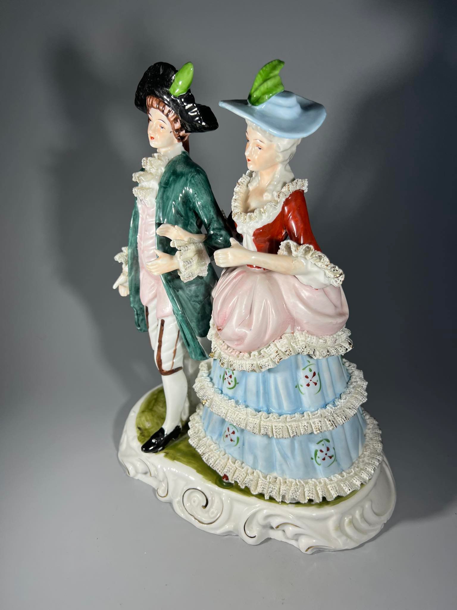 Statulėlė Pora, porcelianinė, didelė, Rokoko stiliaus. Aukštis 31 cm. Pagrindas 15 x 24 cm. Kaina 78