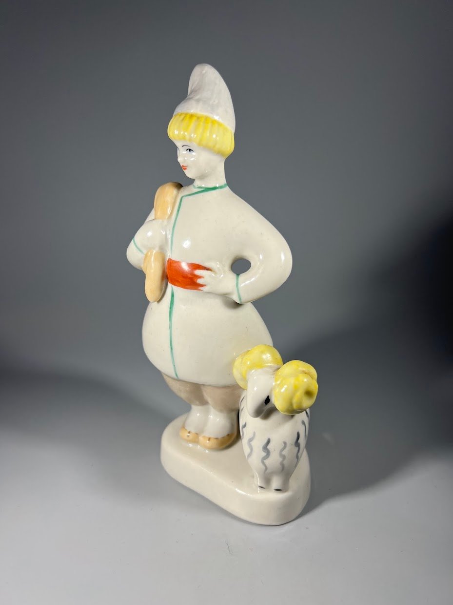 Statulėlė porcelianinė Berniukas su avinuku, tarybinė. 2 vnt. Kaina po 48