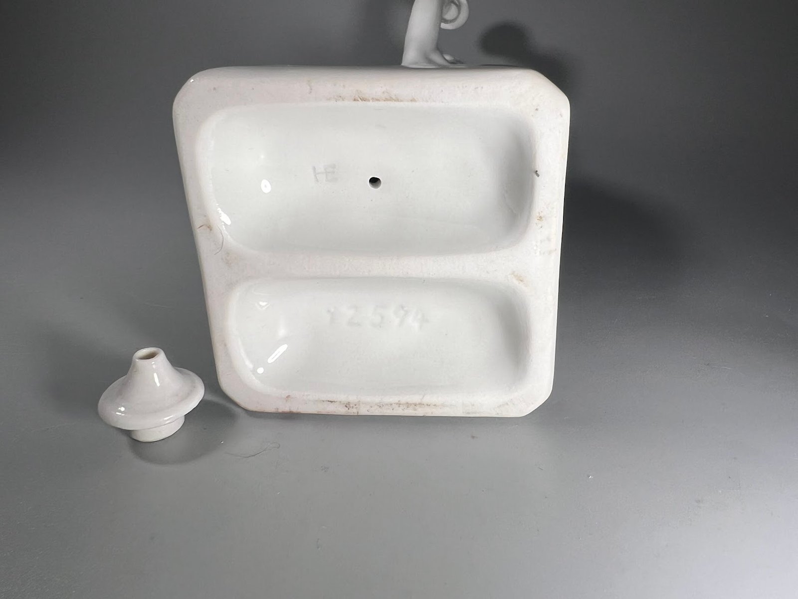 Identifikavimo numeris, tai statulėlės apačioje esantis skaičius 12594 yra šio konkretaus modelio identifikatorius, būdingas būtent 1936 m. suvenyrams. Modelio numeris 12594-šis įspaudas apačioje yra specifinis būtent šio dizaino identifikatorius, naudotas gamyklose prieš Antrąjį pasaulinį karąStatulėlės paskirtis: tai ne tik dekoratyvinė figūrėlė, bet ir aliejinė lempa. Nuotraukoje matoma atskira dalis yra deglo dangtelis, po kuriuo būdavo dedamas dagtis, o statulėlės ranka tarnavo kaip kuro talpa. Šios statulėlės dažniausiai buvo gaminamos Vokietijos porceliano manufaktūrose (pavyzdžiui, „Seltmann Weiden“ arba „Ilmenau“) specialiai olimpiados proga.