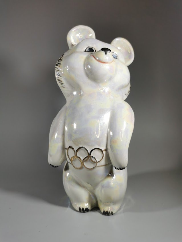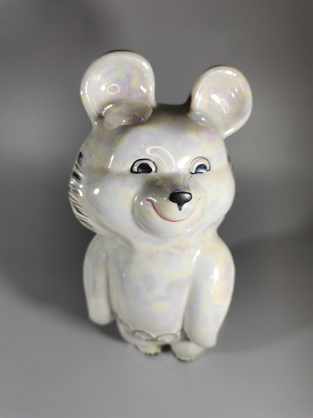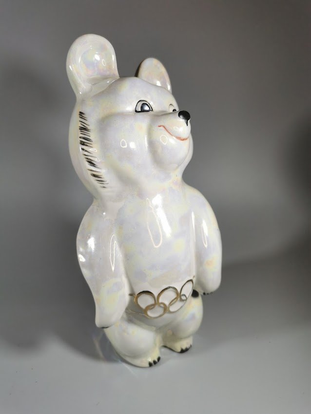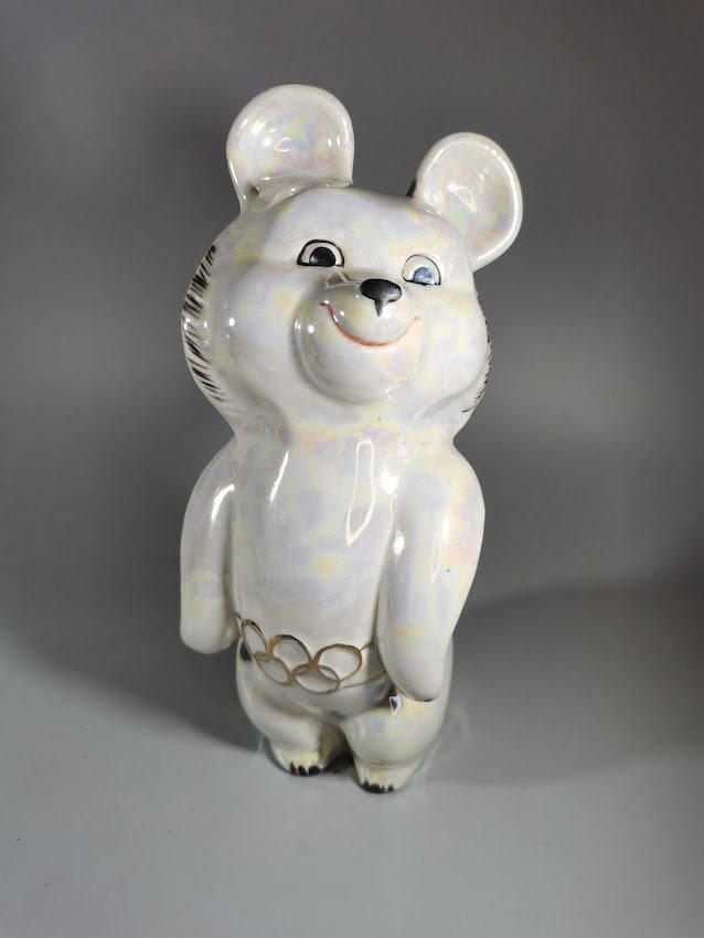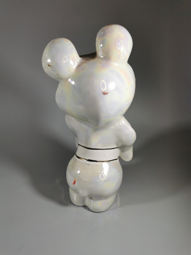Statulėlė porcelianinė Olimpinis meškiukas Miša. Aukštis 20 cm. Kaina 68