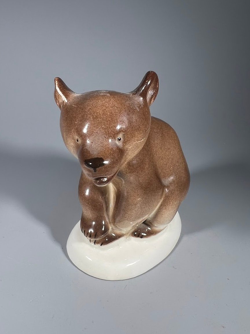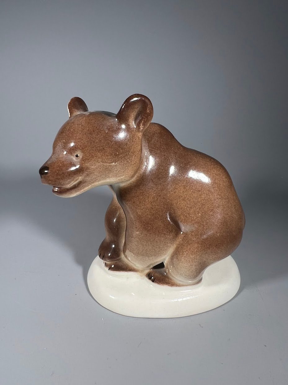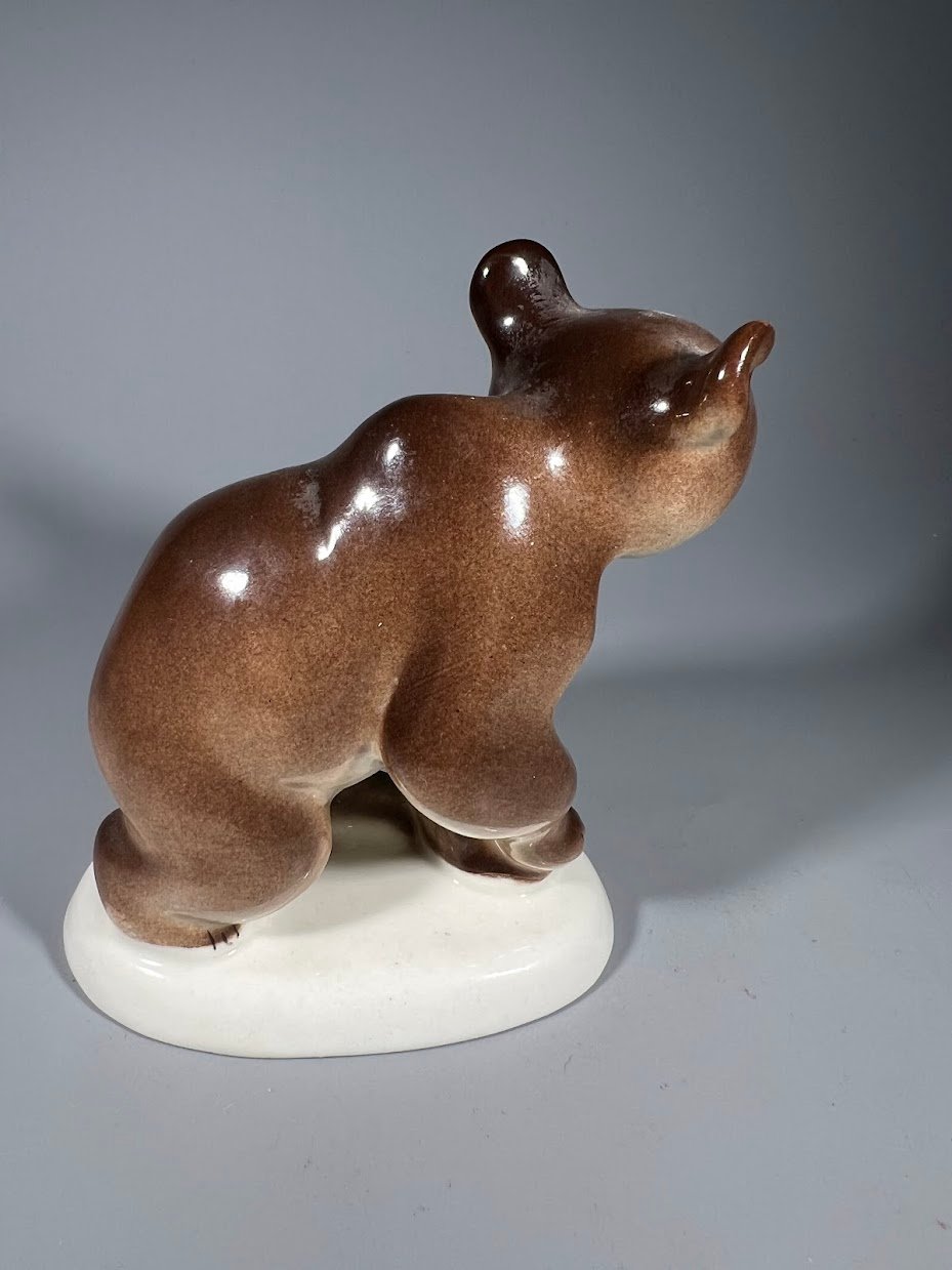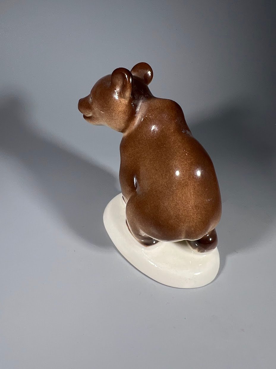 Statulėlė porcelianinė Rudasis lokys, meškiukas, sovietinė, tarybinių laikų, Leningrado porceliano fabrikas (LFZ), iki 1980 m. 2 vnt. Kaina po 33