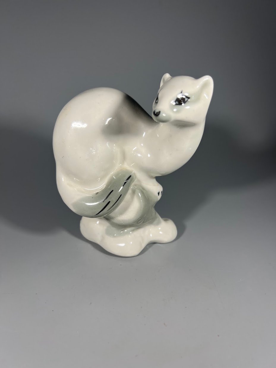 Statulėlė porcelianinė Šermuonėlis, žebenkštis sovietinė, tarybinių laikų, 1950–1970 m. Aukštis 13 cm. Kaina 23