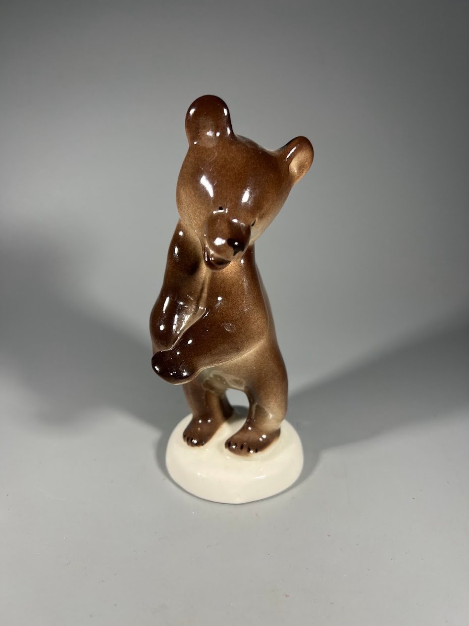 Statulėlė porcelianinė Šokantis lokys, meškiukas, sovietinė, tarybinių laikų, Leningrado porceliano fabrikas (LFZ), iki 1980 m. Kaina 33