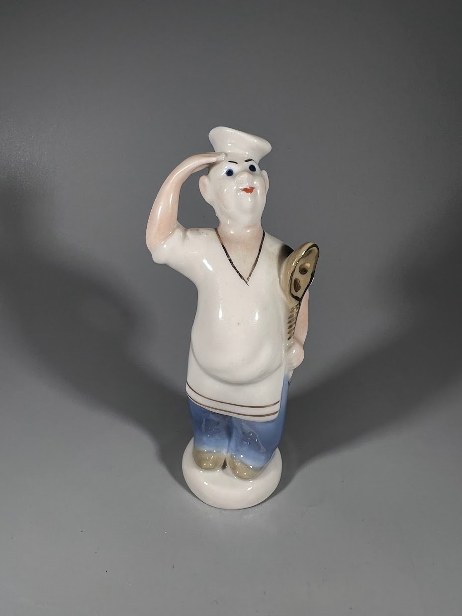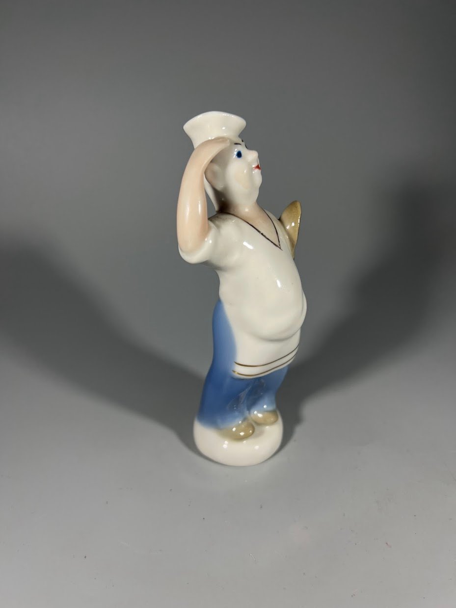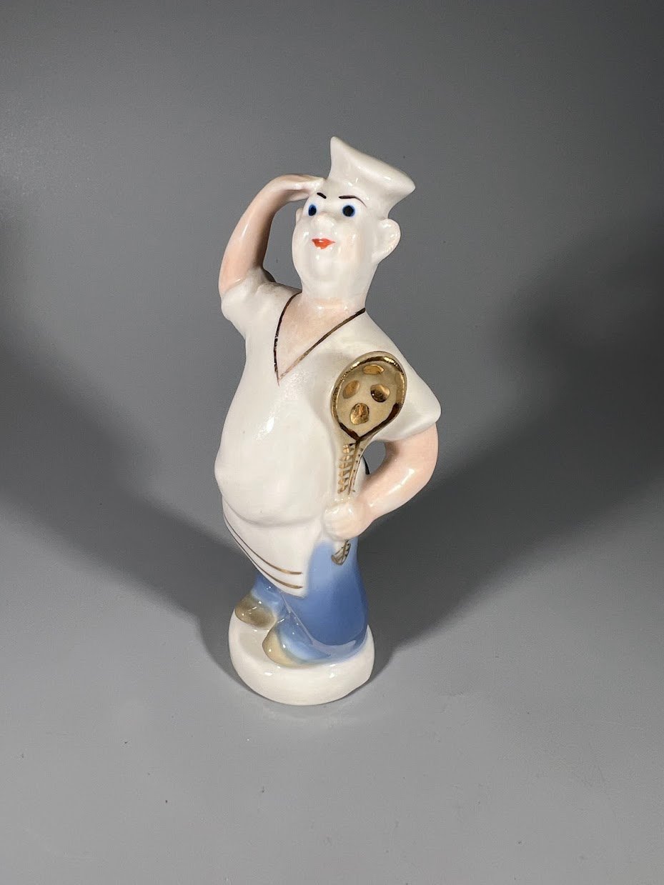 Statulėlė porcelianinė Virėjas, laivo kokas, sovietinė, tarybinių laikų, Polonės meninės keramikos gamykla, ZHK, 1950–1960 m. Aukštis 13 cm. Kaina 38