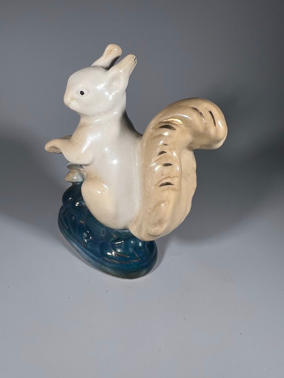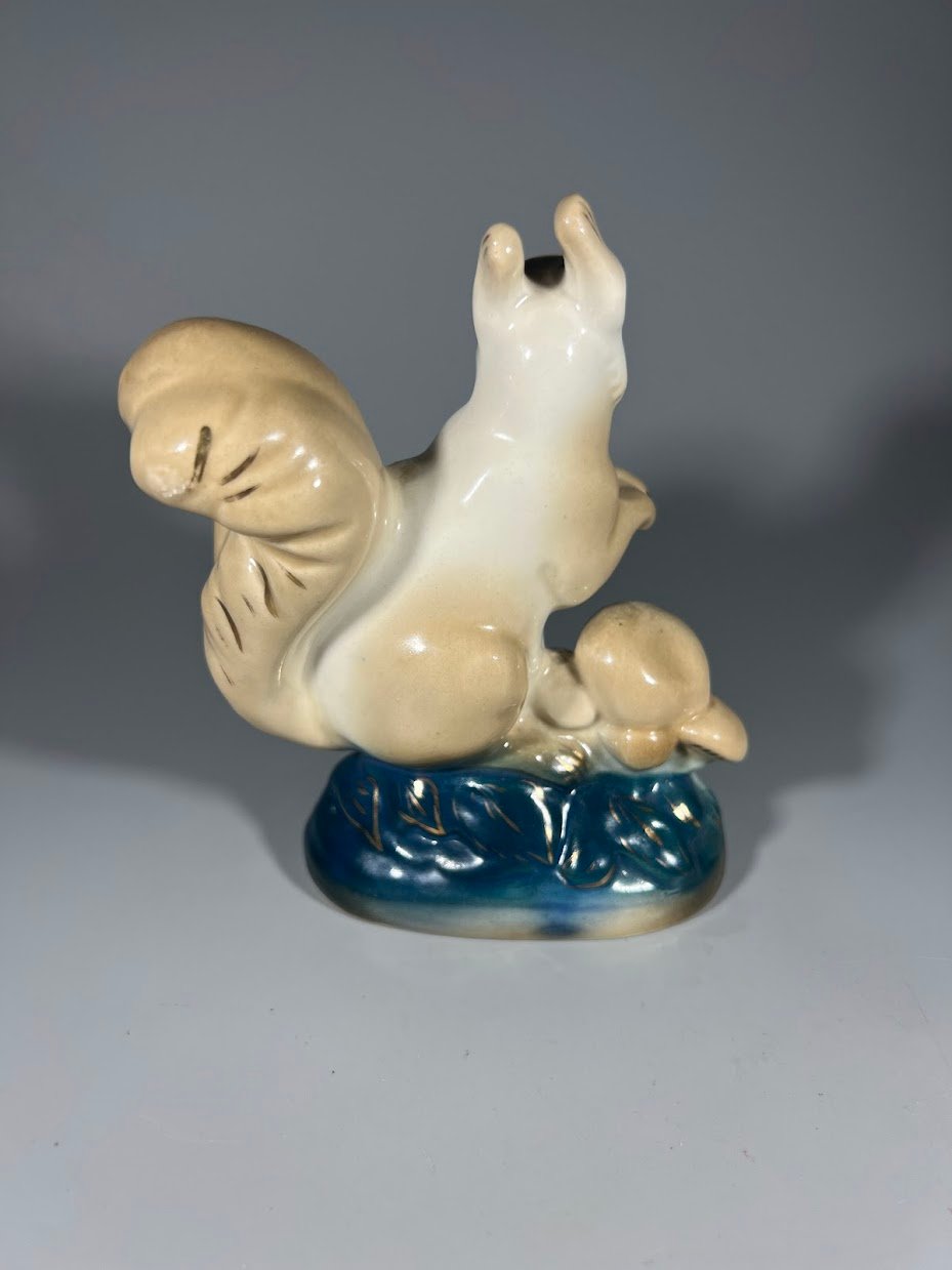 Statulėlė porcelianinė Voverė su grybais, sovietinė, tarybinių laikų, ГЗ, Gželio gamykla. 1954–1960 m. Kaina 36