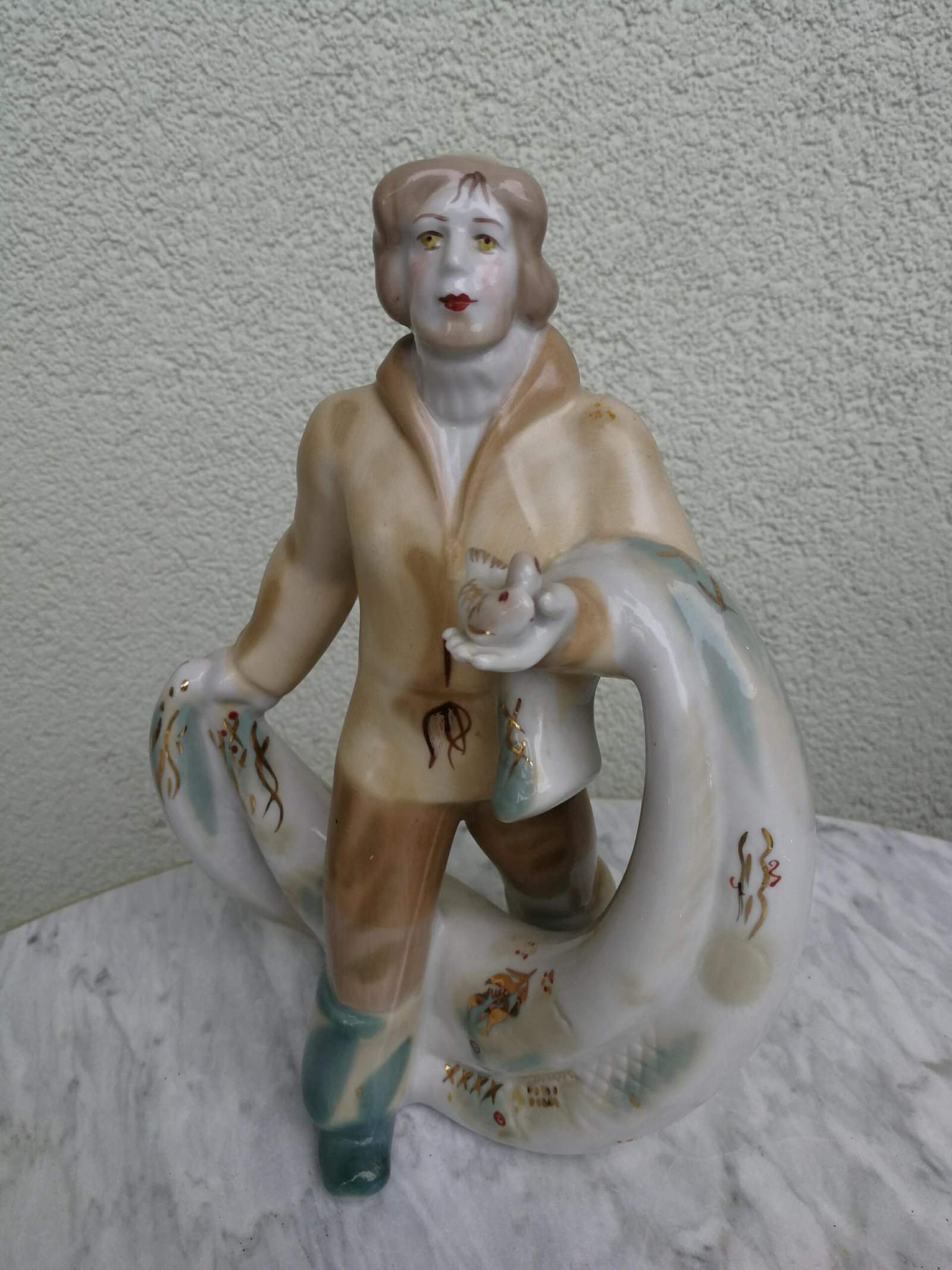 Statulėlė porcelianinė Žvejys, tarybinių laikų. Aukštis 22 cm. Kaina 53