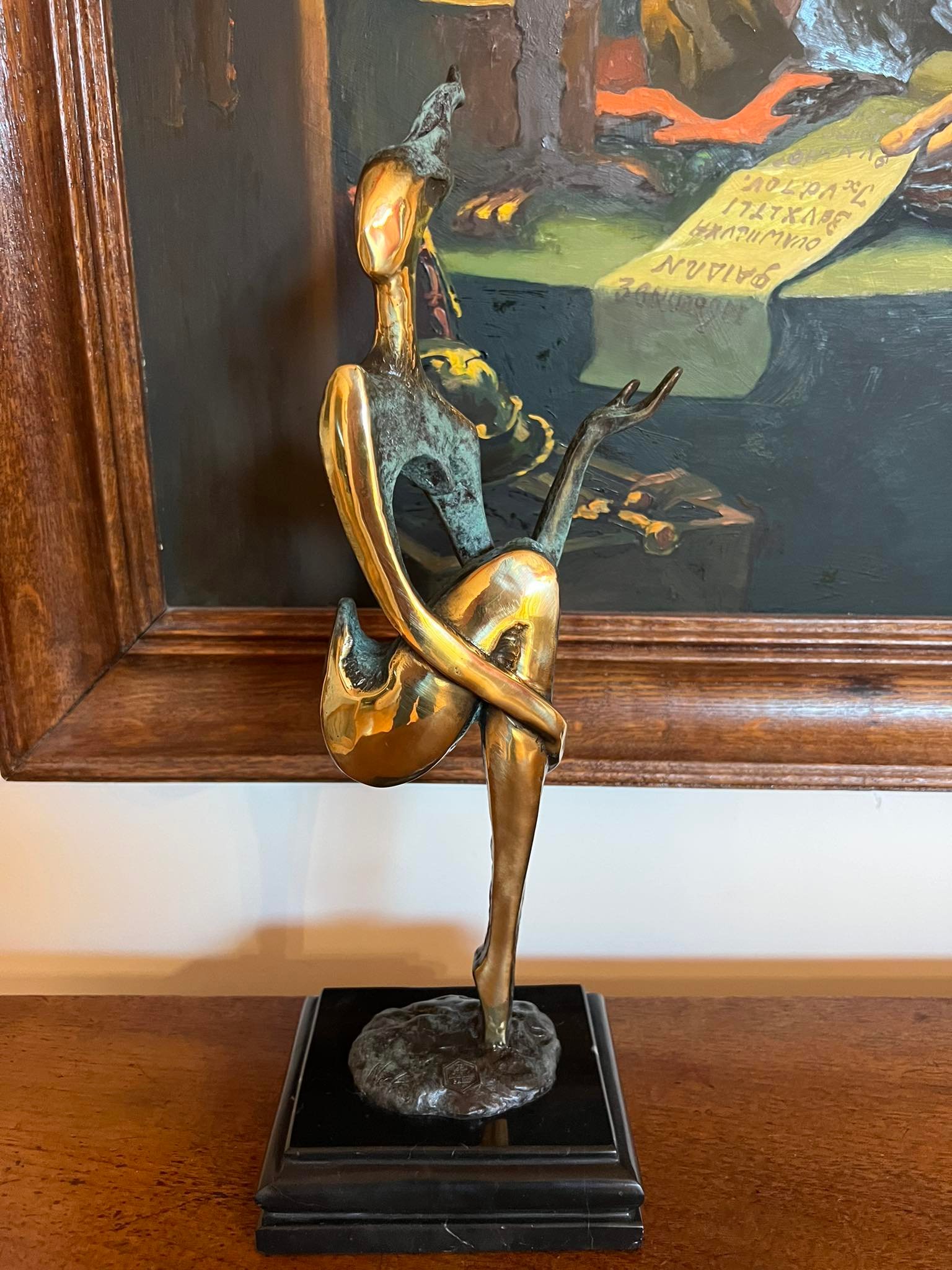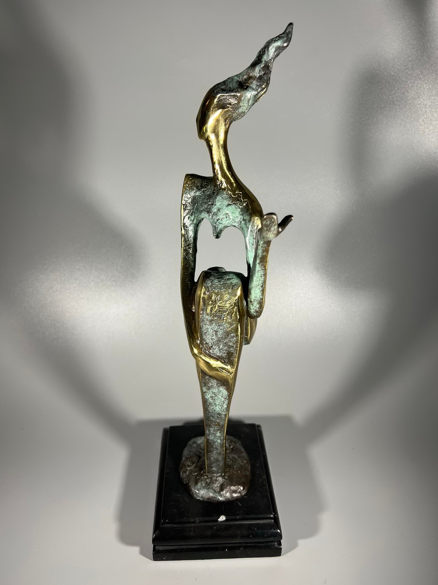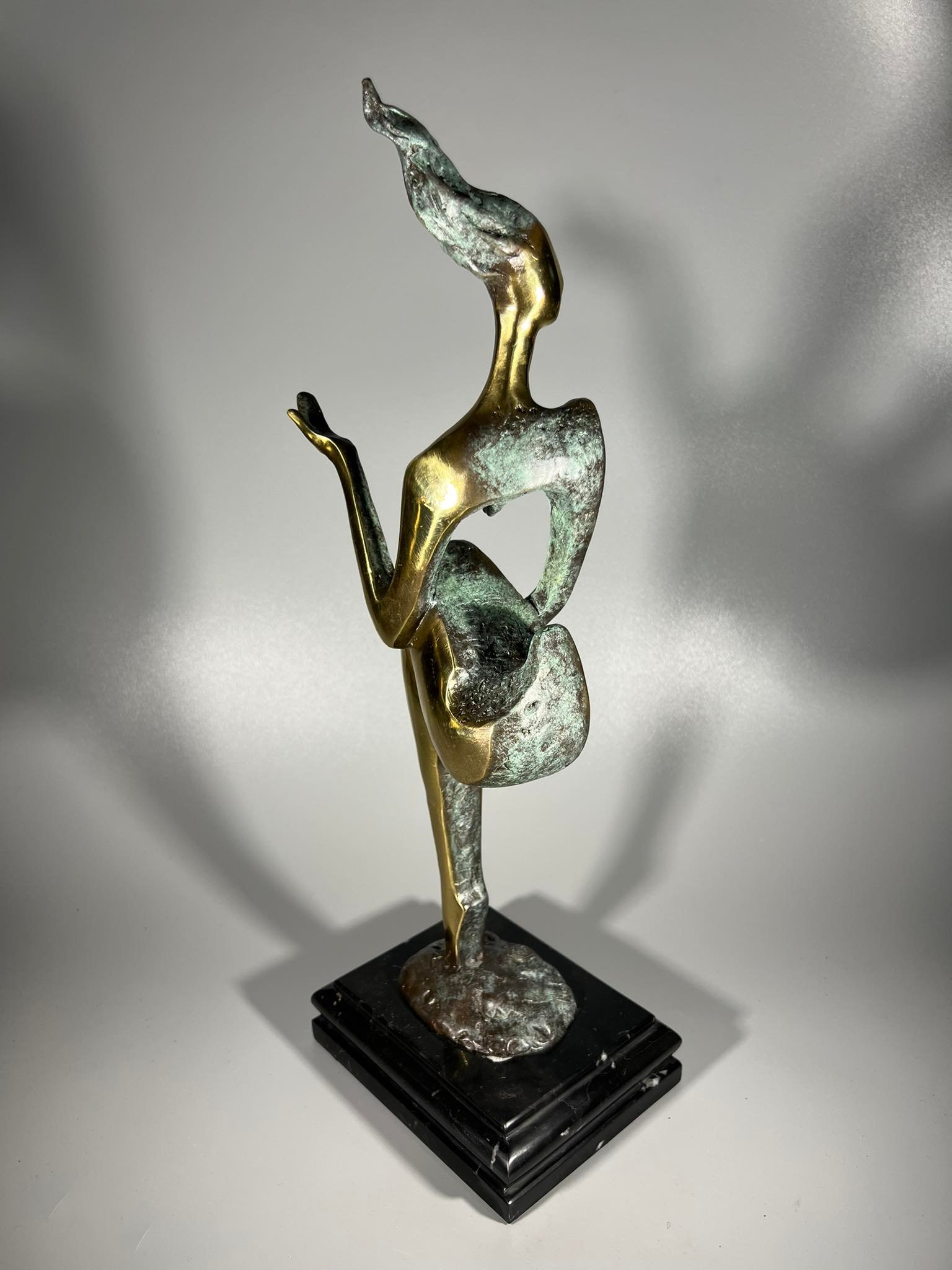 Šis modernus moters portretas, pagamintas iš bronzos , su menininko M. Nick parašu ir fabriko ženklu, pasižymi sumažintomis formomis ir patraukliu kontrastu. Rodomas abstraktus moters aktas, statula dedama ant tamsaus marmurinio pagrindo, kuris meistriškai pabrėžia dekoratyvinį motyvą. 41 centimetrų aukščio statula yra labai subtiliai sukurta, ypač galūnių srityje, o dėl fragmentiško dizaino ji atrodo itin subtili ir kartu minimalistinė. Lygiai poliruotos aukso spalvos bronzinės detalės susilieja su stiprios struktūros paviršiais, turinčiais žalią patiną. Gautas spalvų kontrastas įtikinamai gražus. Paprastą, moterišką dizainą ypač patobulina tvirtas dviejų atspalvių bronzinės skulptūros dizainas.