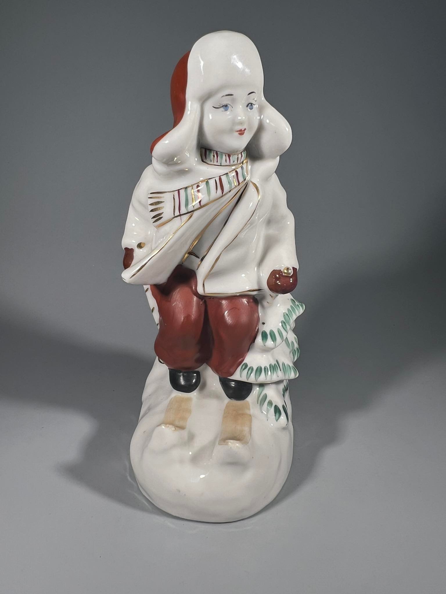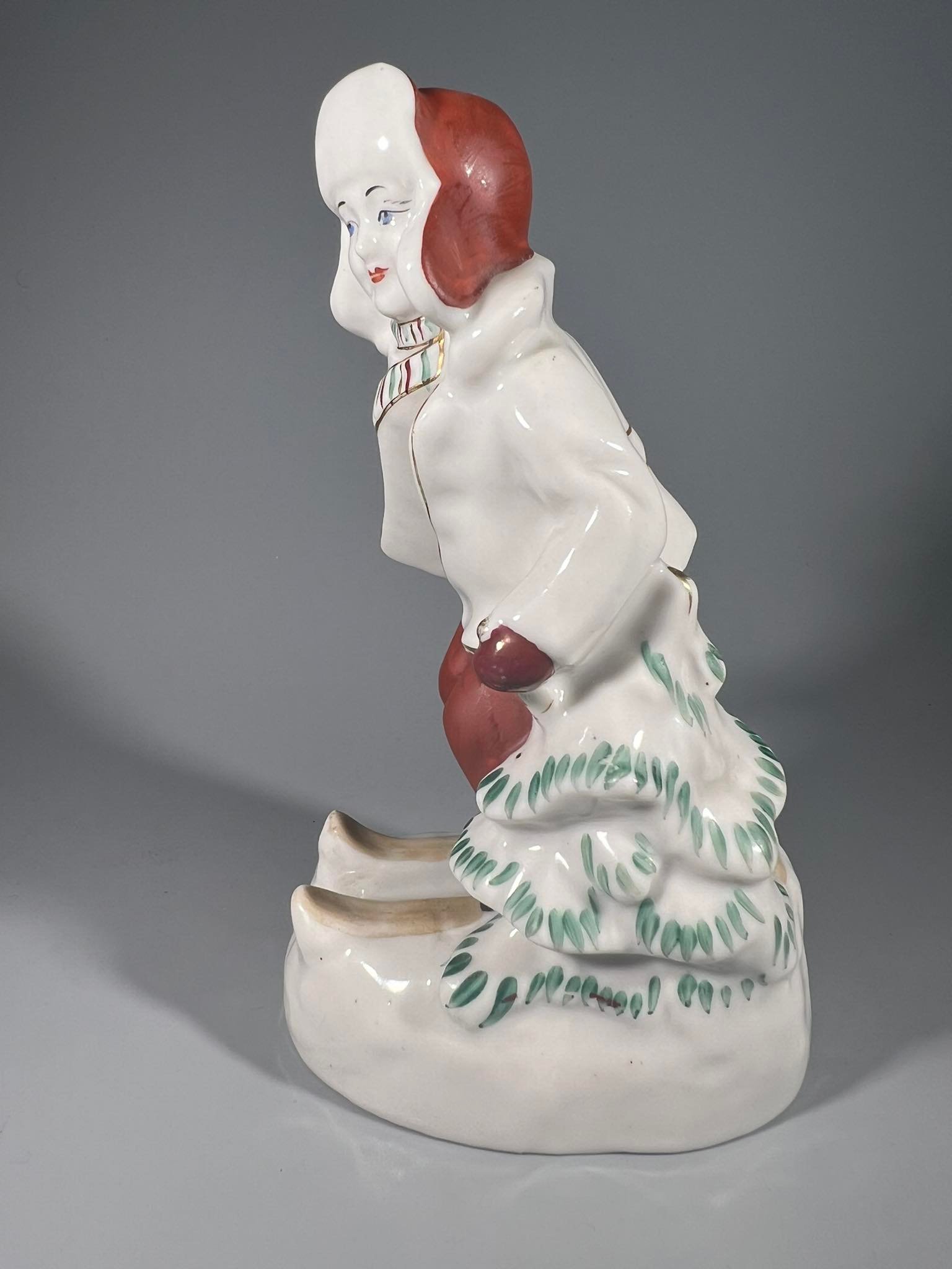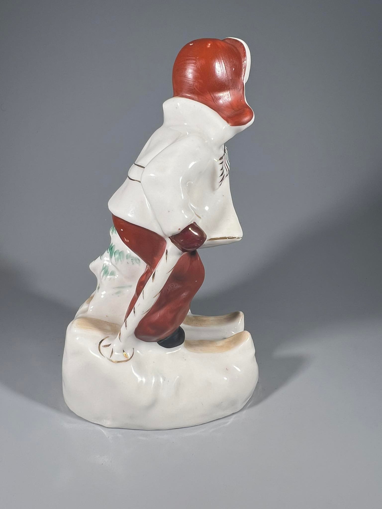 Statulėlė Slidininkas porcelianinė, sovietinė, tarybinių laikų. Fabrikas Polonne ZHK. Полонский завод художественной керамики (Полонне ЗХК). Aukštis 16 cm. Kaina 53