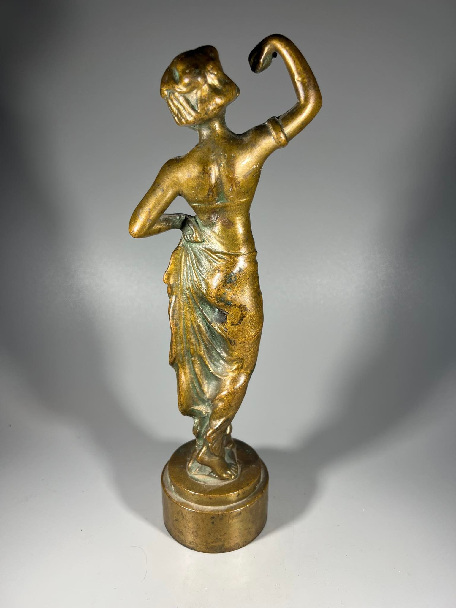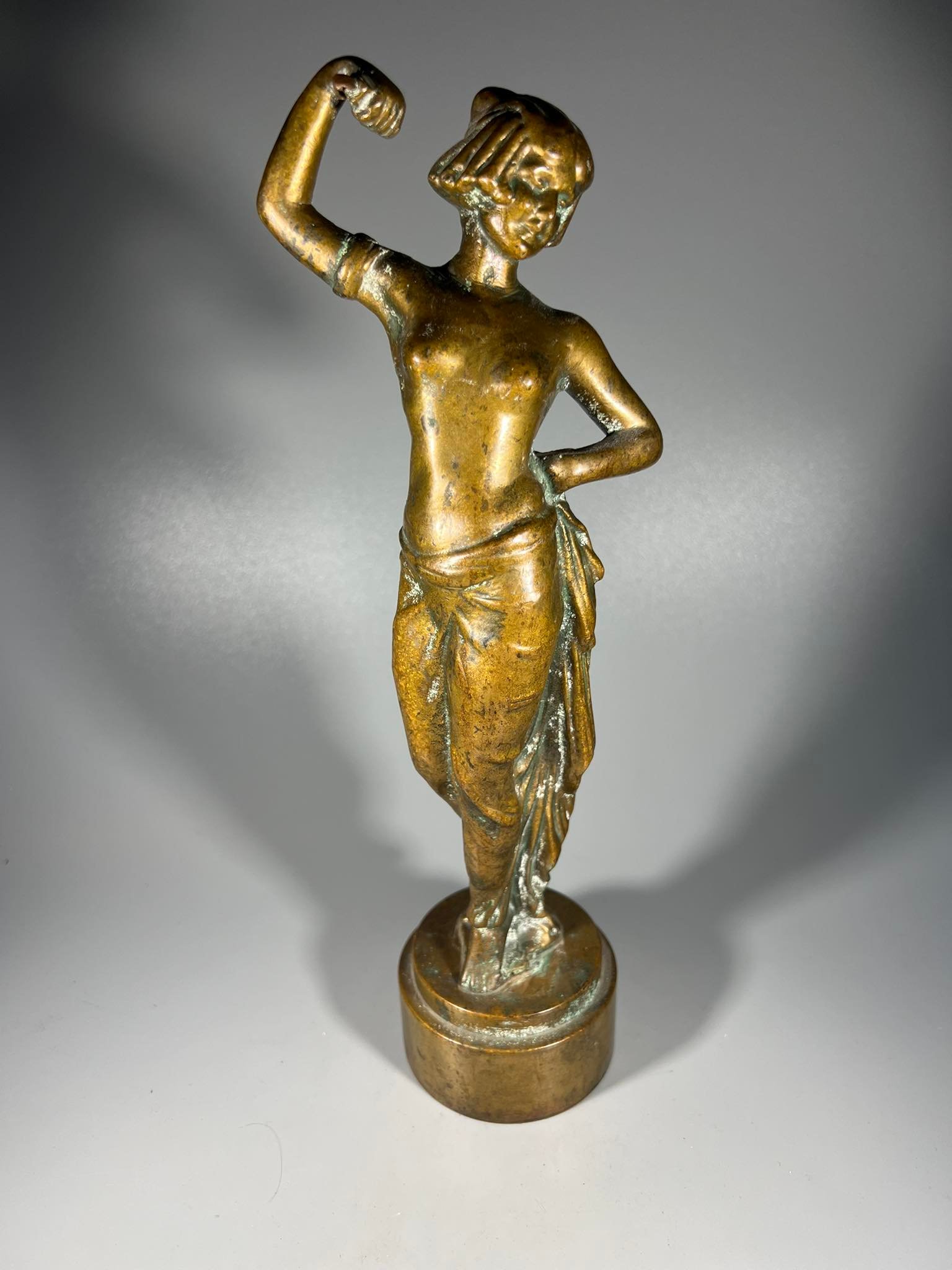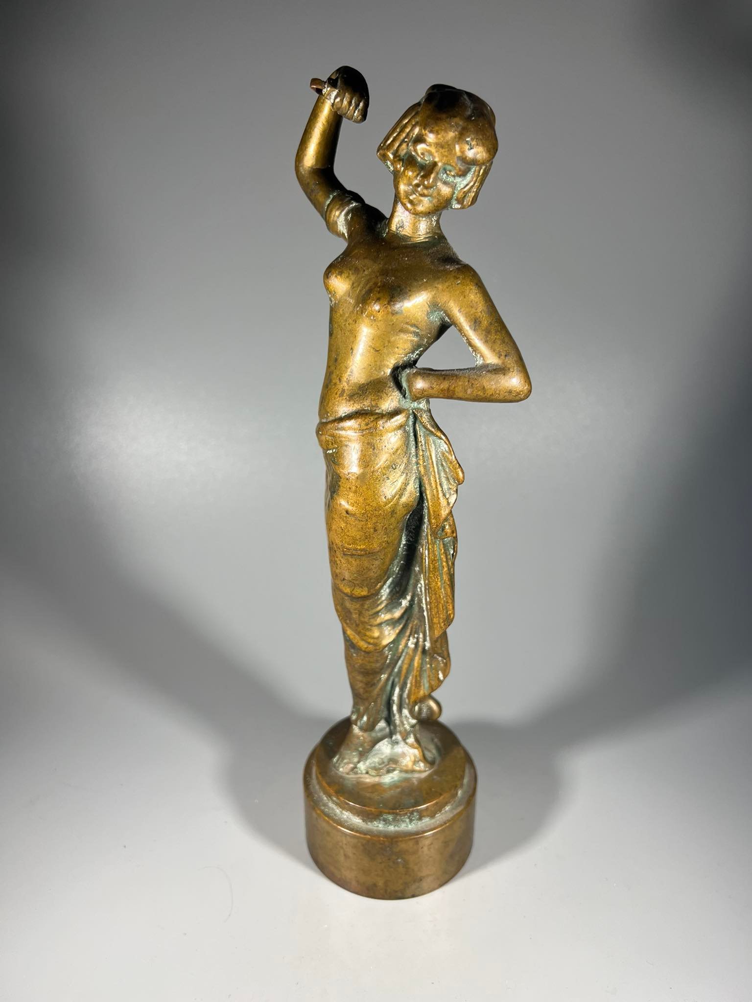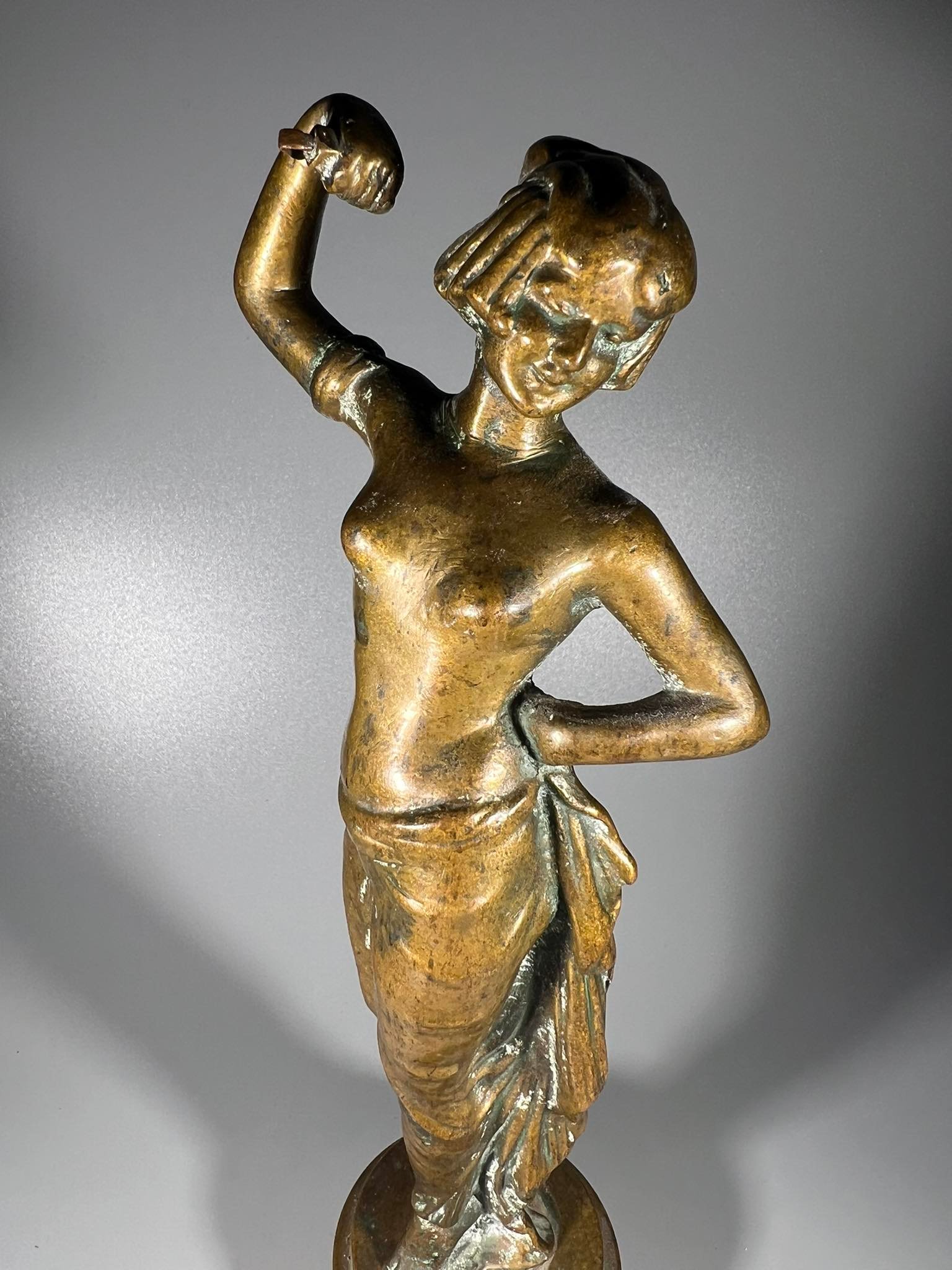 Statulėlė Šokanti moteris, bronzinė, antikvarinė. Aukštis 29 cm. Svoris 2,5 kg. Kaina 132