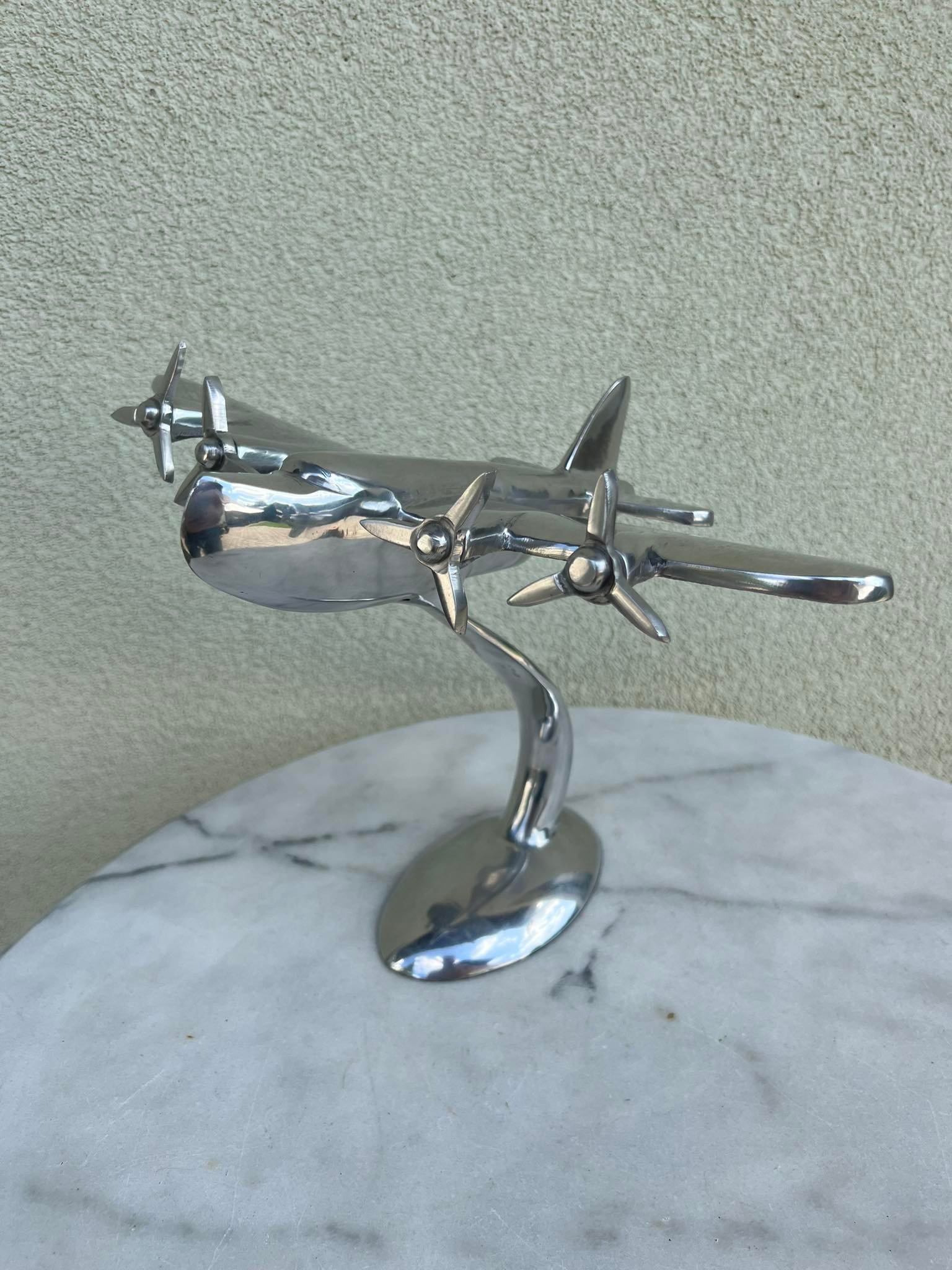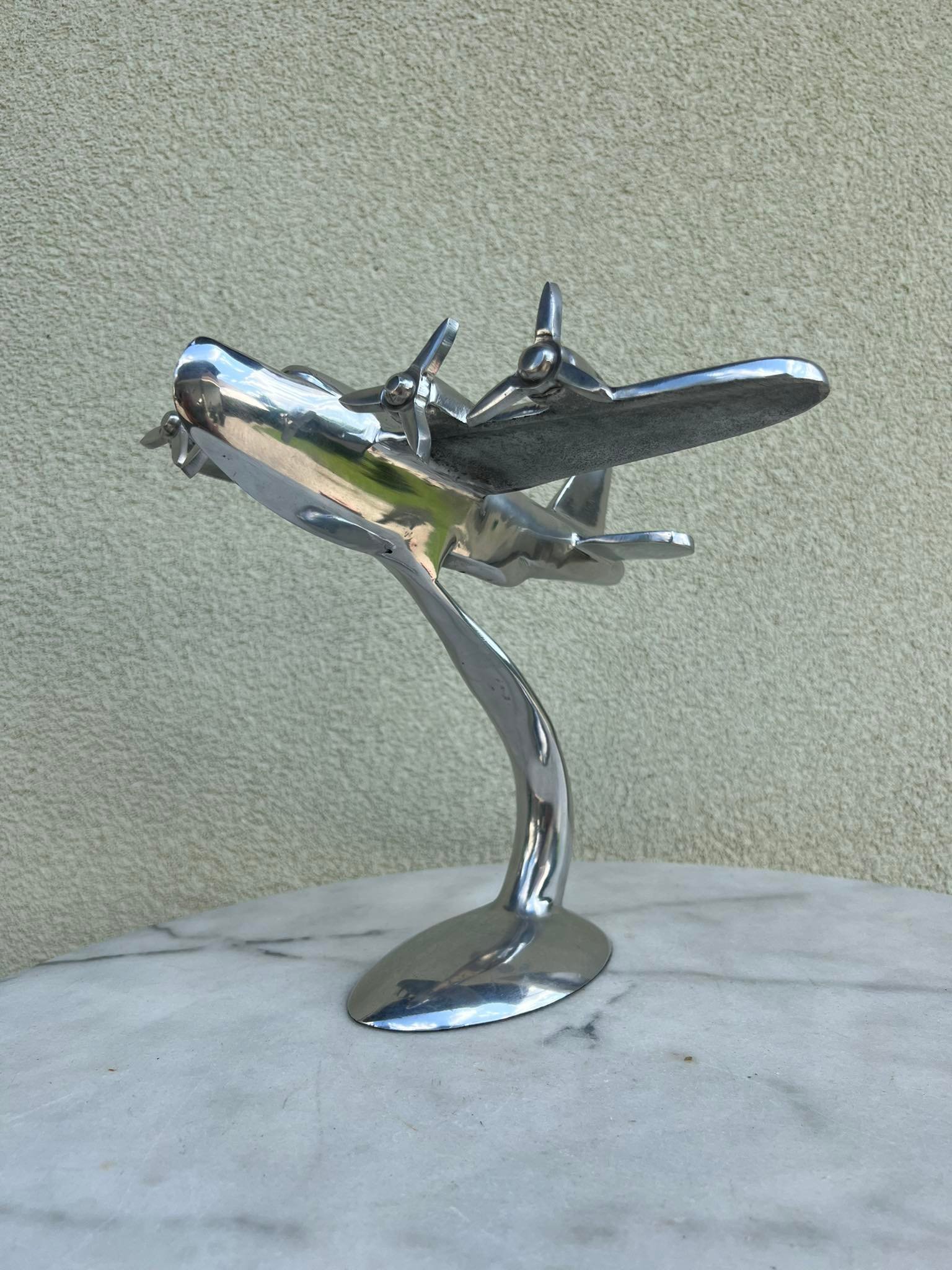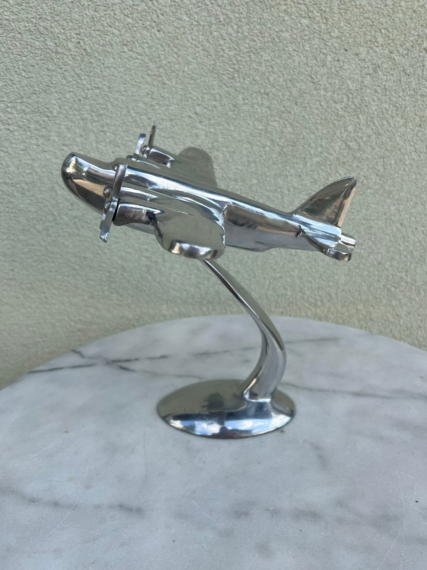 Statulėlė, stalo puošmena, lėktuvo ant stovo dekoracija iš lieto aliuminio, Art Deco stiliaus. Kaina 93