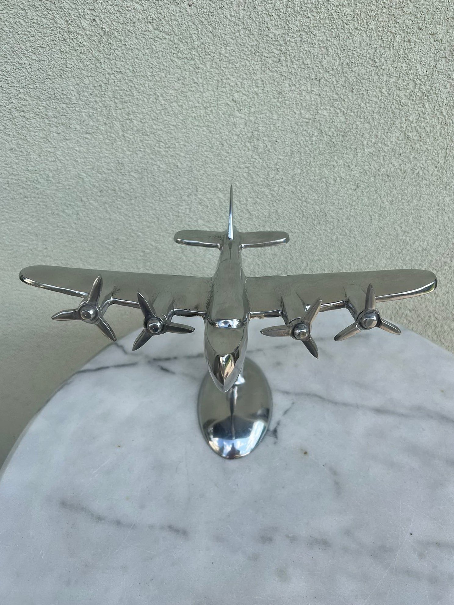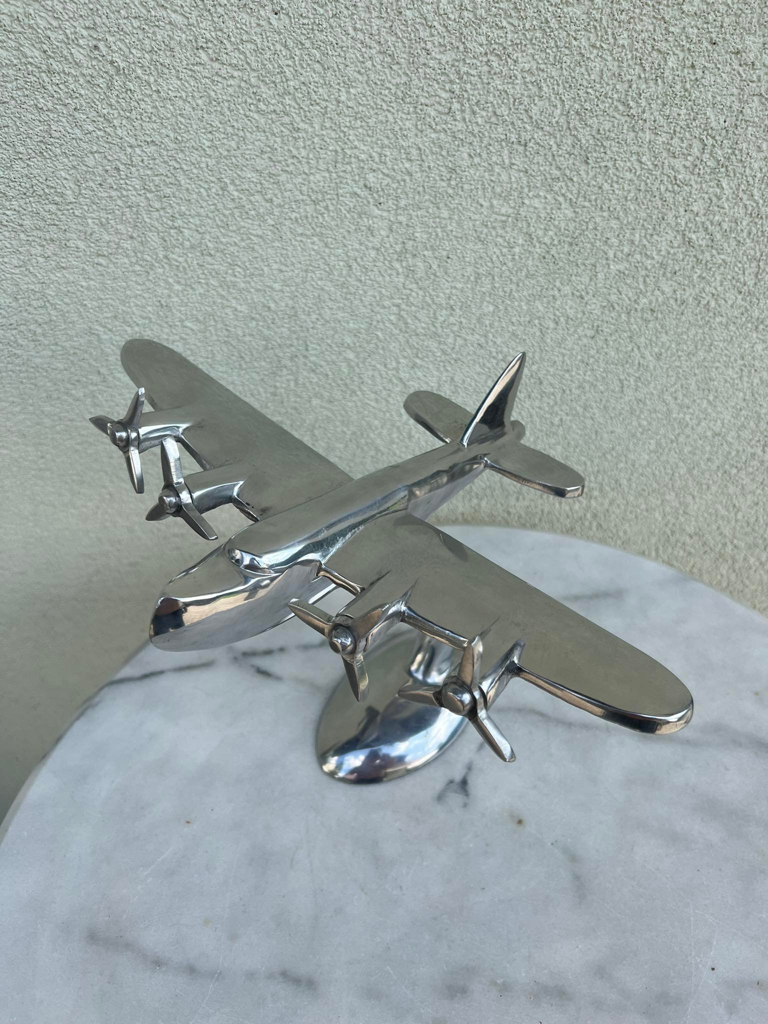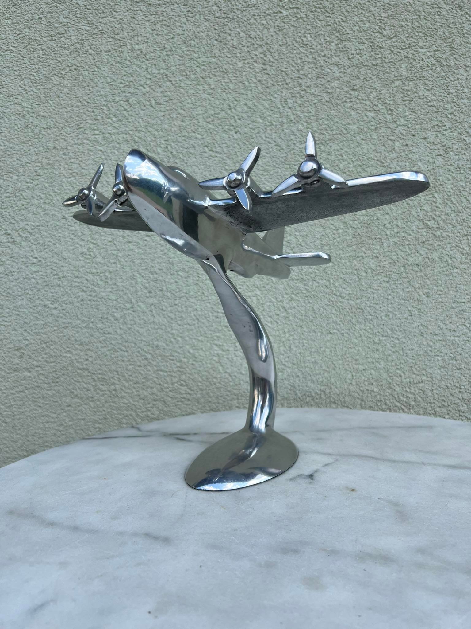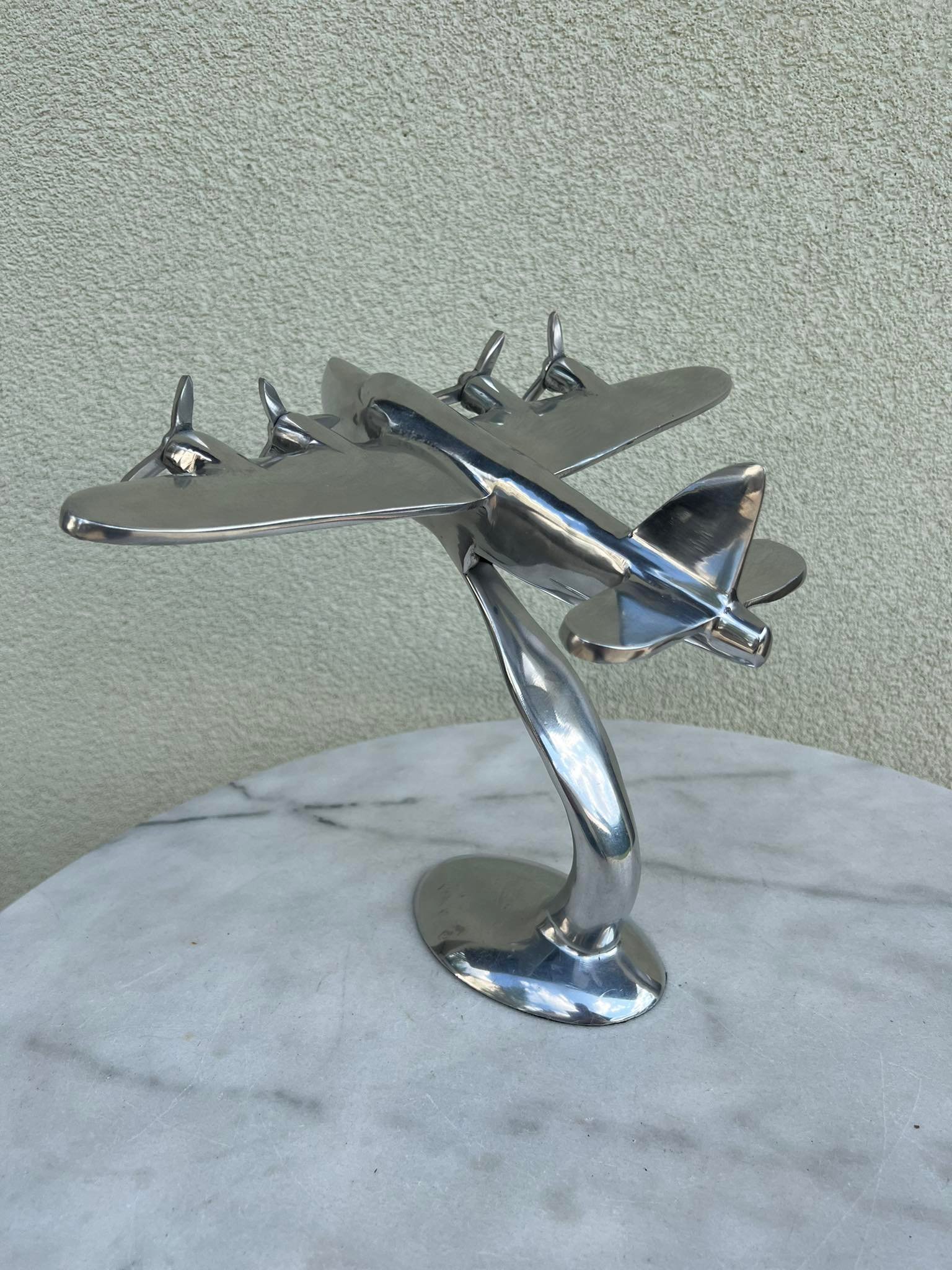 Statulėlė, stalo puošmena, lėktuvo ant stovo dekoracija iš lieto aliuminio, Art Deco stiliaus. Kaina 93