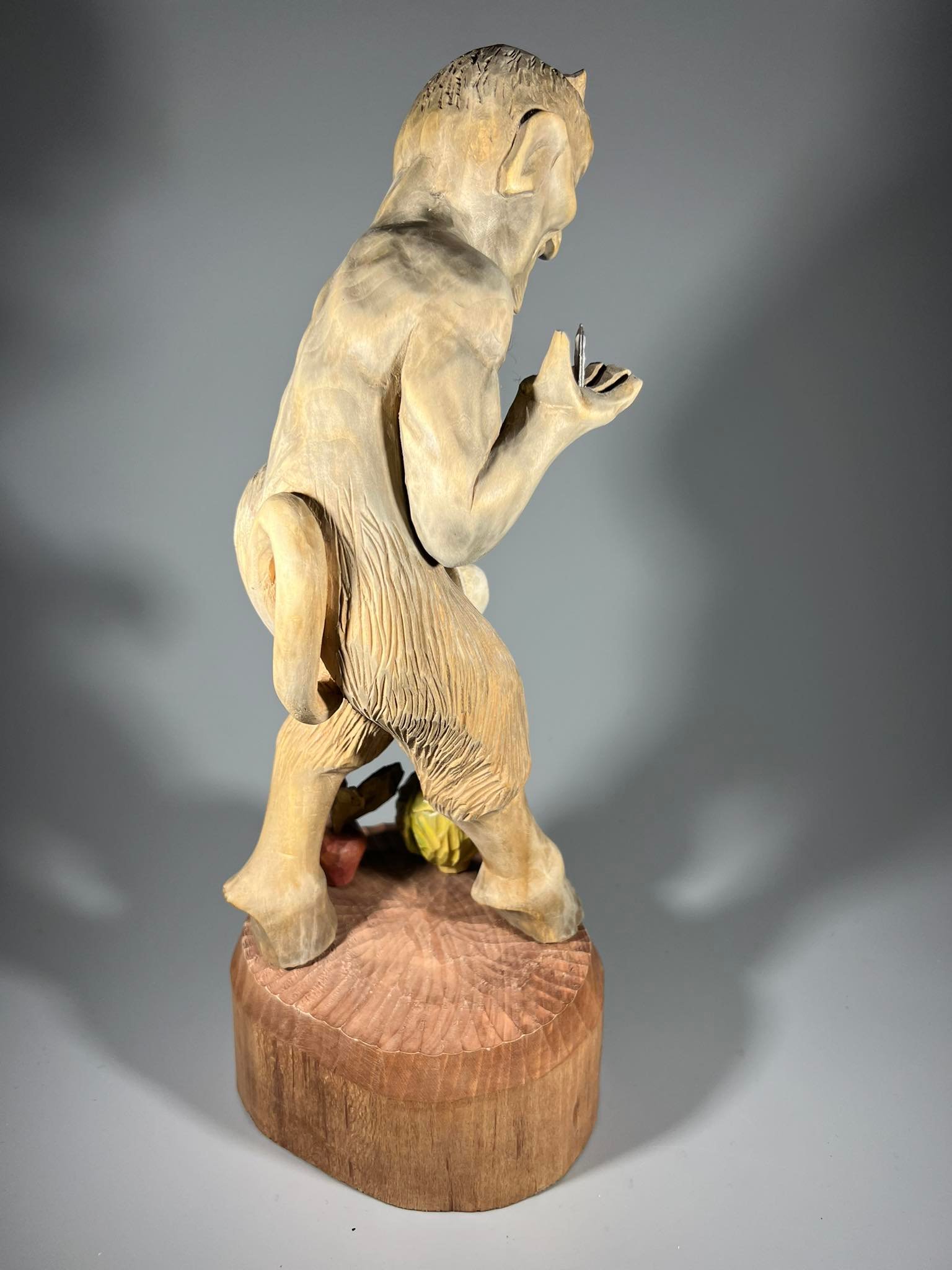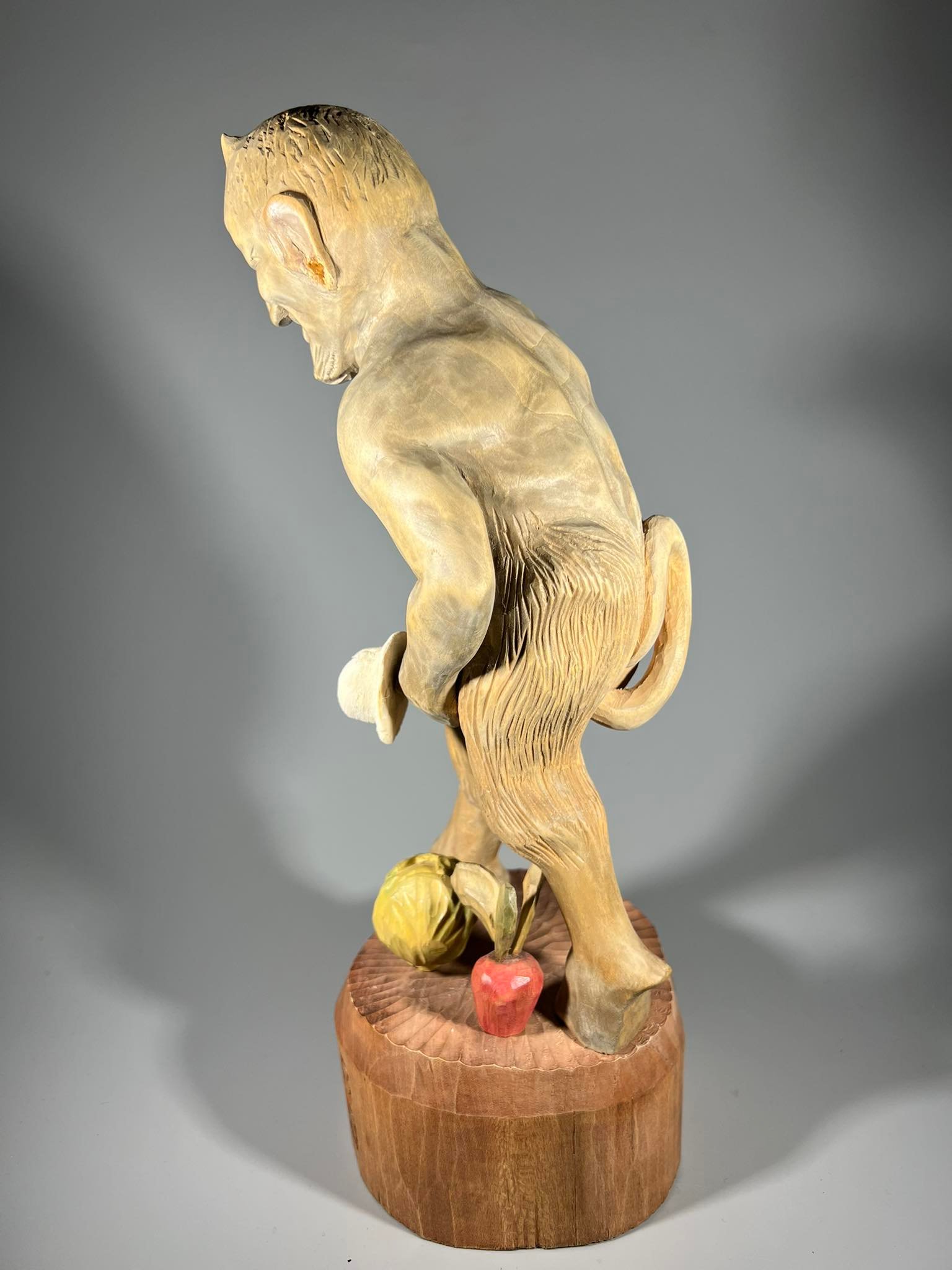 Statulėlė, žvakidė Velnias, per kopūstus per batvinius, medinė, drožinėta, lietuviška. Kaina 168