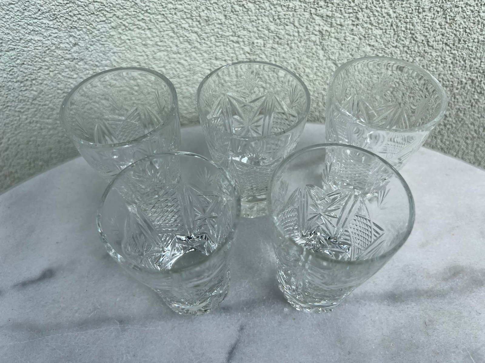Stiklinė, taurė krištolinė, tarybinių laikų. Talpa 120 ml. Aukštis 10 cm. 4 vnt. Kaina po 4