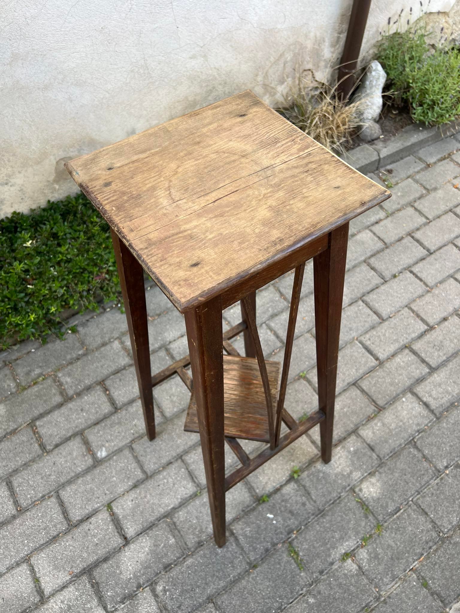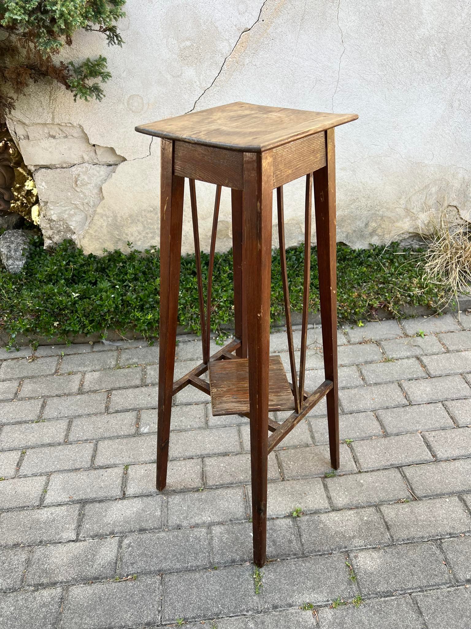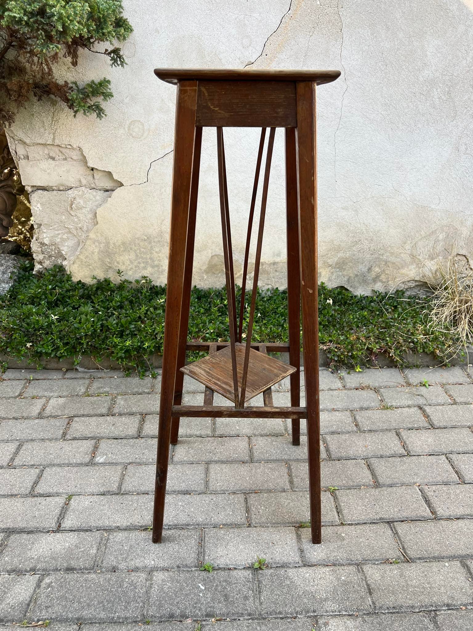 Stovelis antikvarinis, medinis, tvirtas. Aukštis 86, stalviršis 26 x 26 cm. Kaina 73