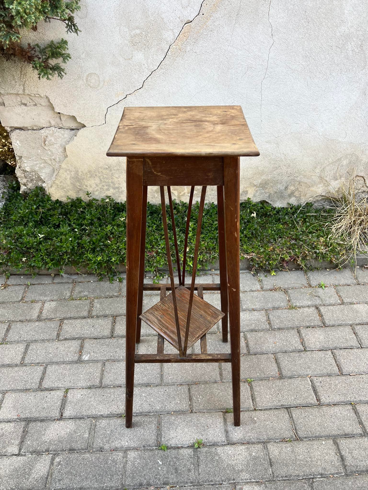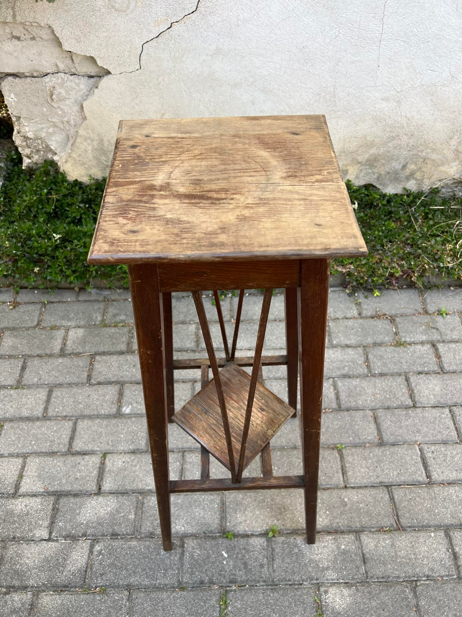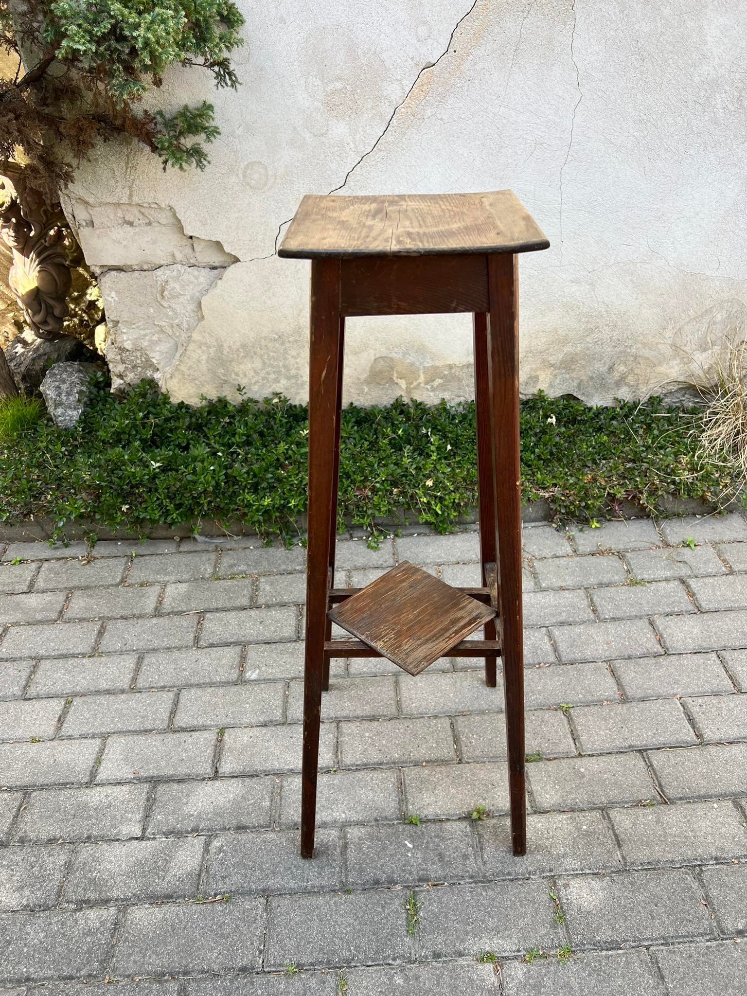 Stovelis antikvarinis, medinis, tvirtas. Aukštis 86, stalviršis 26 x 26 cm. Kaina 73