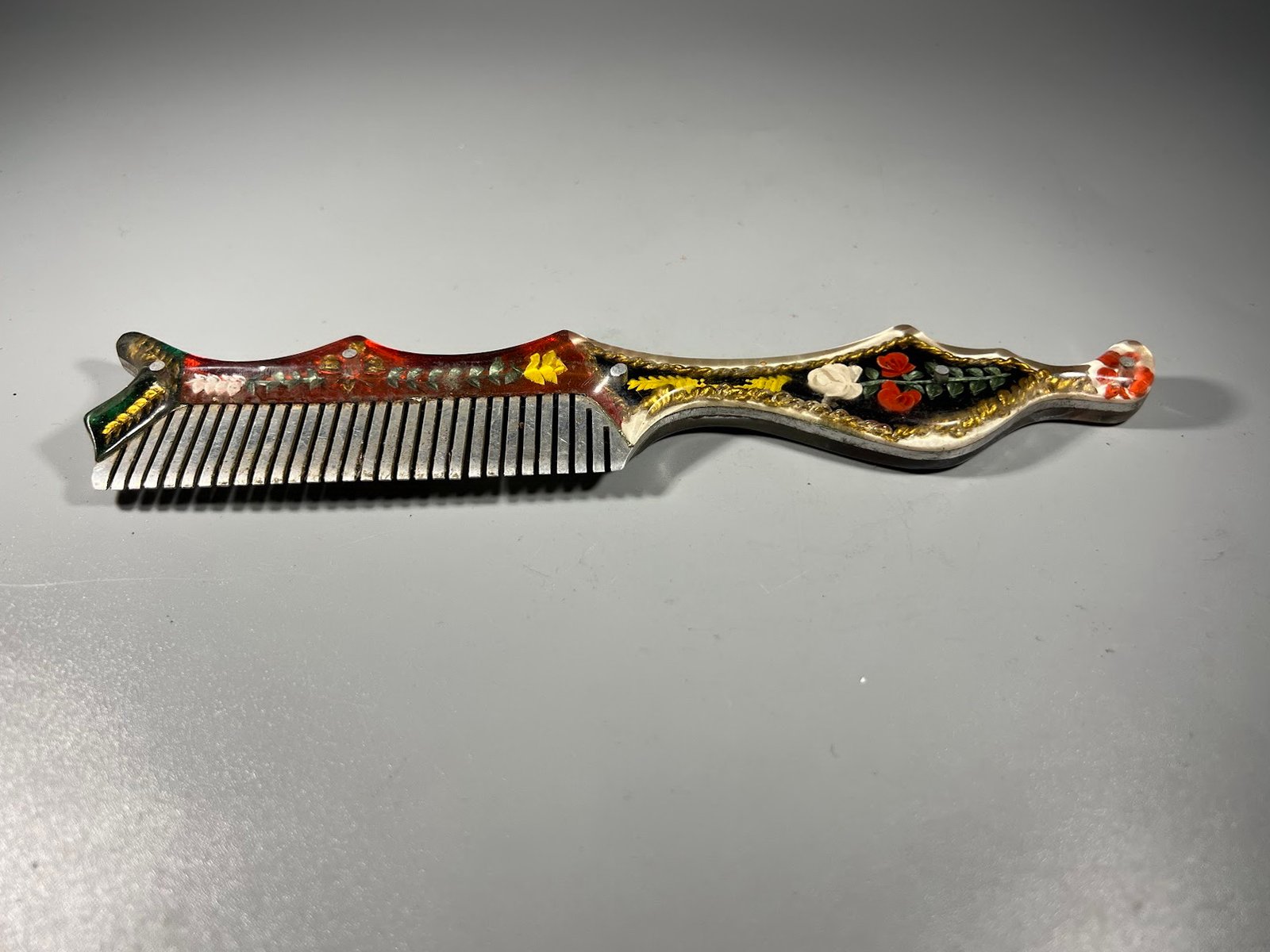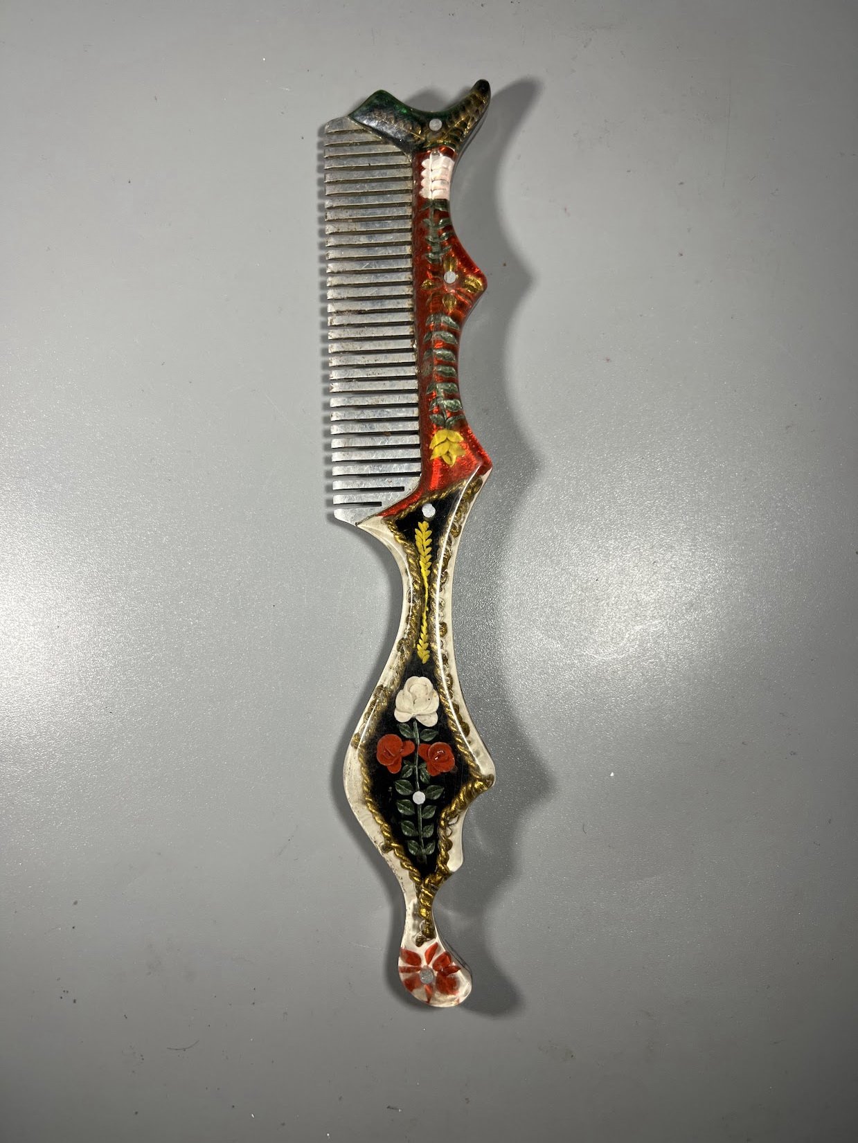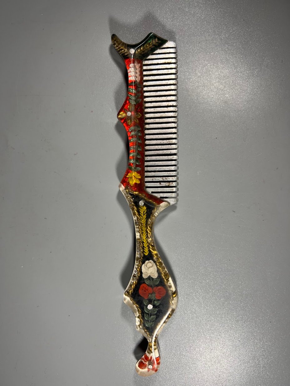 Šukos vintažinės, rankų darbo, metalinės, epoksidinės dervos rankena, tarybinių laikų. Ilgis 20 cm. Kaina 18